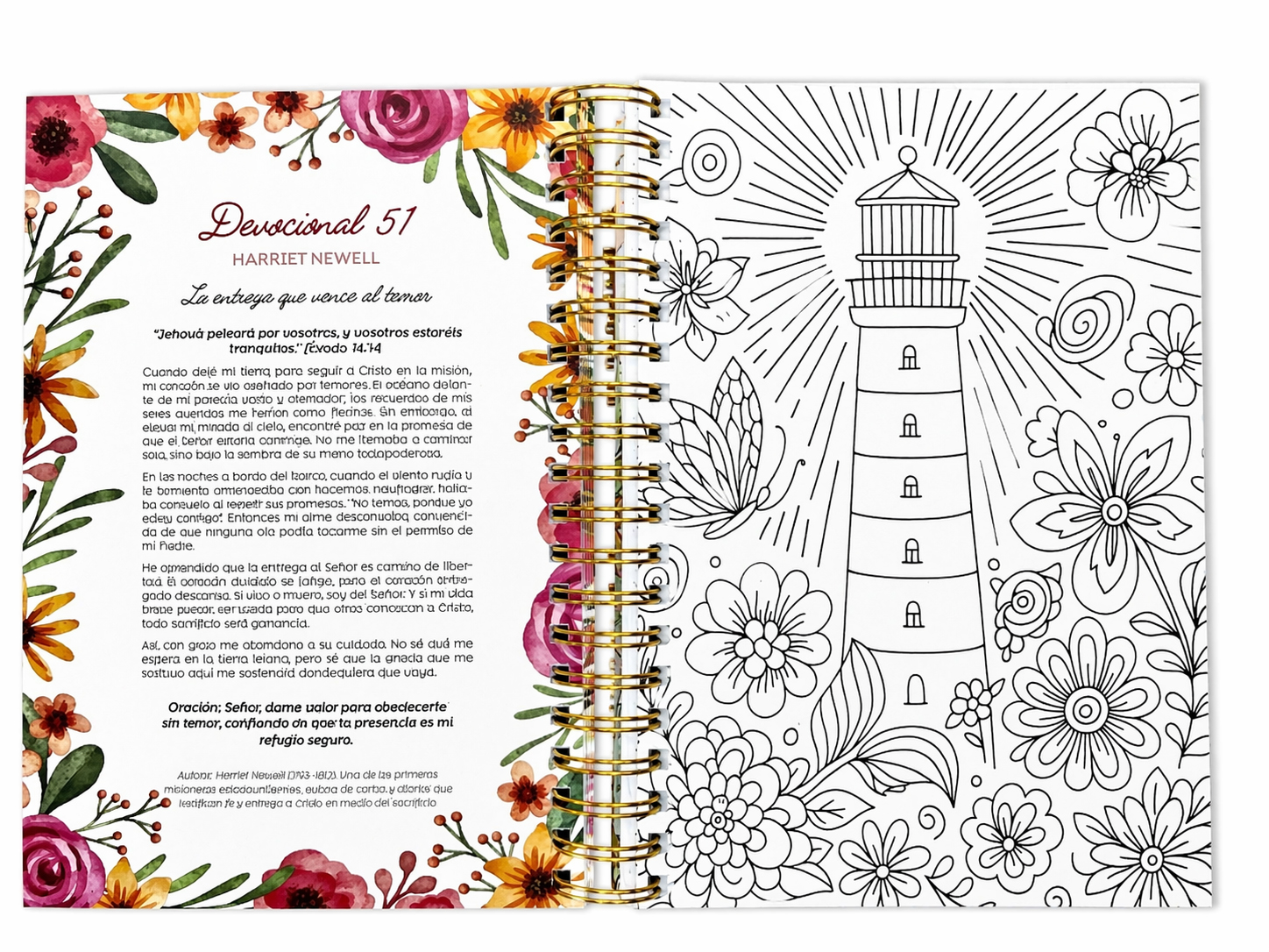 Su formato de 180 x 260 mm y encuadernación de anillas lo hacen práctico y cómodo para tu tiempo devocional. Elaborado con materiales de alta calidad, este libro es perfecto para el crecimiento personal o como un regalo significativo para mujeres que desean fortalecer su fe.