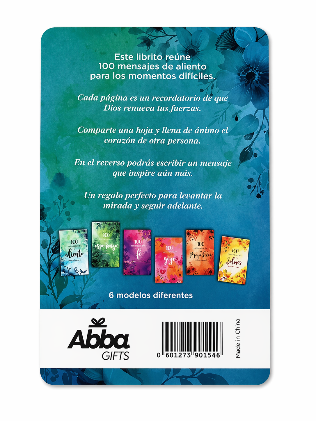Gracias a sus páginas arrancables en formato 110 x 170 mm, podrás compartir fácilmente mensajes de aliento con familiares, amigos o cualquier persona que necesite recordar el amor y cuidado de Dios.