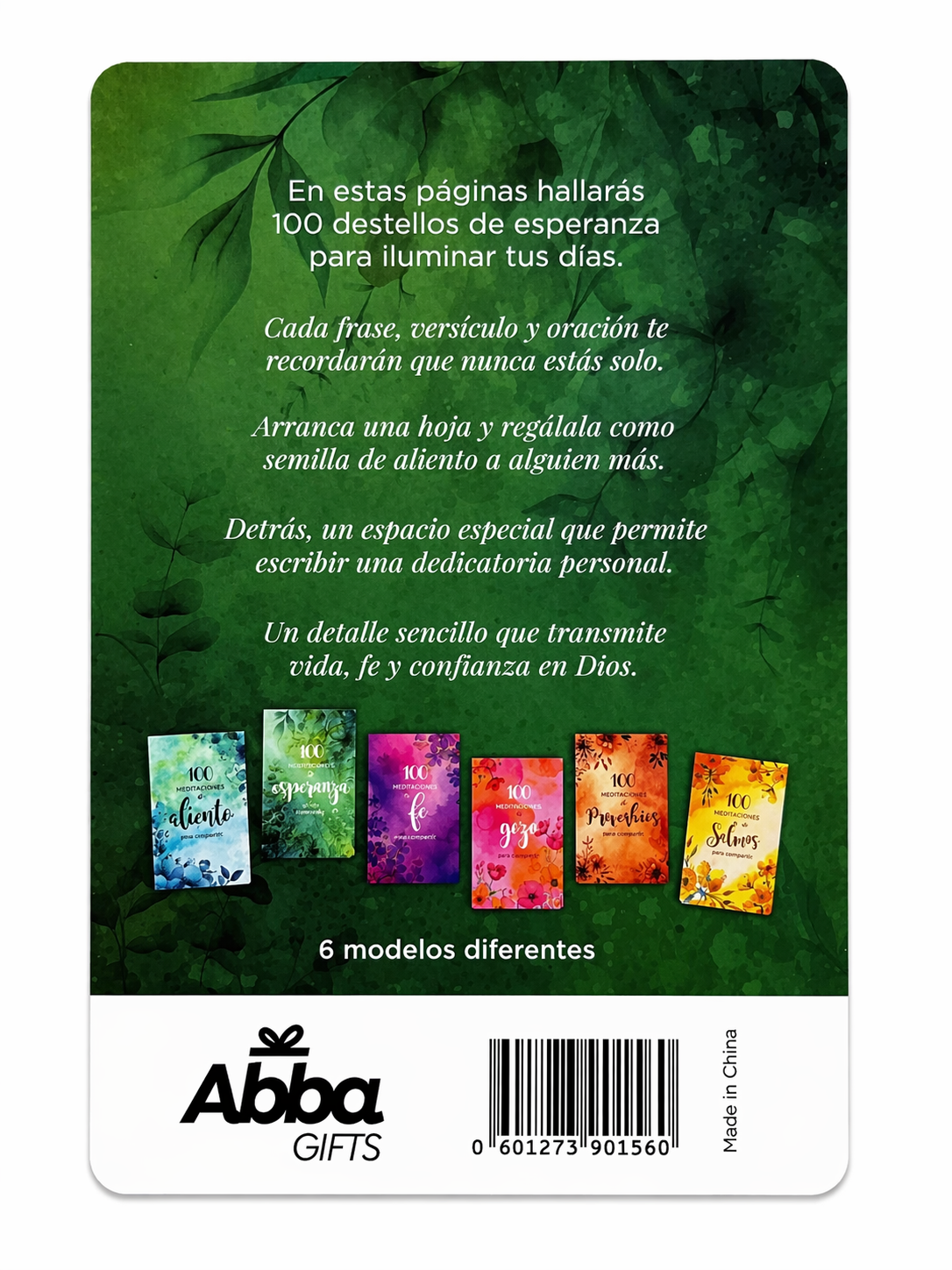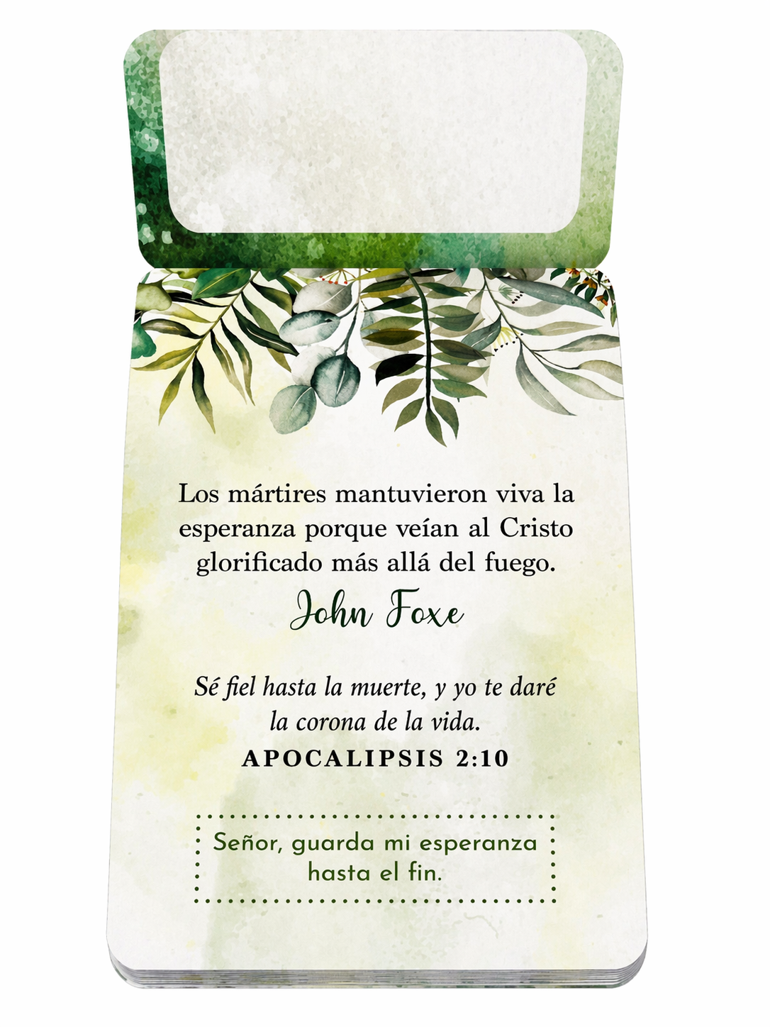 Gracias a sus páginas arrancables en formato 110 x 170 mm, podrás compartir fácilmente mensajes de esperanza con familiares, amigos o cualquier persona que necesite recordar que Dios sigue obrando. Recibe cada día una nueva esperanza… y compártela.