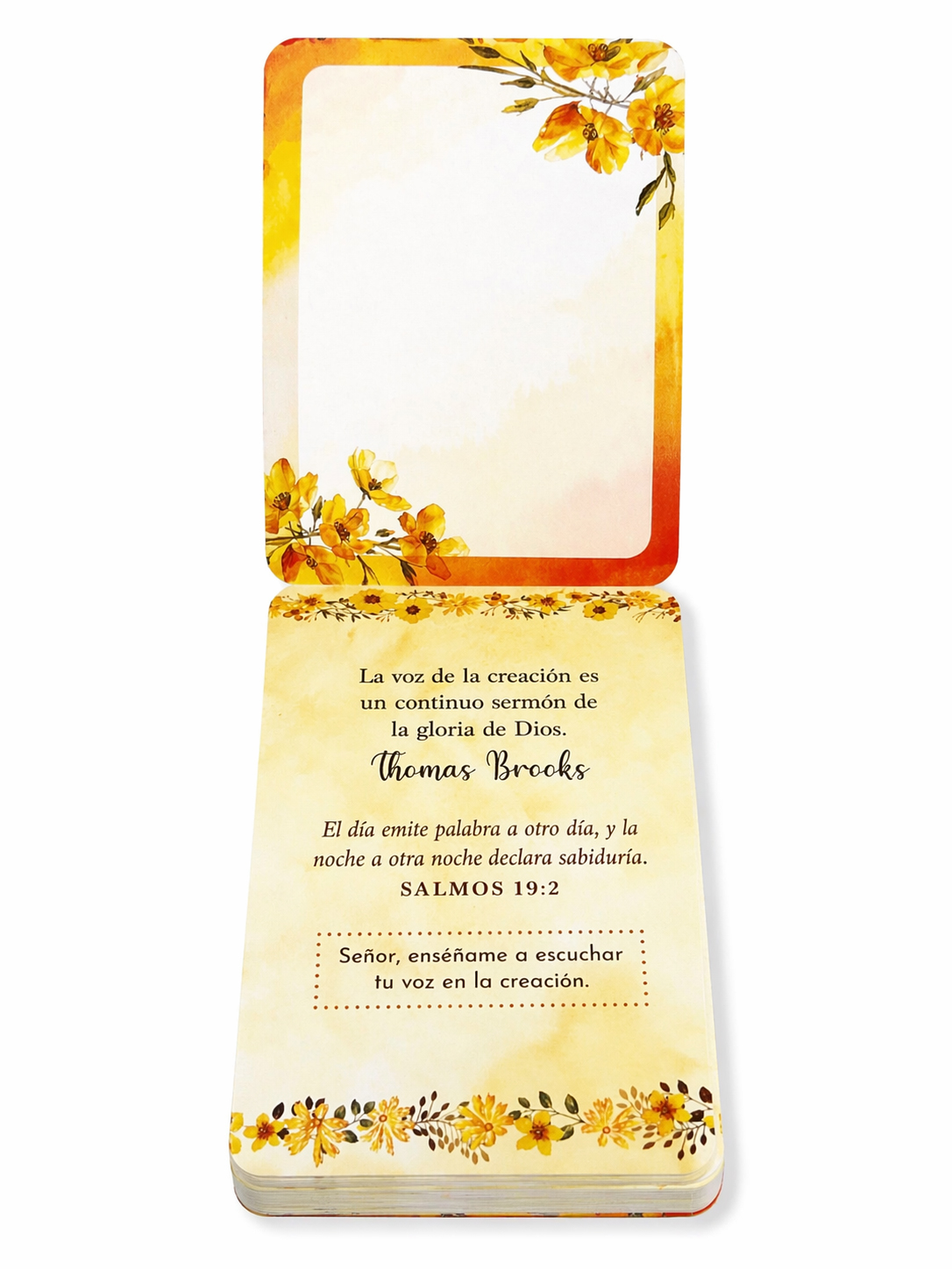 Gracias a sus páginas arrancables en formato 110 x 170 mm, podrás compartir fácilmente mensajes de ánimo, consuelo y confianza en Dios, llevando Su Palabra a quienes más lo necesitan.