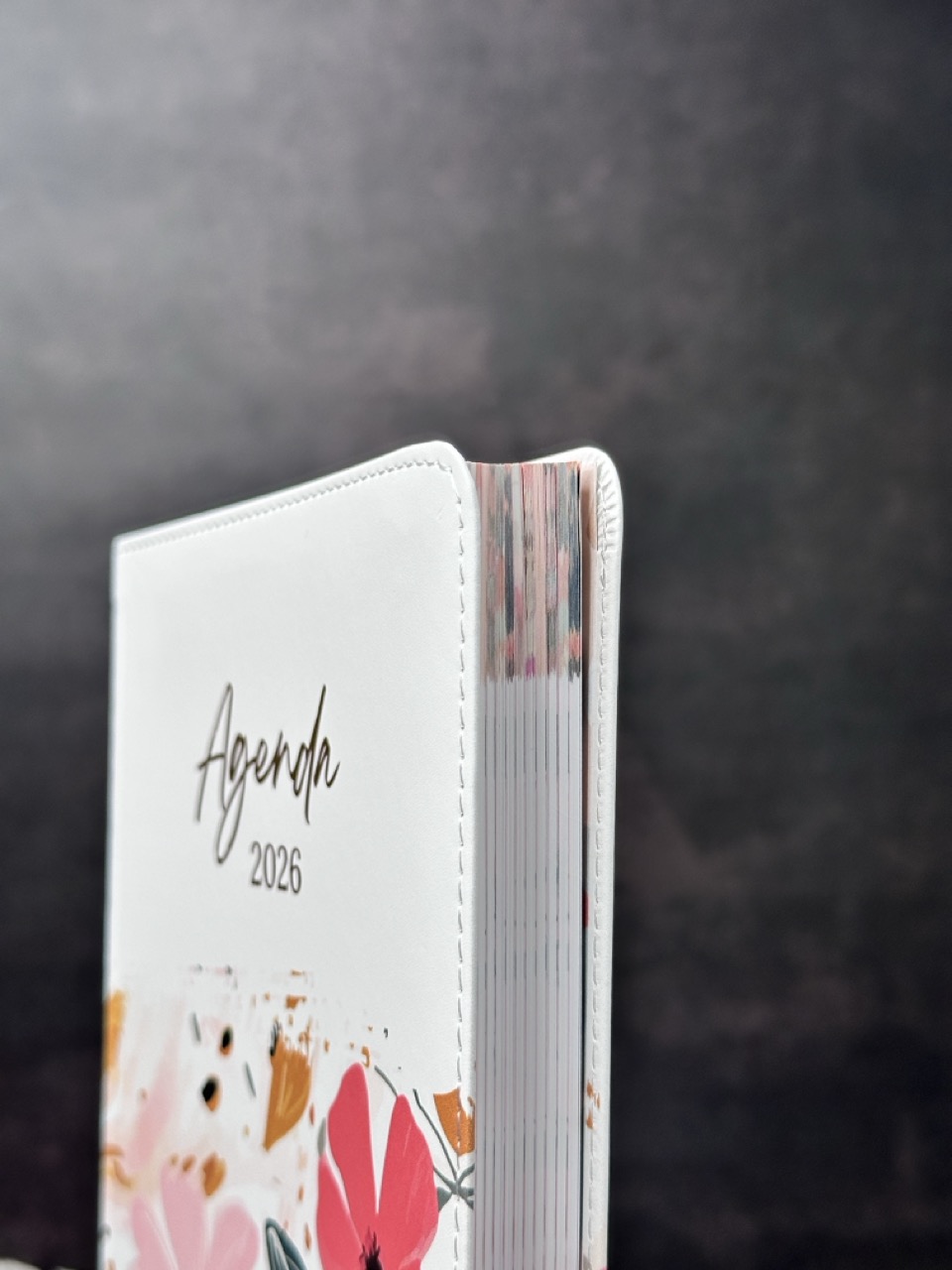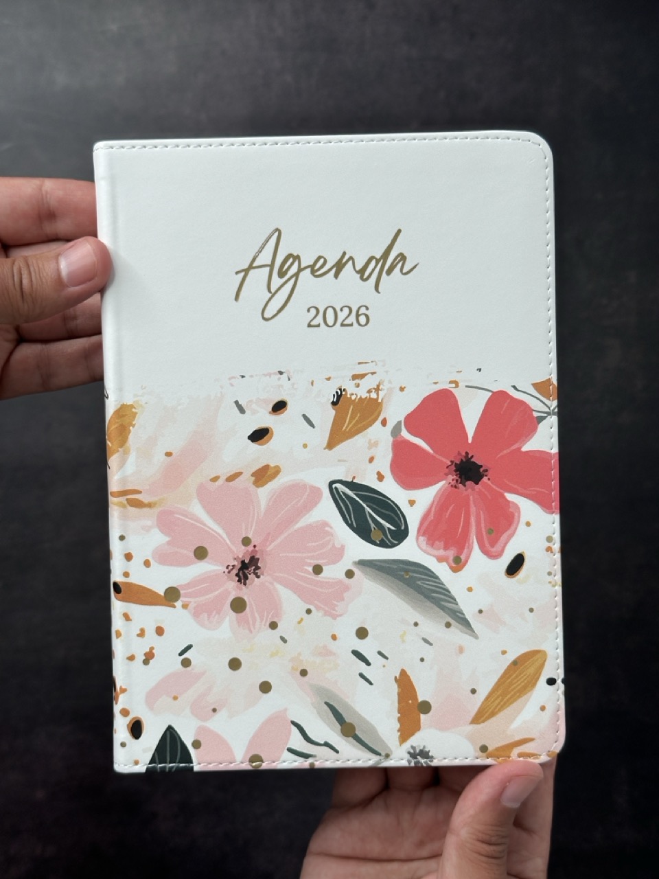 Agenda PV 2026 i/piel Flores rosas en fantasía