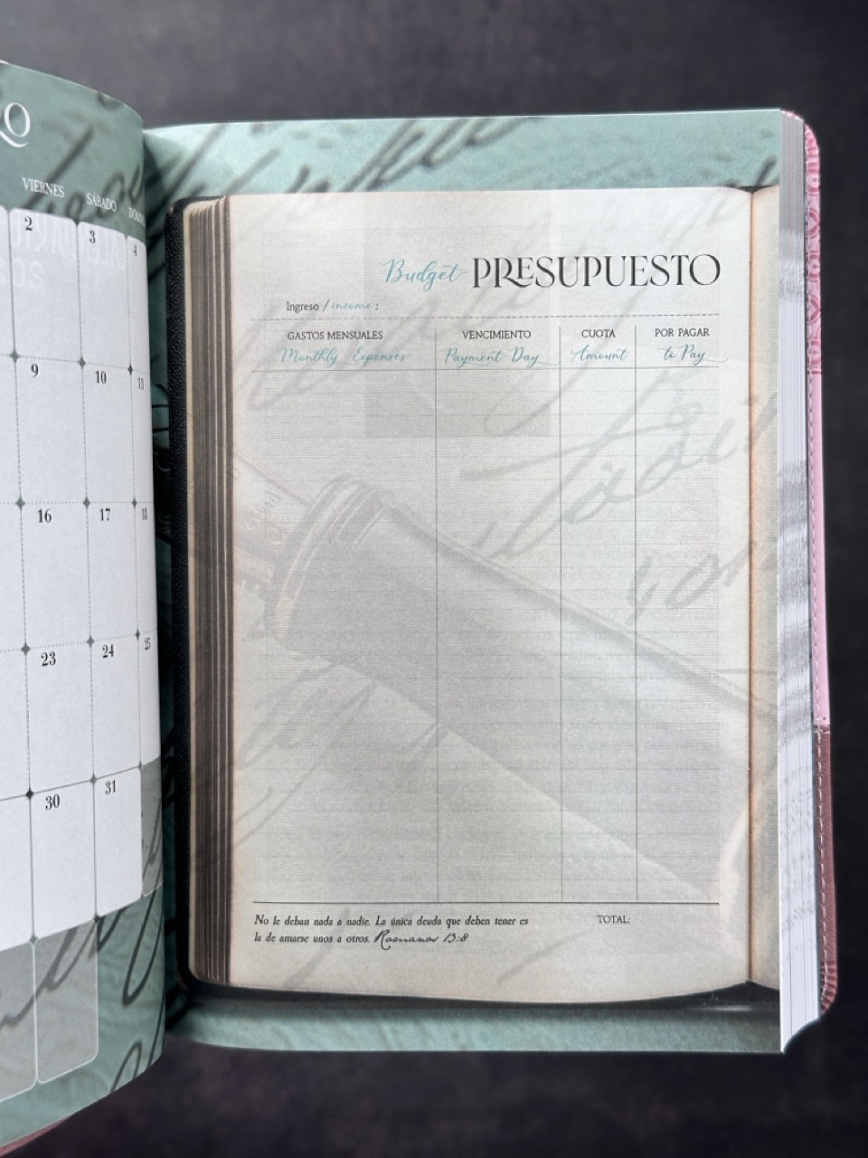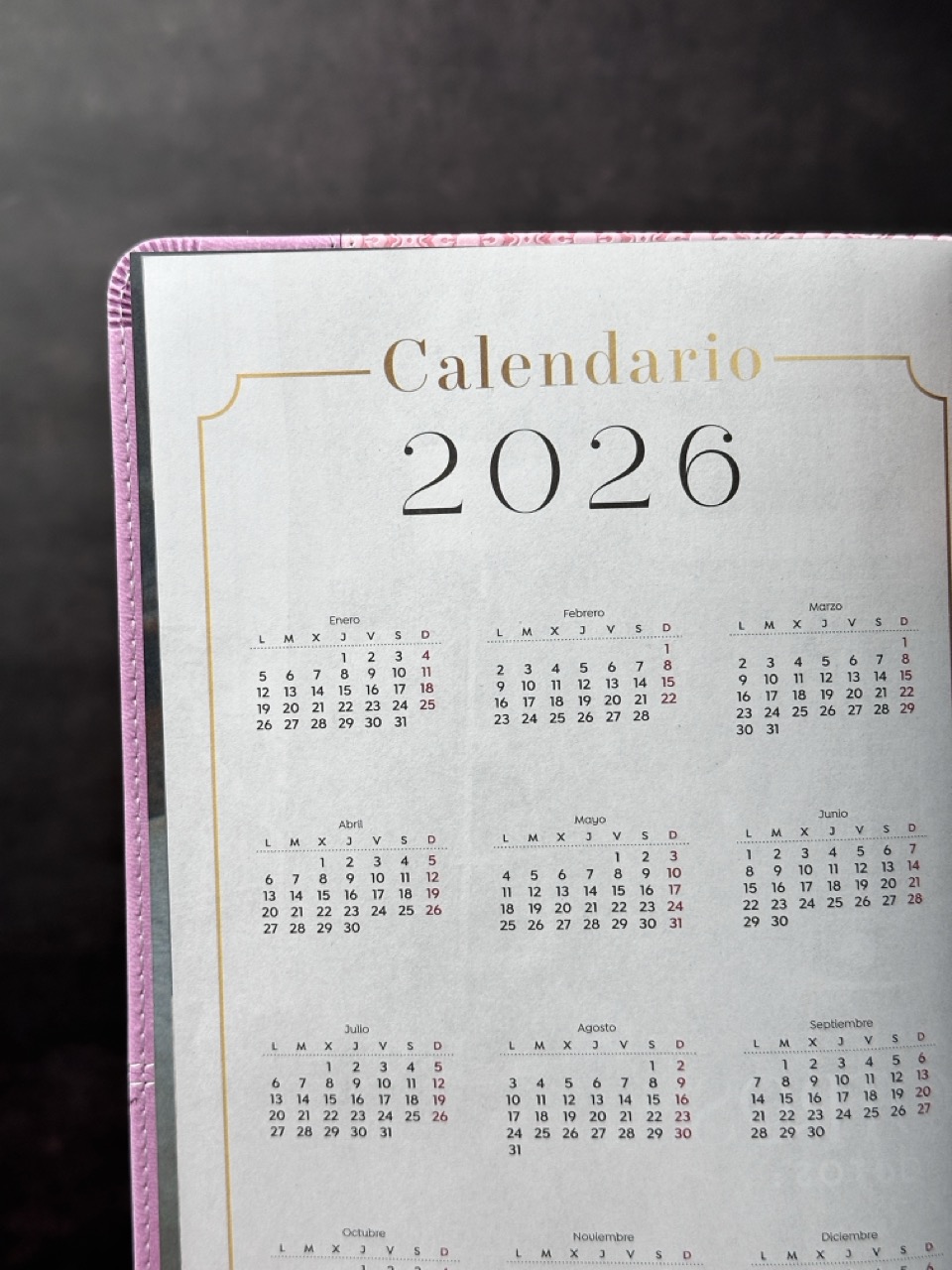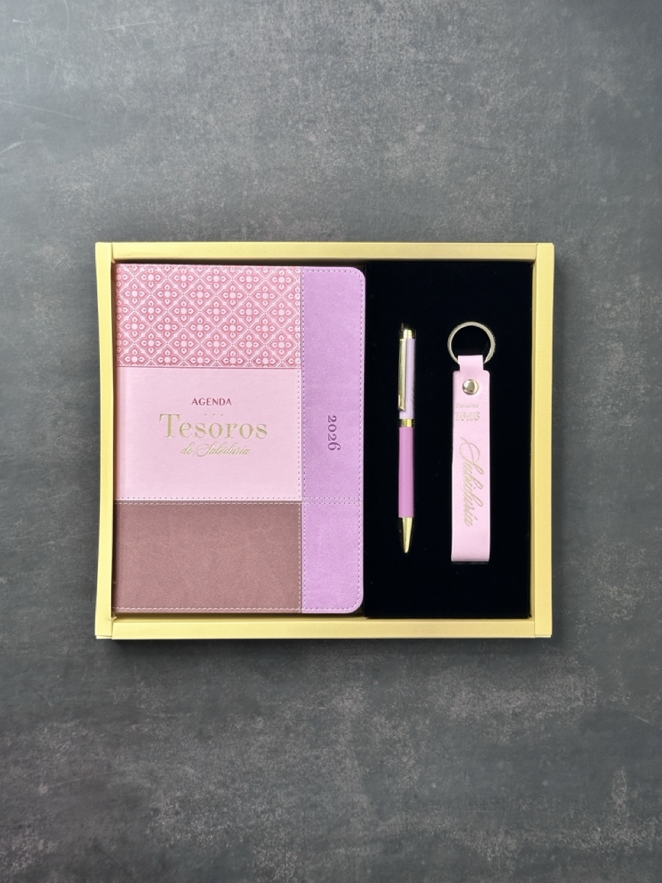 Agenda Tesoros de Sabiduría 2026 i/piel rosa/rosa pack con llavero y bolígrafo