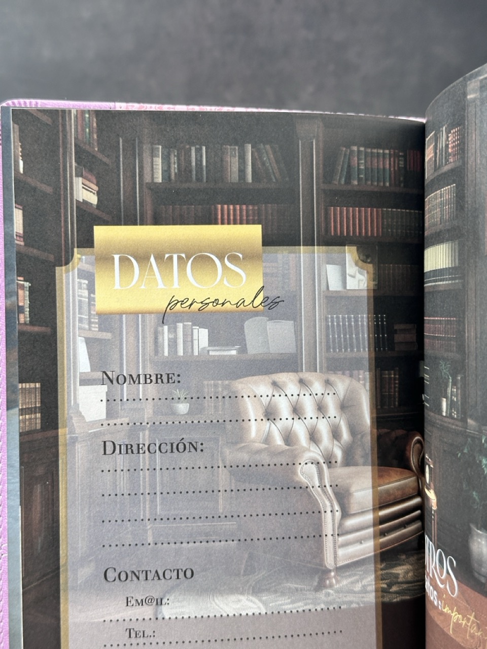 - 4 portadas diferentes: Negro/Gris, Café/café, Rosa/rosa, lila/lila