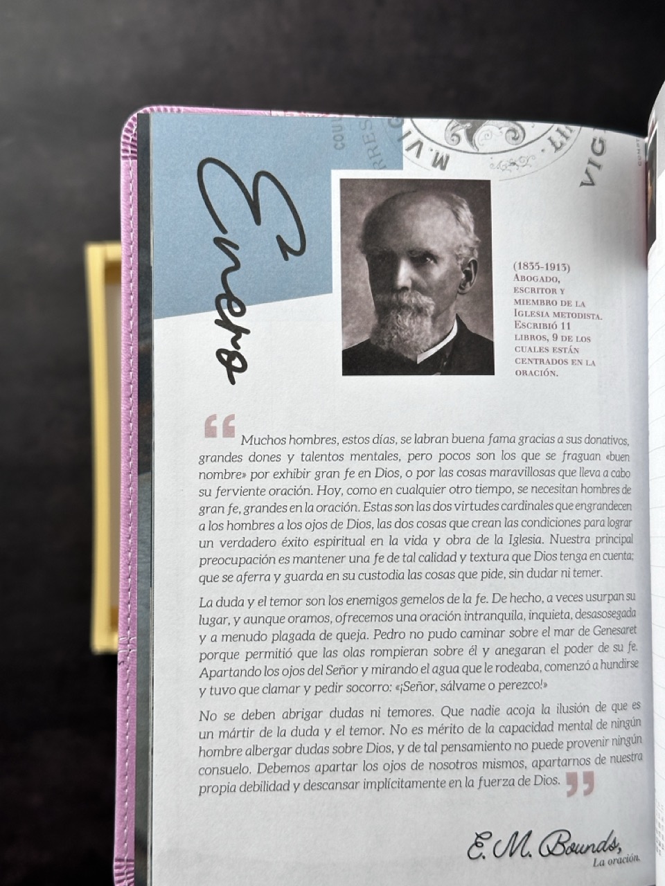 - Tener 12 pensamientos (uno al principio de cada mes) de autores como C.H. Spurgeon, J.C.Ryle, E.M. Bounds, Conde Zinzendorf, Jeremiah Burroughs…Que nos harán meditar y nos refrescarán el alma.