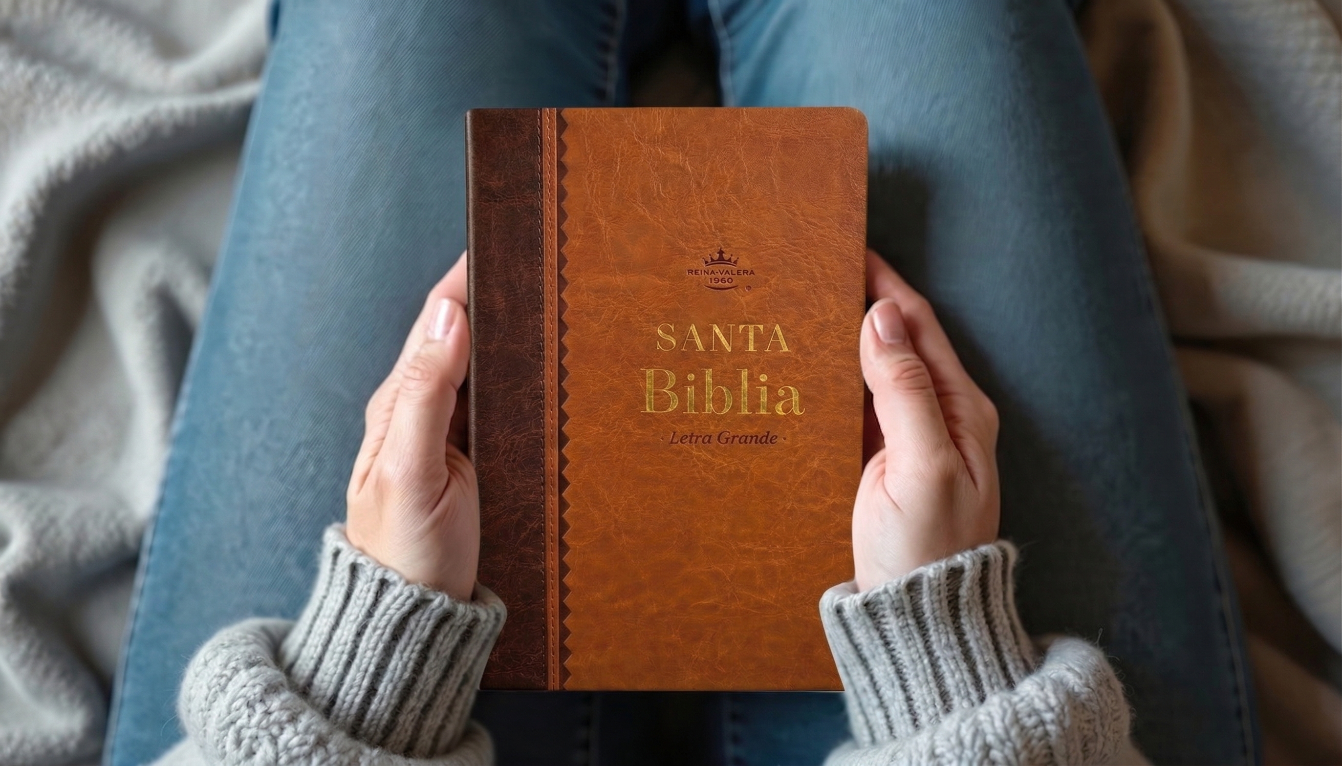 Descubre la combinación perfecta entre tradición, elegancia y practicidad con esta hermosa edición de la amada traducción Reina Valera 1960. Diseñada para un uso diario y constante, esta Biblia destaca visualmente por su sofisticada cubierta de imitación piel que combina dos tonos de marrón, acentuada por costuras detalladas, un sutil borde dentado decorativo y letras doradas.