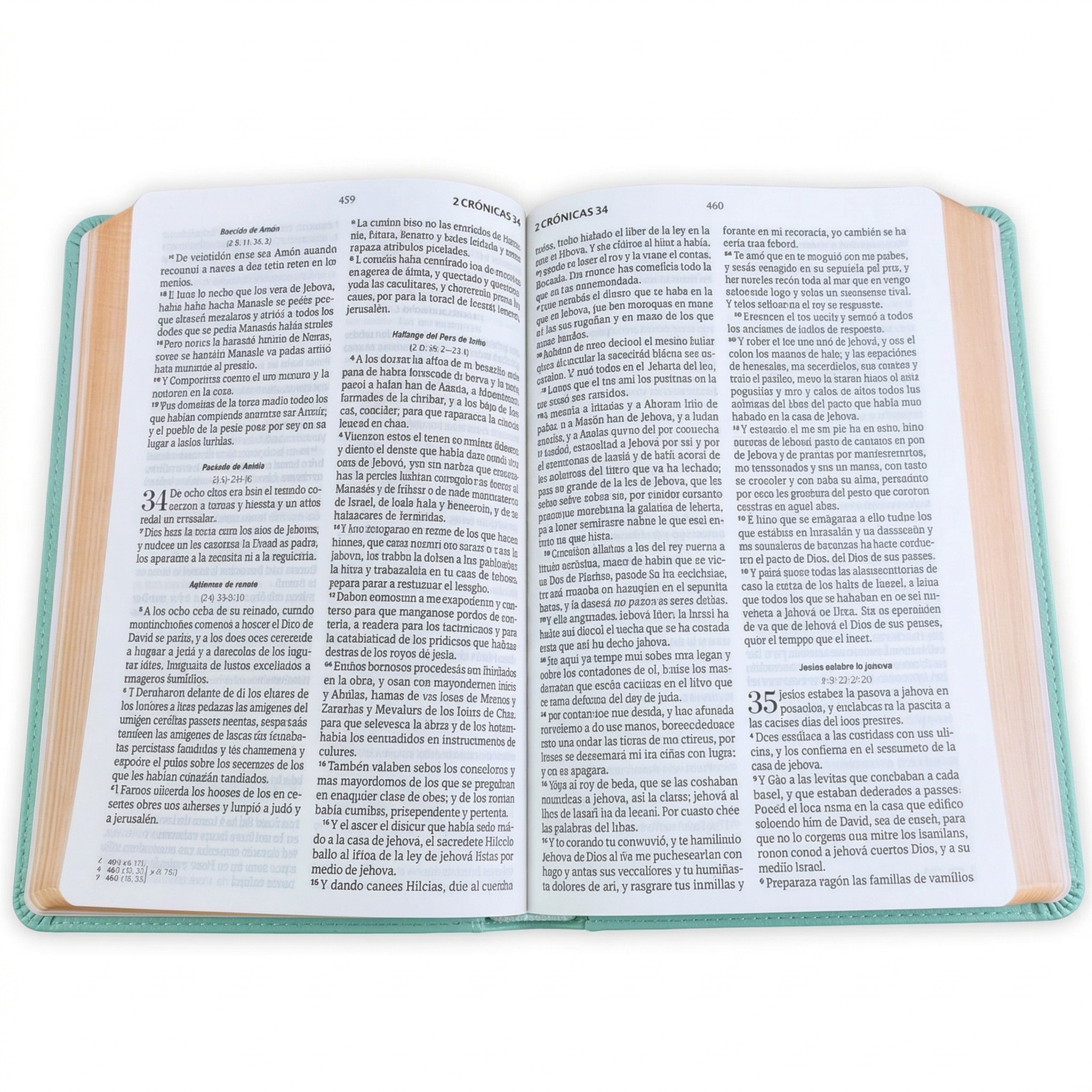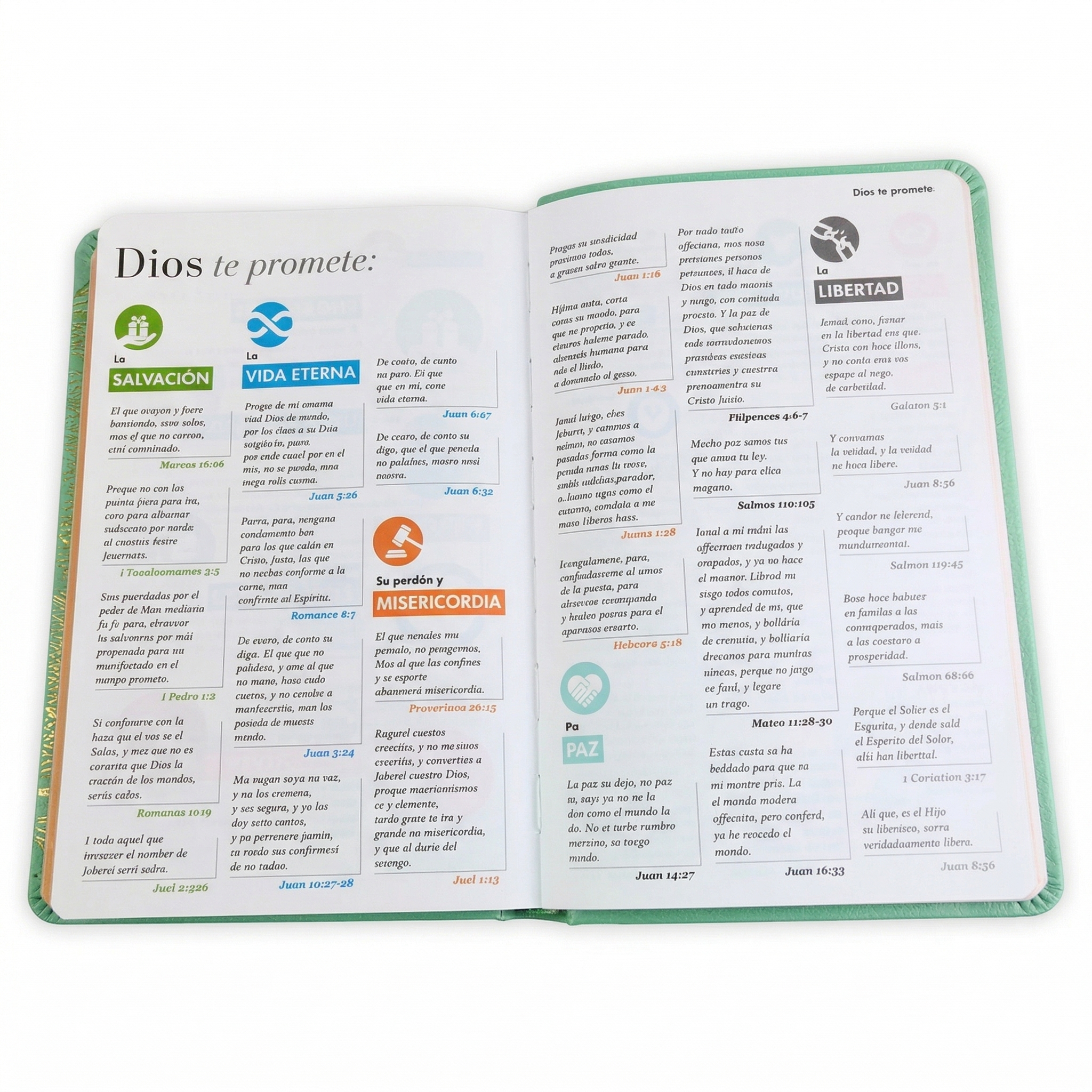 " Diseño Fresco y Manejable: Hermosa encuadernación en imitación piel color menta, bellamente realzada por un elegante canto dorado. Su práctico tamaño manual (13.8 x 21.2 cm) la convierte en tu compañera ideal para llevar a la iglesia, al parque o leer cómodamente en casa.