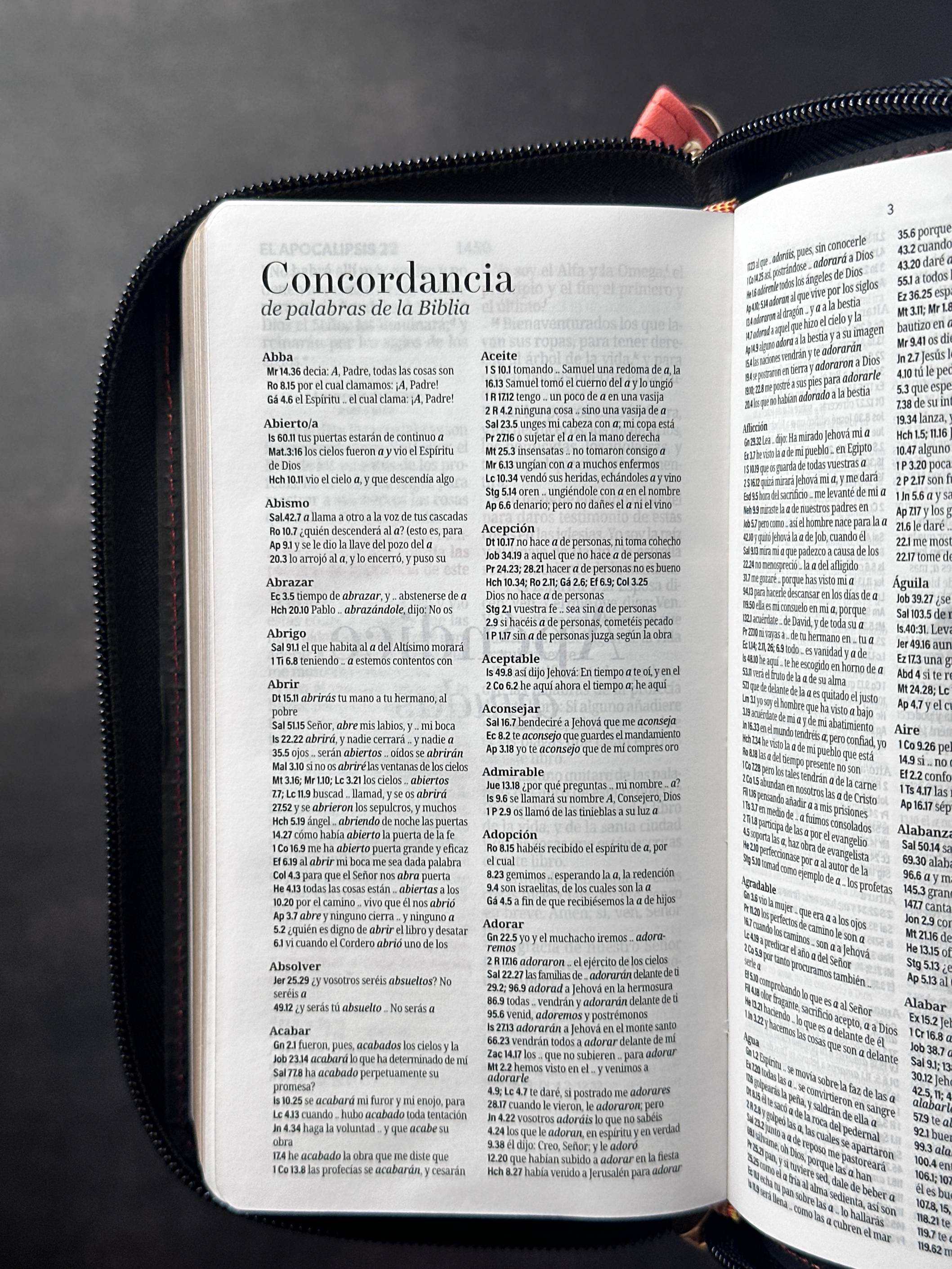 Biblia RVR1960 Compacta - Edición Chequera, es una Biblia que gracias al tamaño legible, ayuda a descansar la vista durante la lectura y el estudio de las Escrituras. Contiene concordancia con palabras clave y los pasajes en que éstas aparecen, lo cual facilita el estudio de las Escrituras.