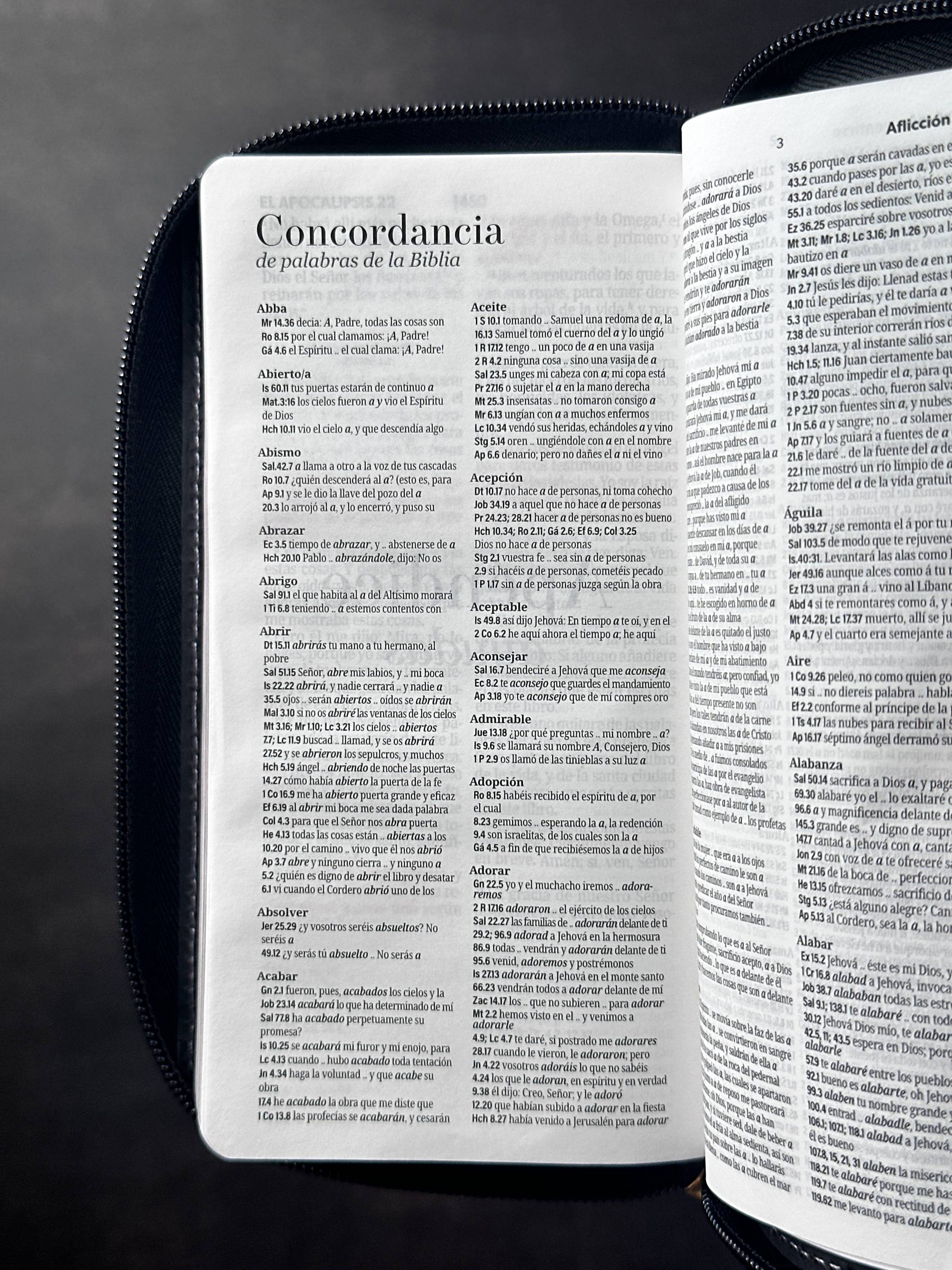 Biblia RVR1960 Compacta - Edición Chequera, es una Biblia que gracias al tamaño legible, ayuda a descansar la vista durante la lectura y el estudio de las Escrituras. Contiene concordancia con palabras clave y los pasajes en que éstas aparecen, lo cual facilita el estudio de las Escrituras.