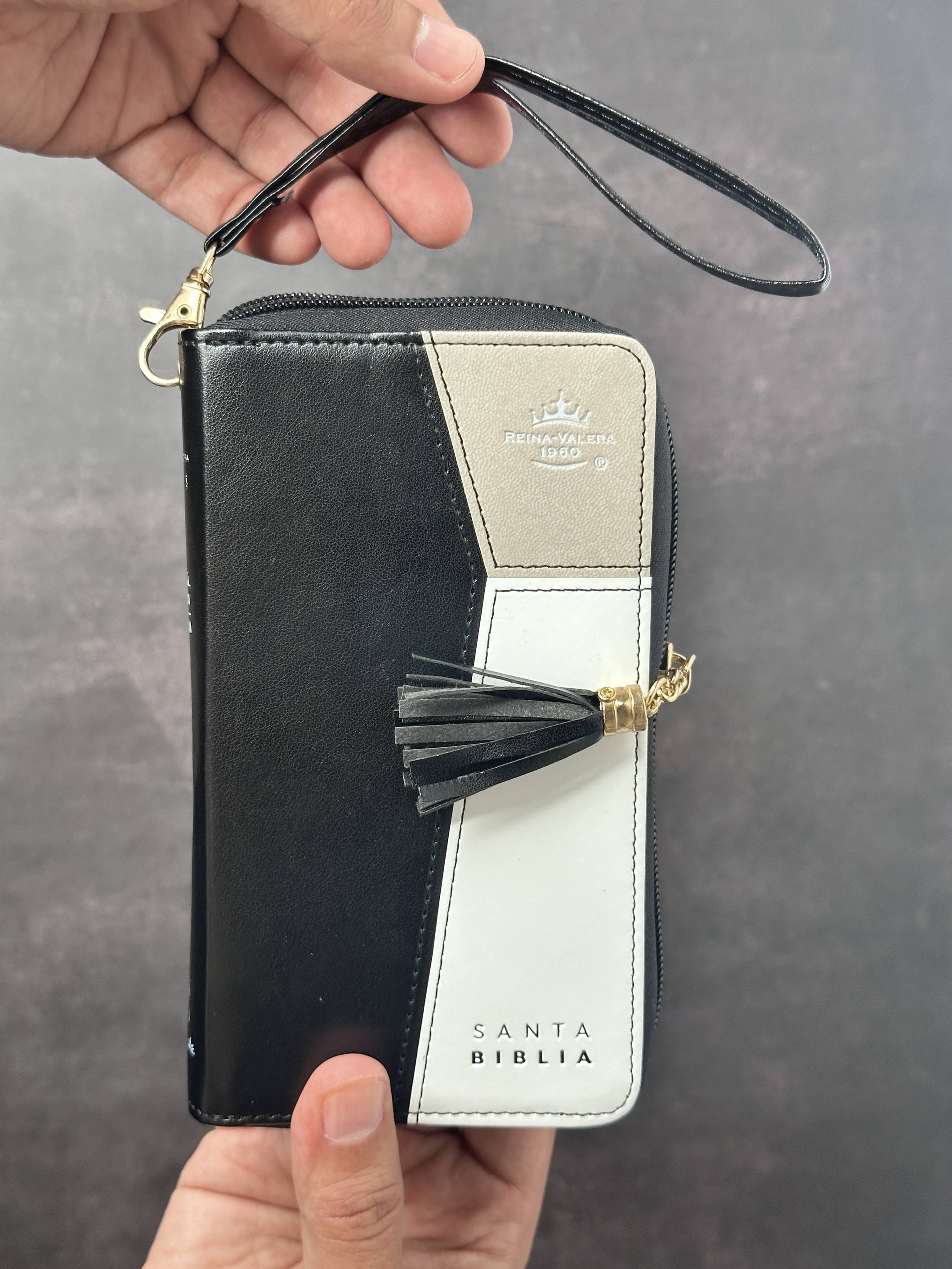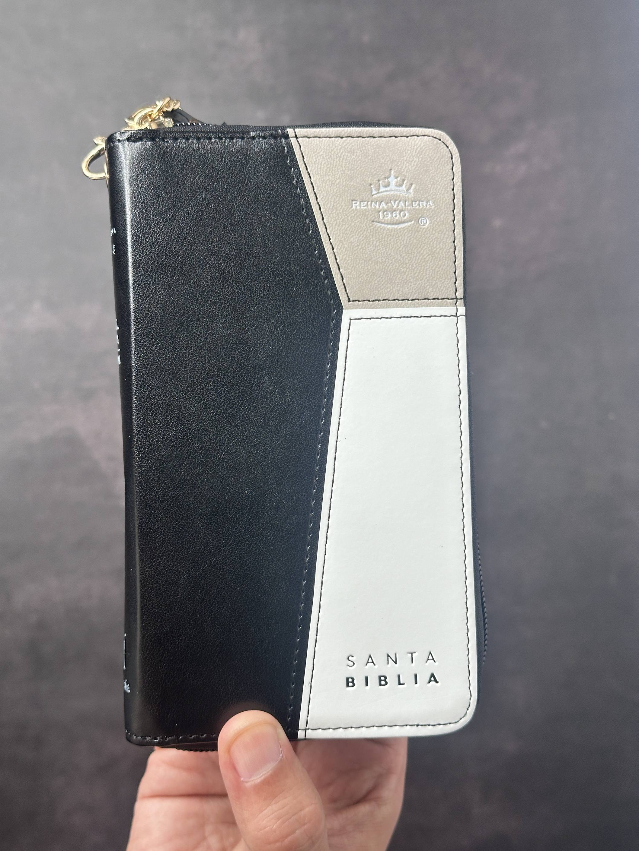 Biblia RVR60 Chequera i/piel Negro/Gris/Blanco con cierre/índice