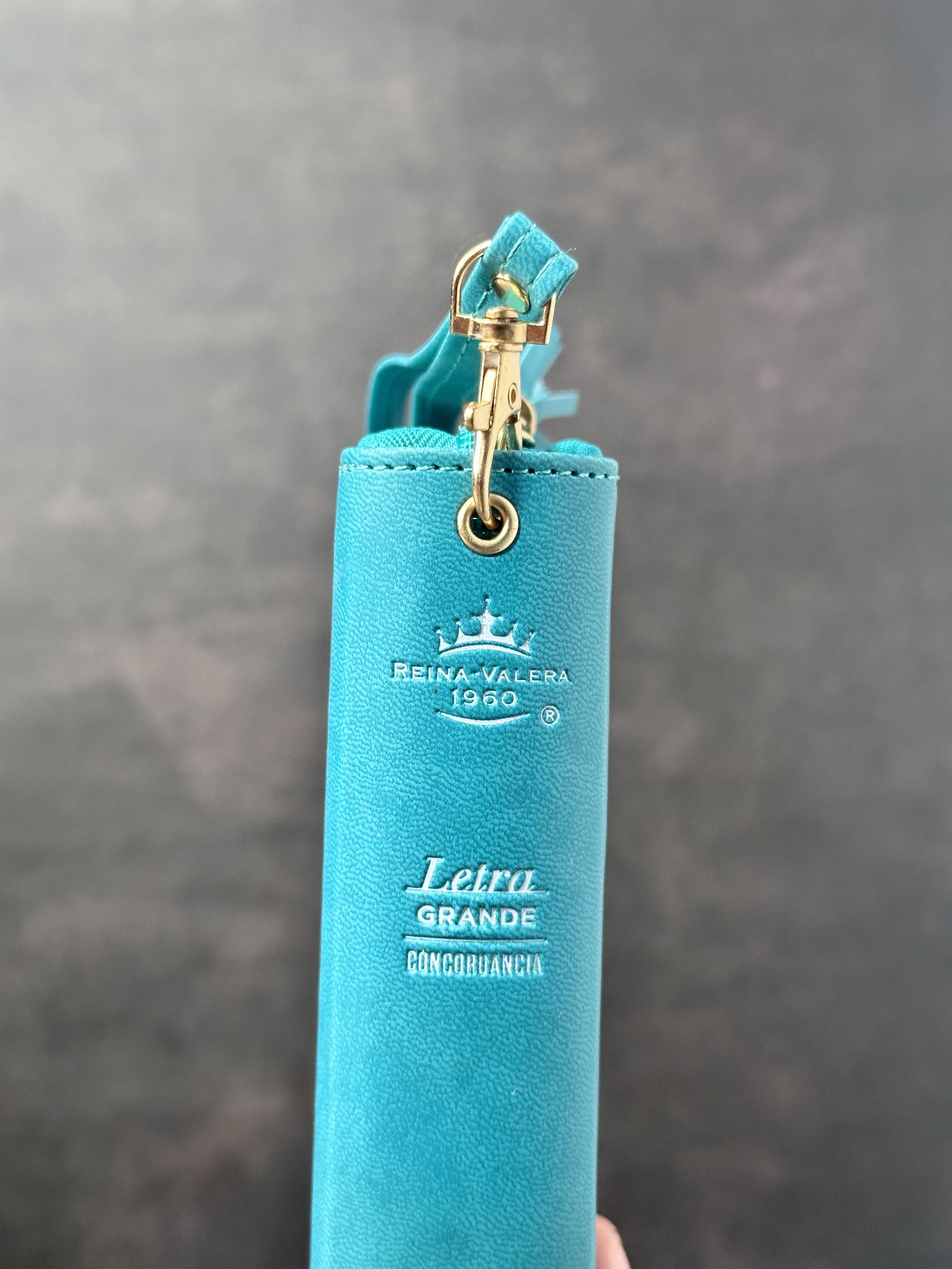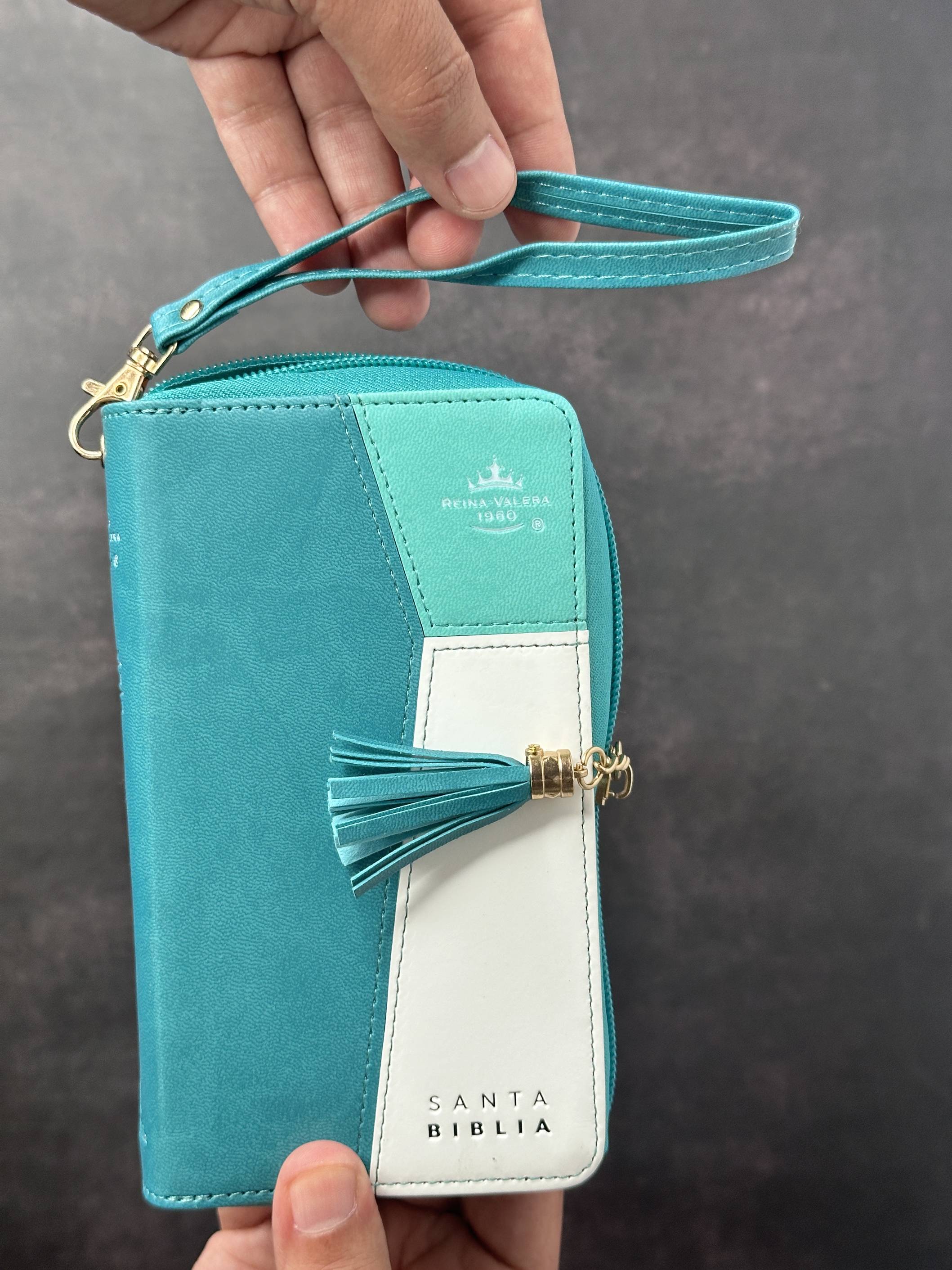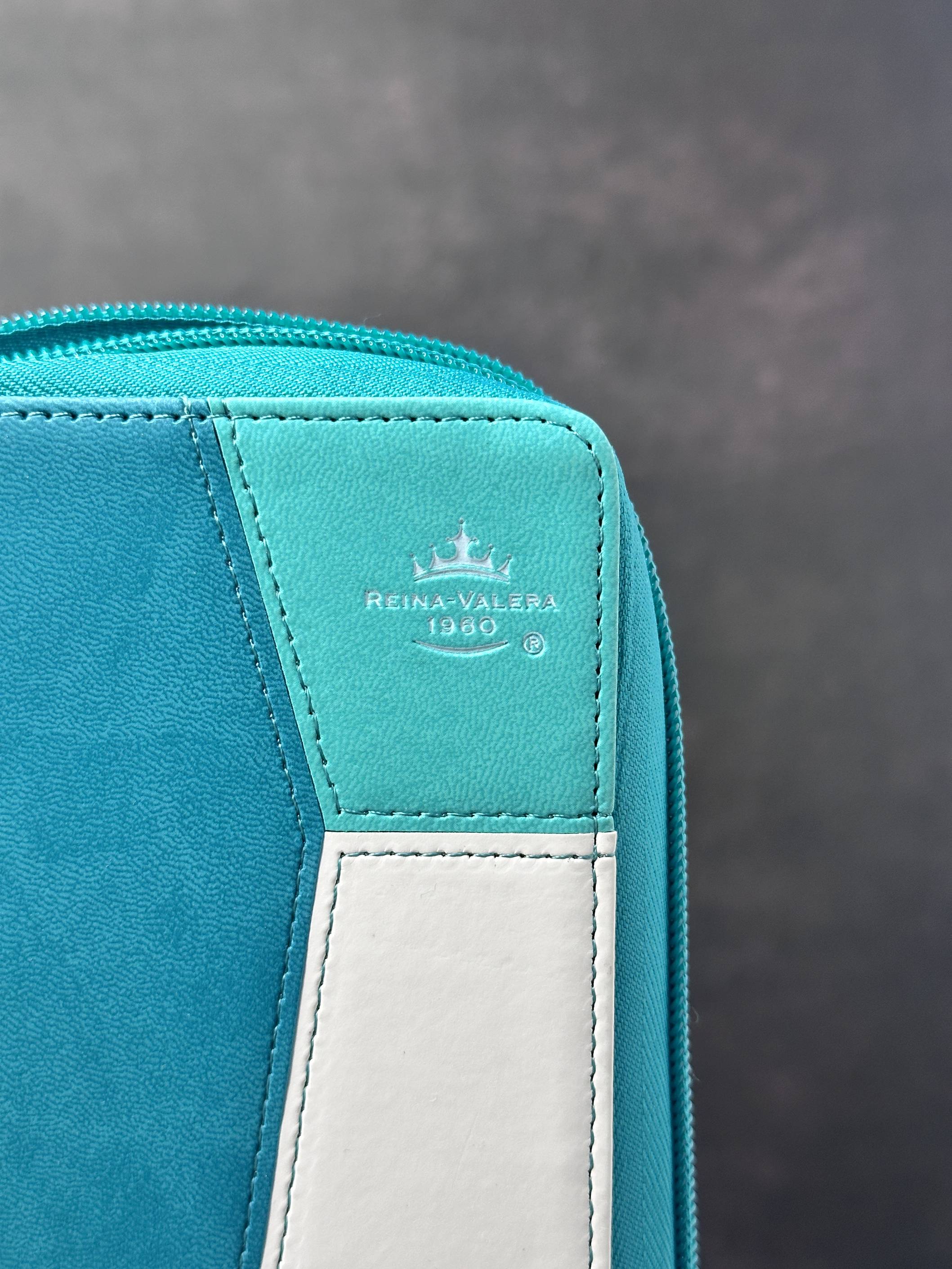 Biblia RVR60 Chequera i/piel turquesa/turquesa/blanco con cierre/índice