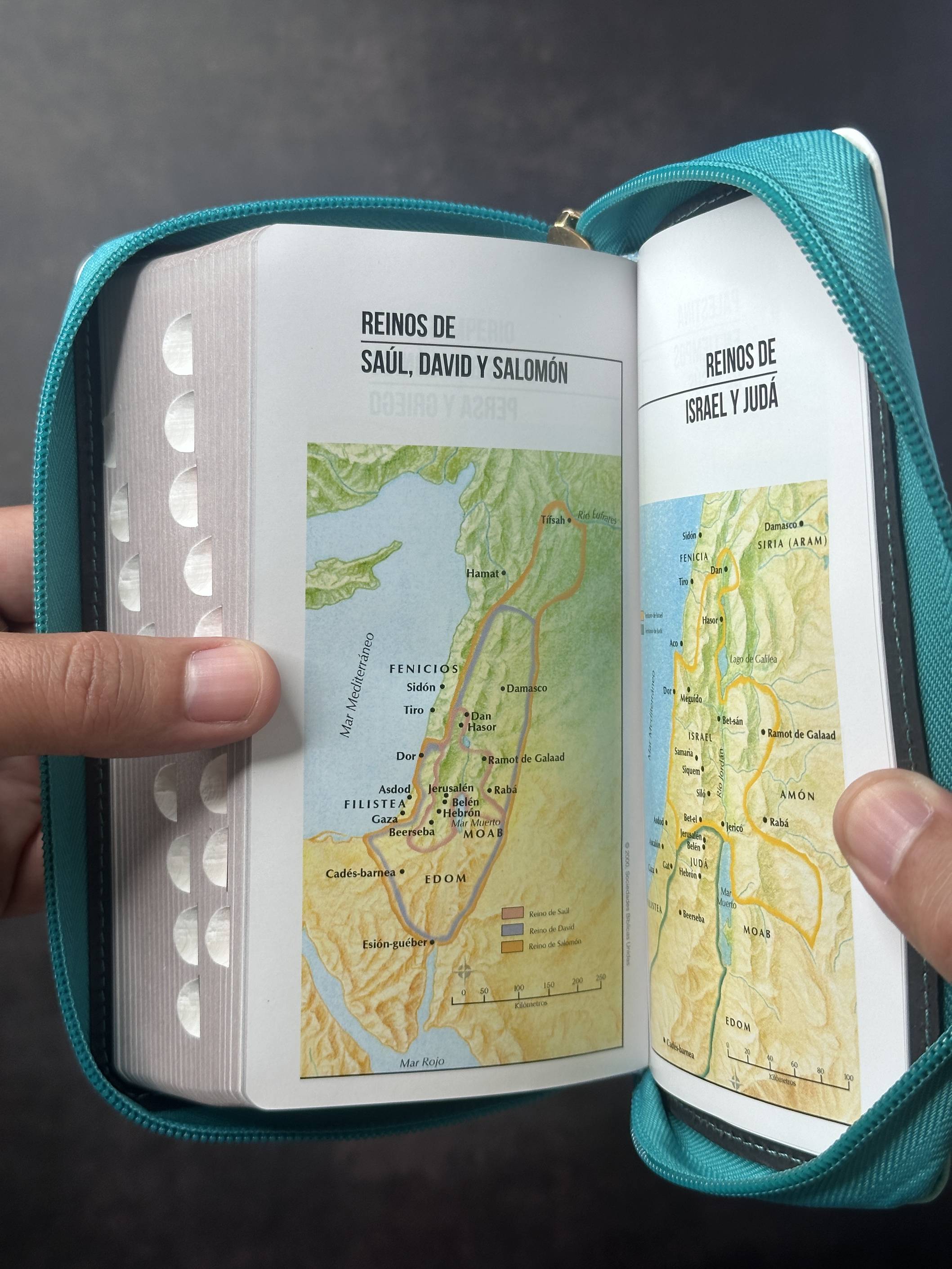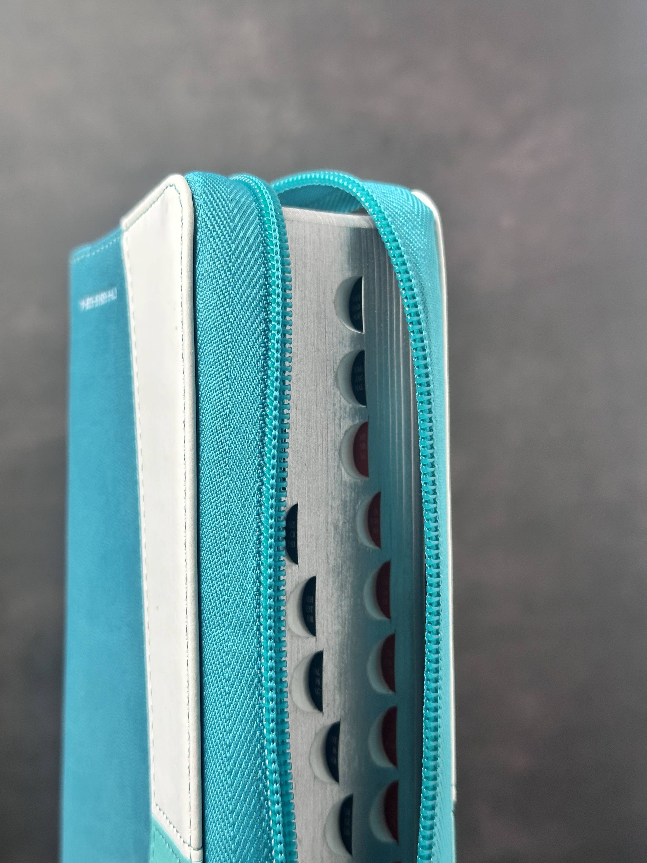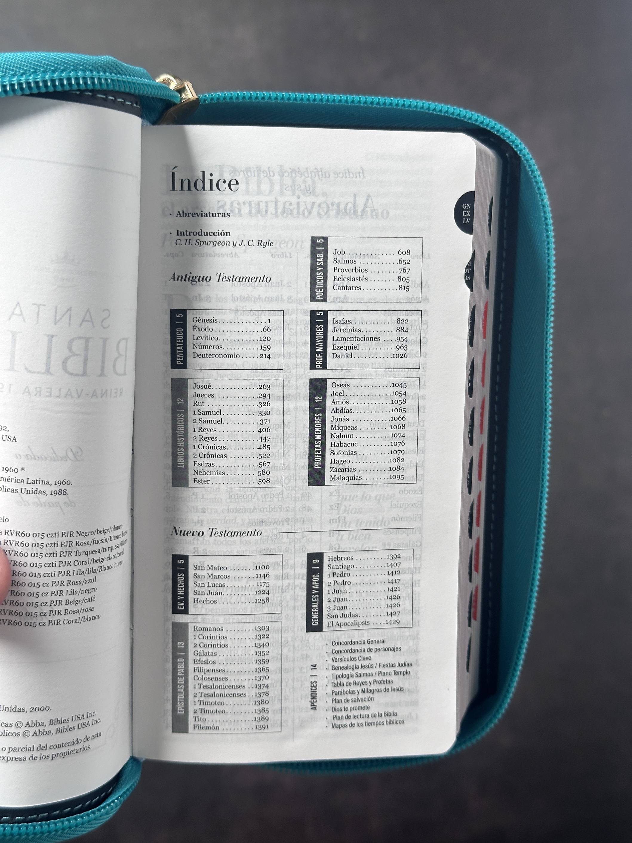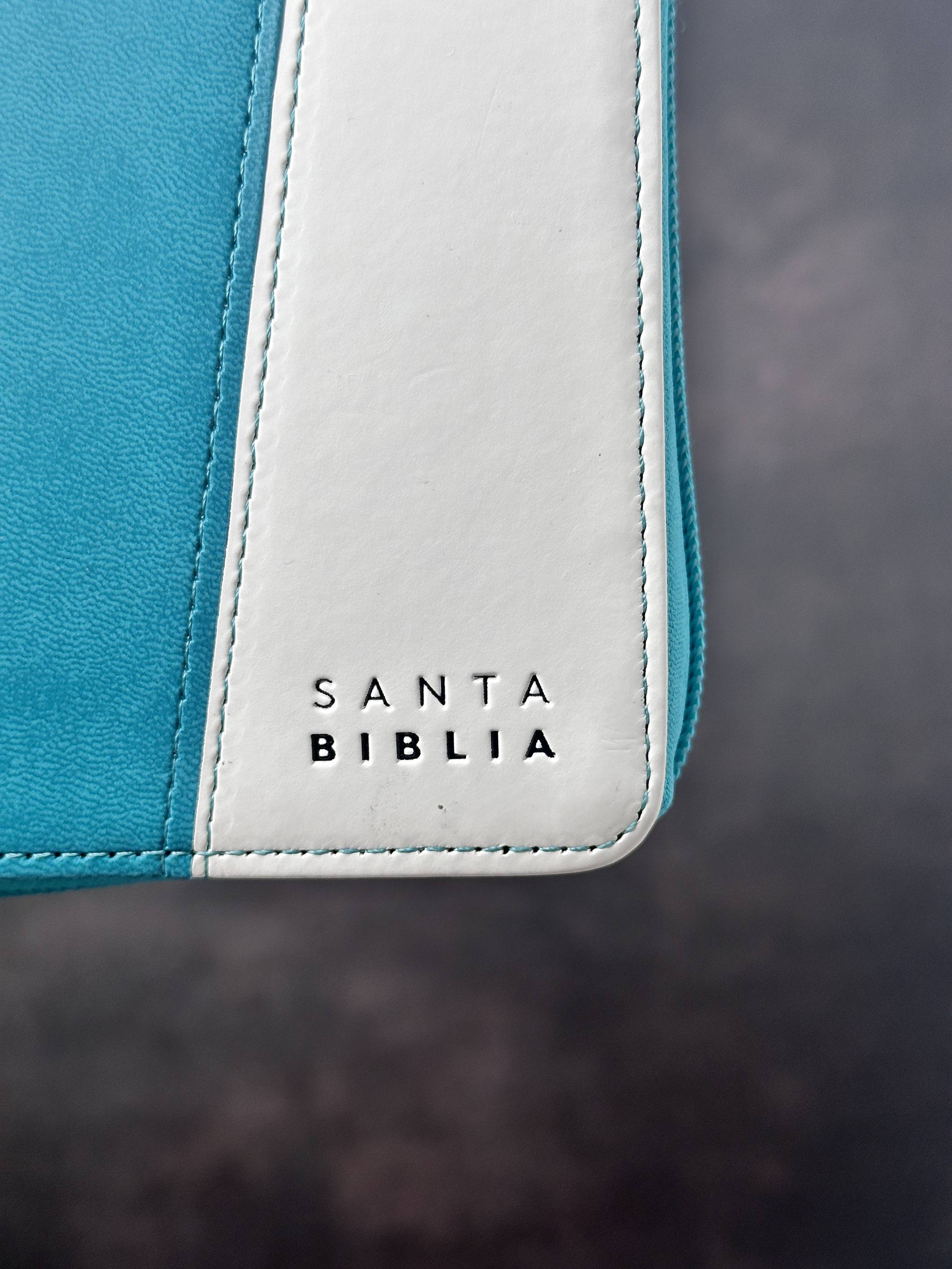 Biblia RVR60 Chequera i/piel turquesa/turquesa/blanco con cierre/índice