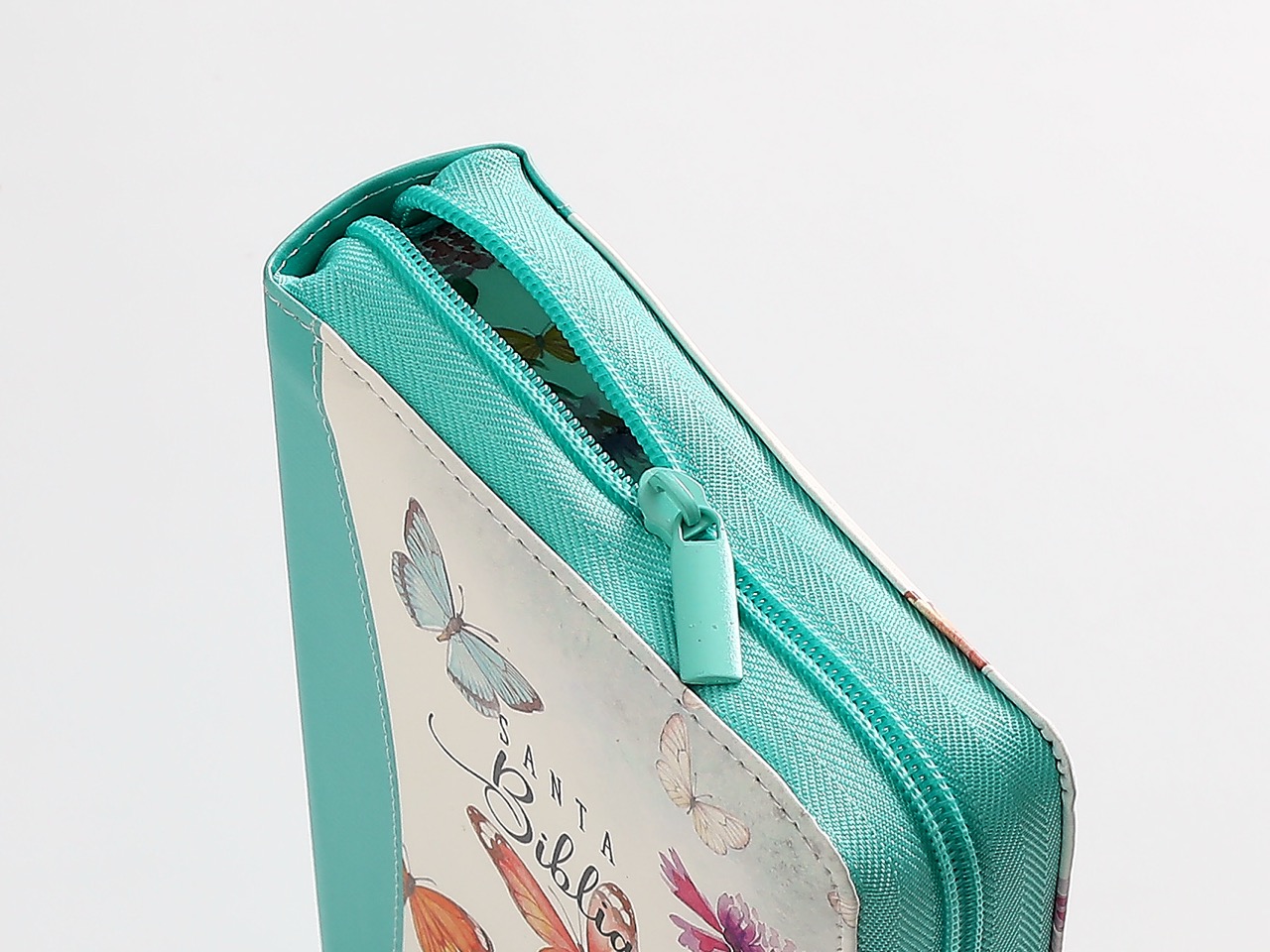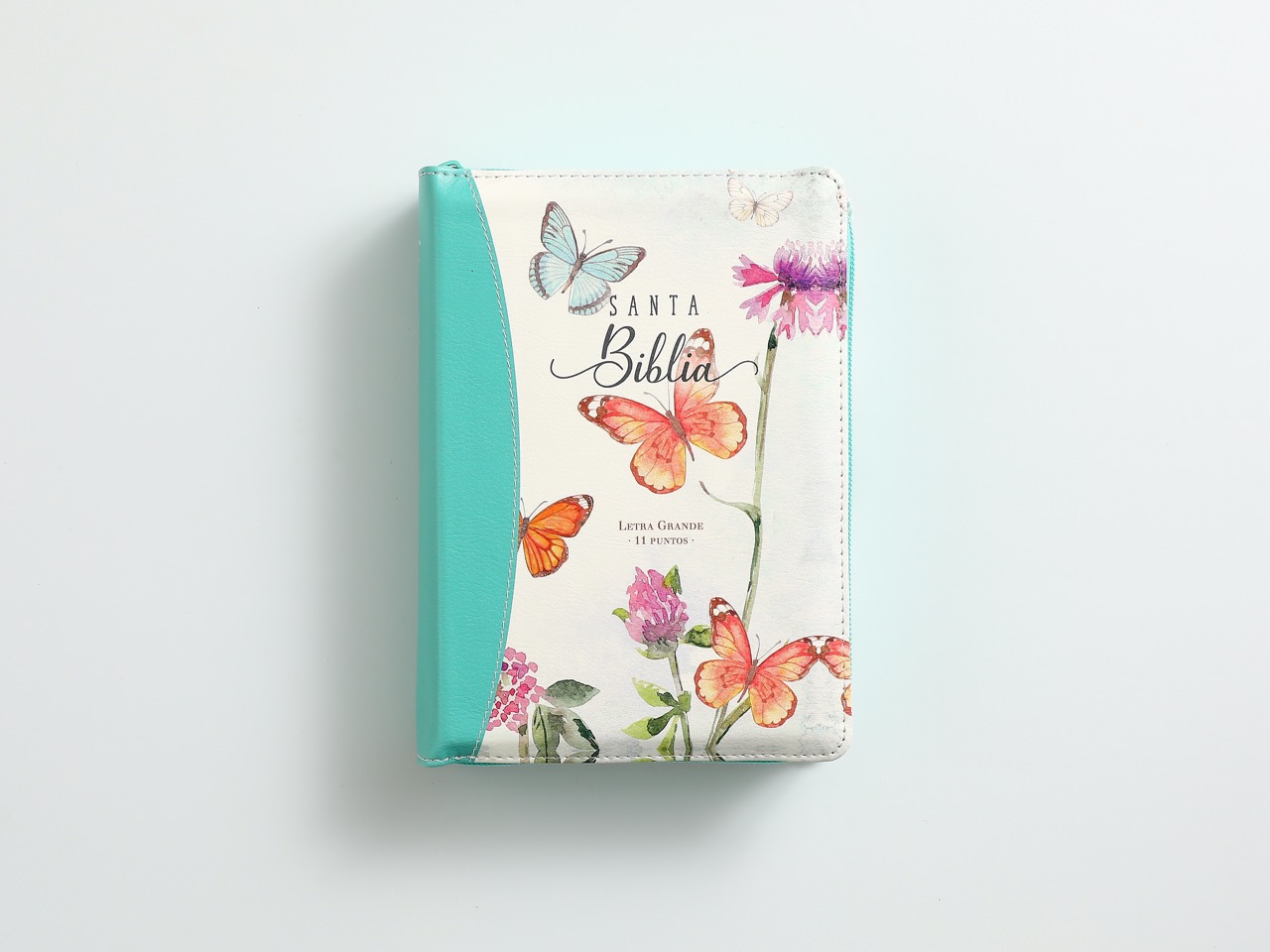 Biblia RVR60 portátil Letra Grande 11 puntos i/piel canto pintado TURQUESA MARIPOSAS con cierre/índice (Colección Fantasia)
