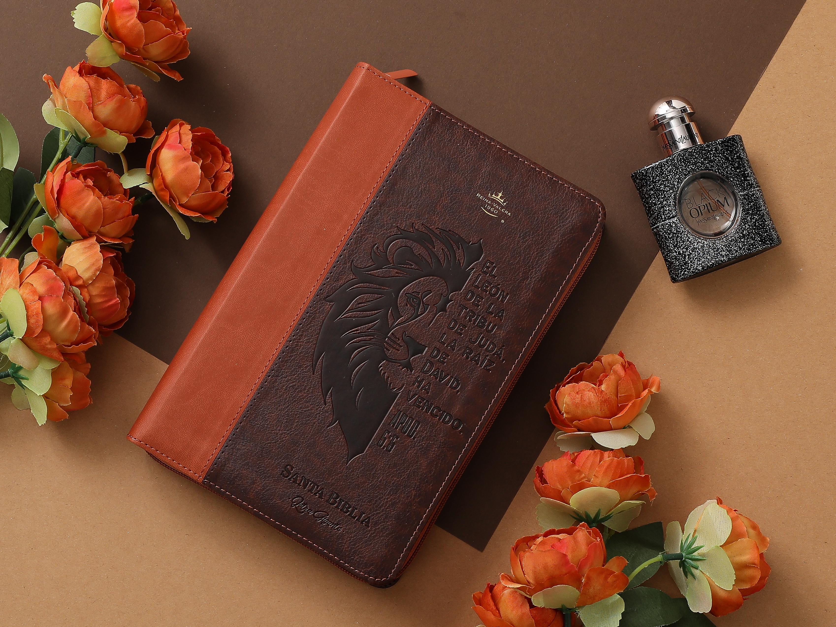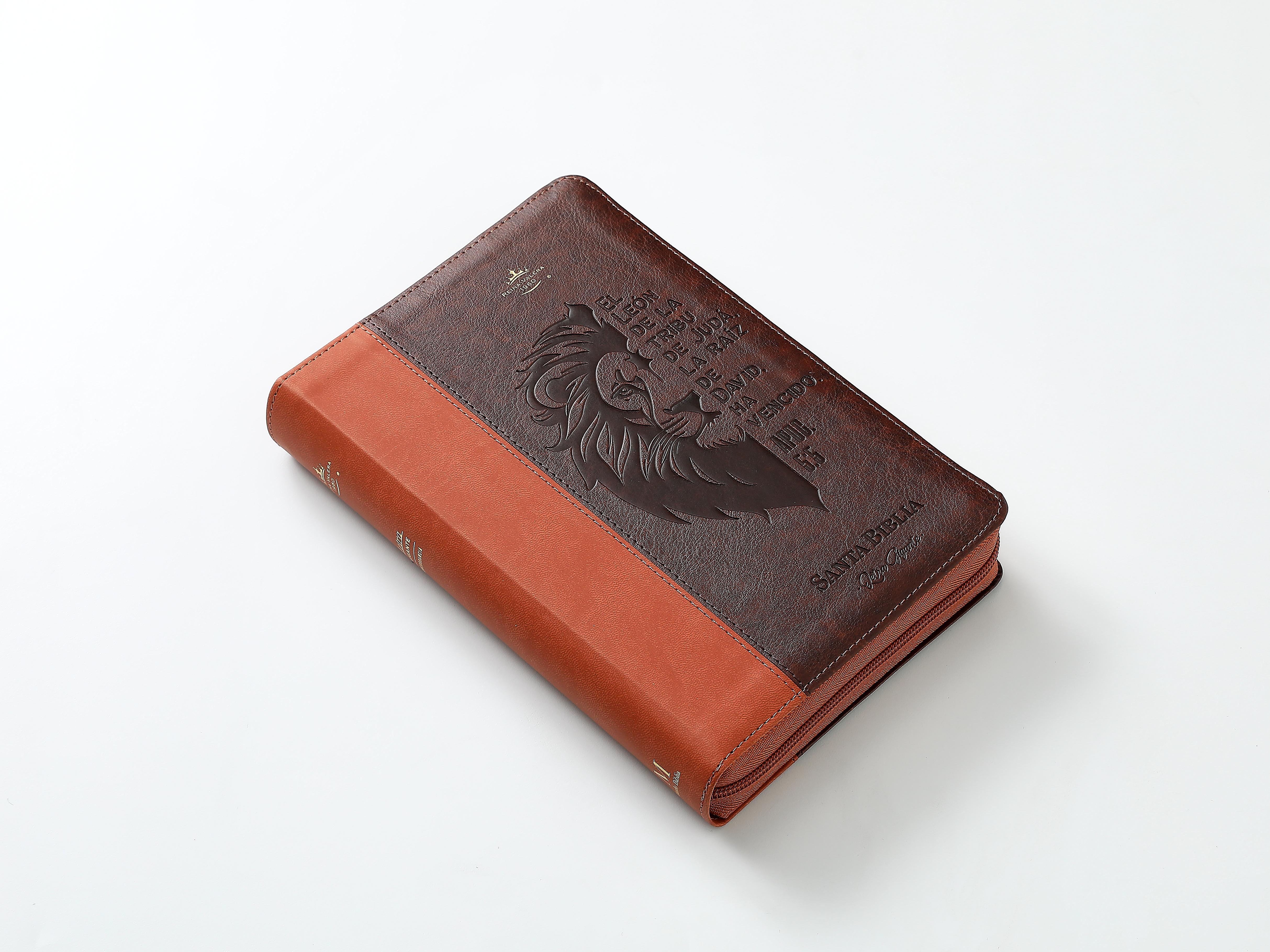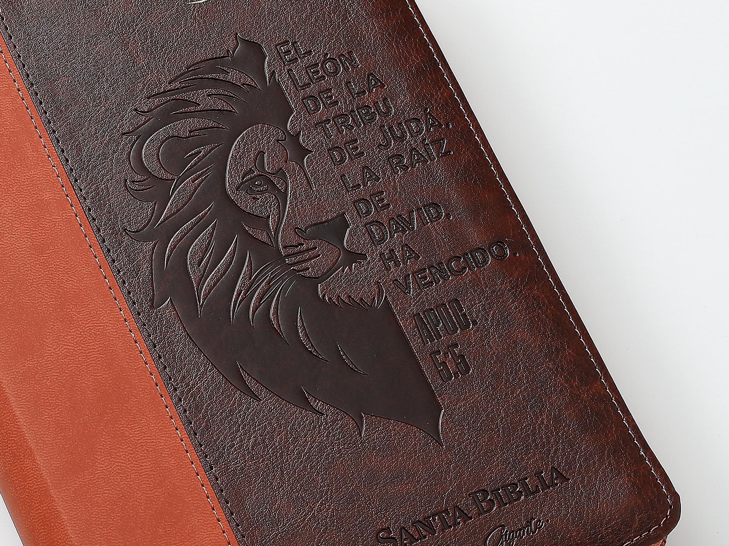 Biblia RVR60 tamaño manual letra Gigante Café/café con cierre: León de la tribu de Judá