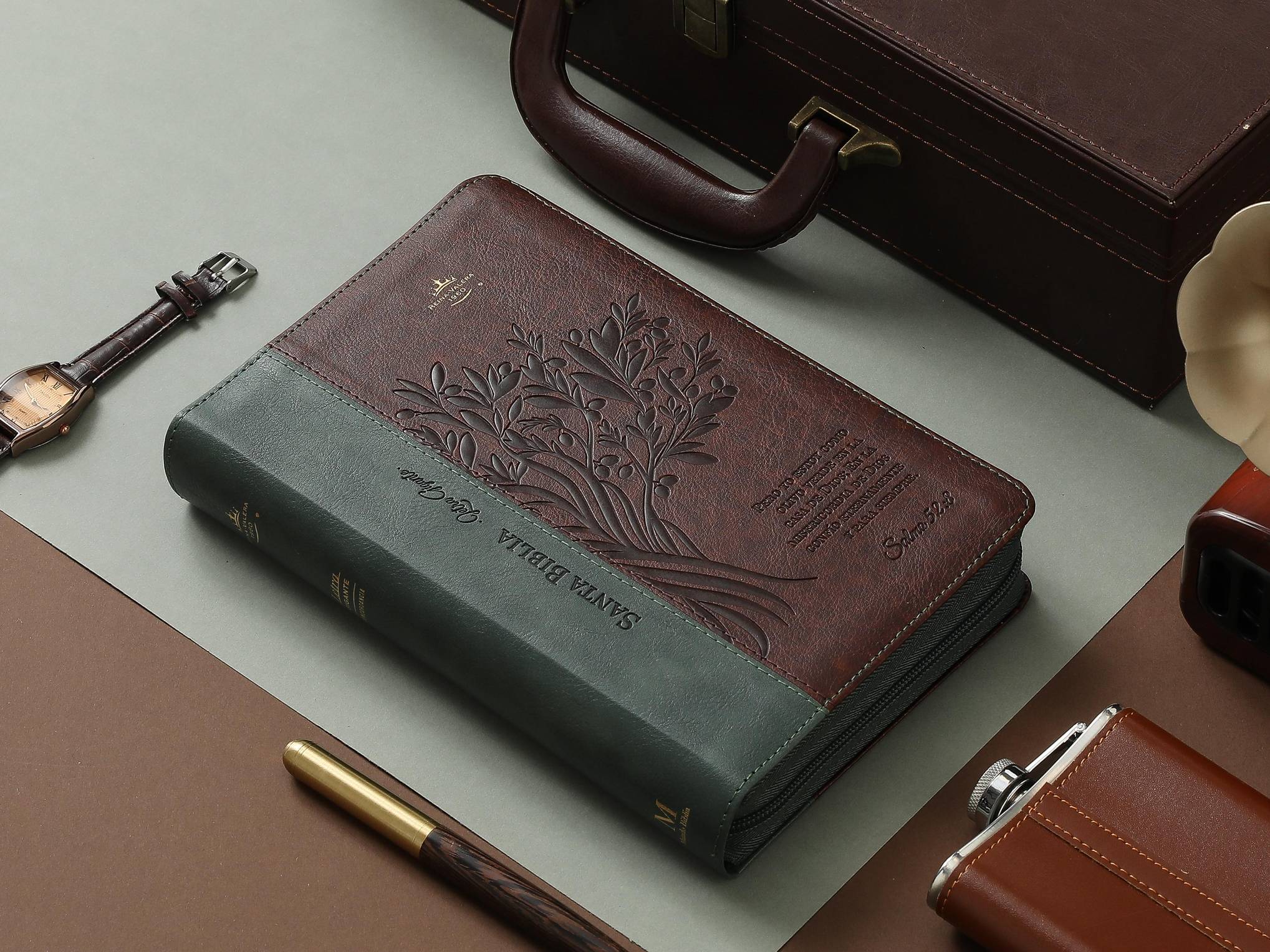 La letra gigante de 14 puntos permite una lectura descansada, ideal para lecturas prolongadas, estudios bíblicos, predicación, discipulado o para quienes agradecen una tipografía clara y fácil de seguir. Su tapa fabricada en dos tonos de imitación piel de alta calidad, junto con el cierre, ofrece elegancia, resistencia y protección. El canto dorado aporta un acabado clásico y distinguido, convirtiéndola en una Biblia hermosa y duradera. Además, la portada incluye un versículo bíblico grabado, un detalle especial que inspira desde el primer vistazo y recuerda constantemente el valor eterno de la Palabra de Dios.