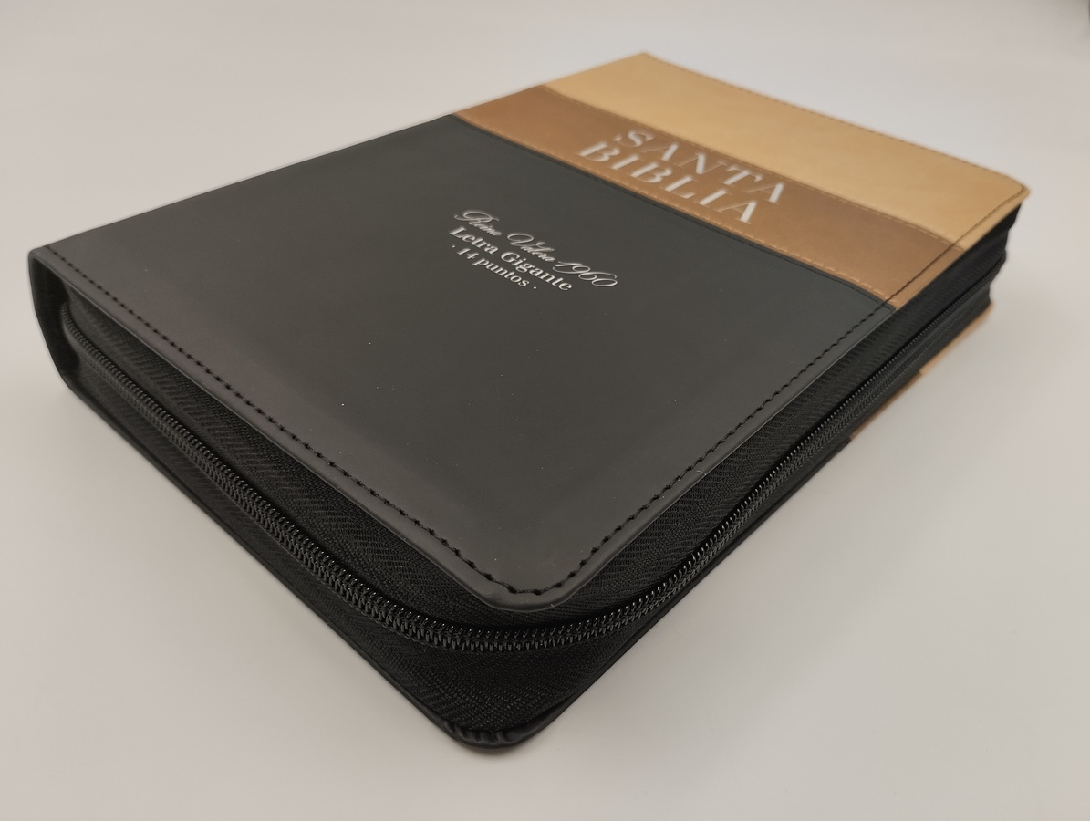 Biblia RVR60 Tamaño manual letra gigante i/piel Beige/café/marrón con cierre