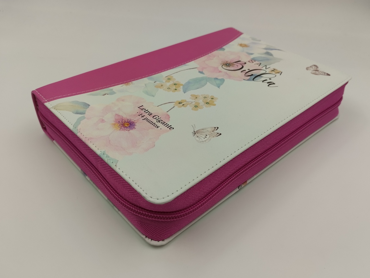 Biblia RVR60 Tamaño manual letra gigante i/piel Flores rosa con cierre