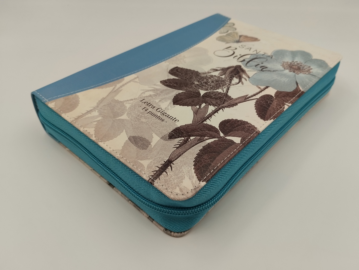 Biblia RVR60 Tamaño manual letra gigante i/piel Flores turquesa con cierre