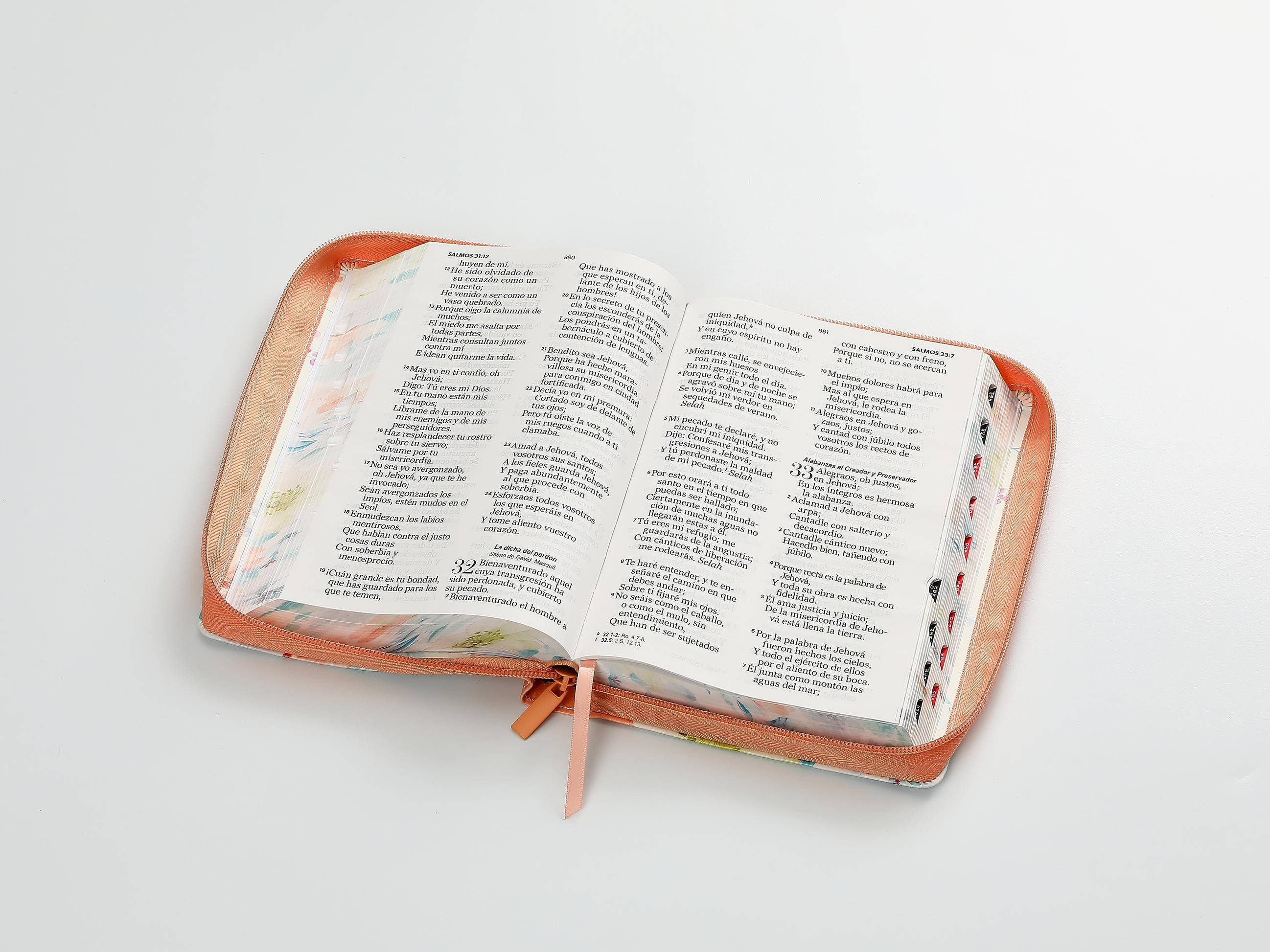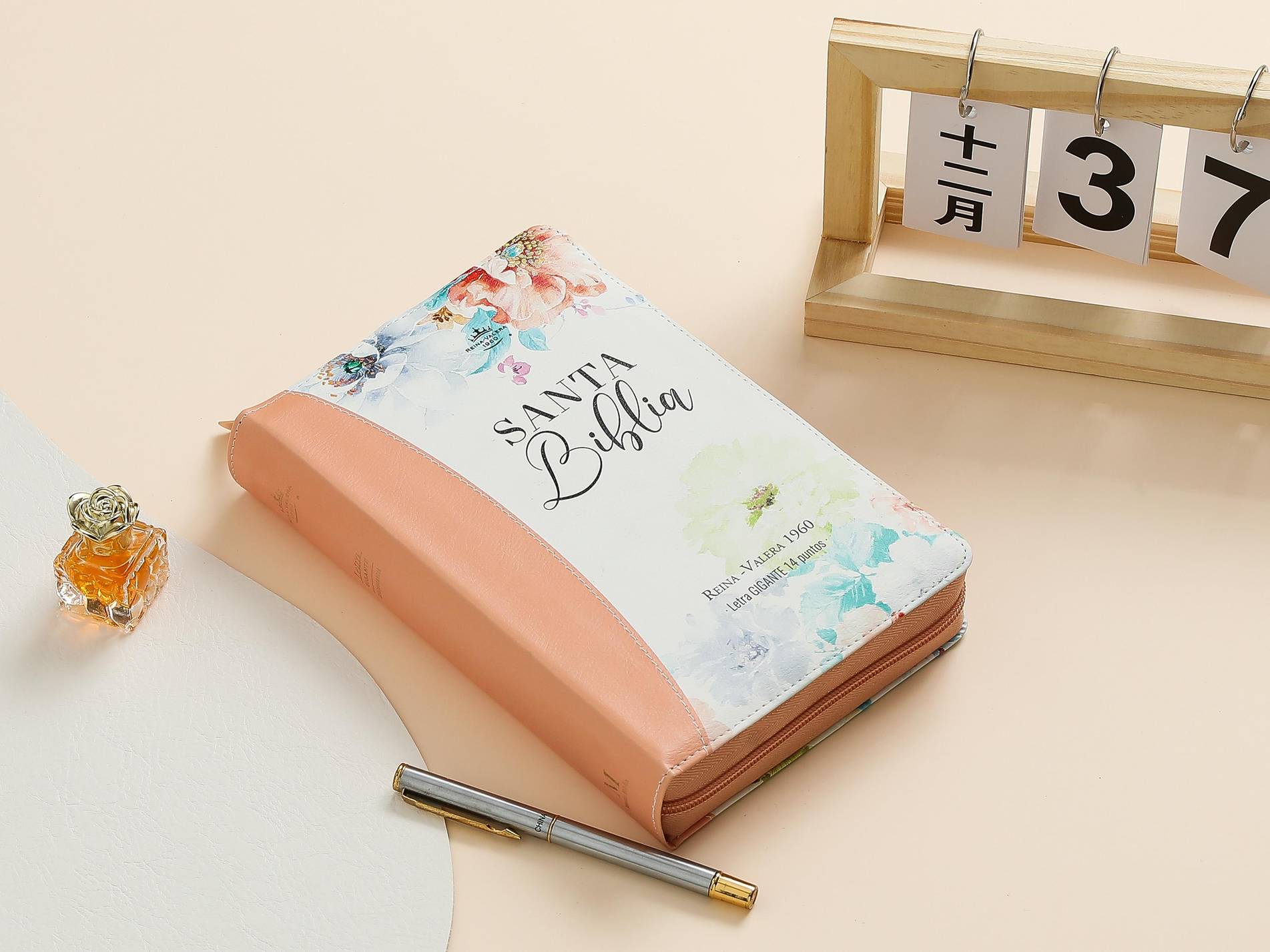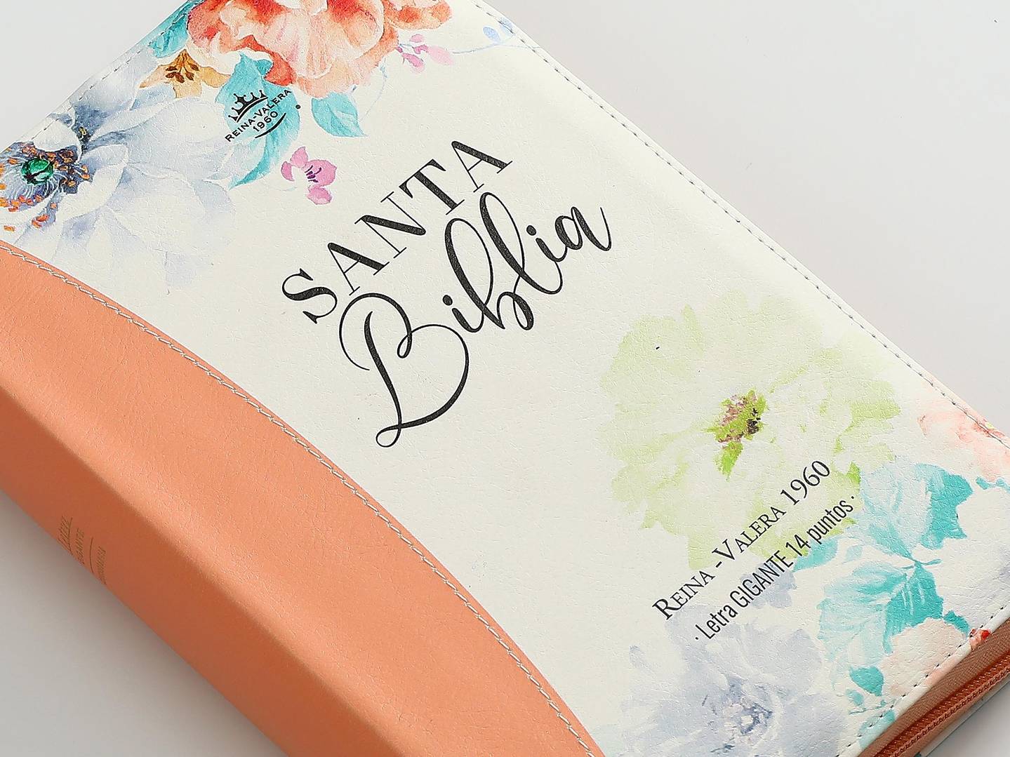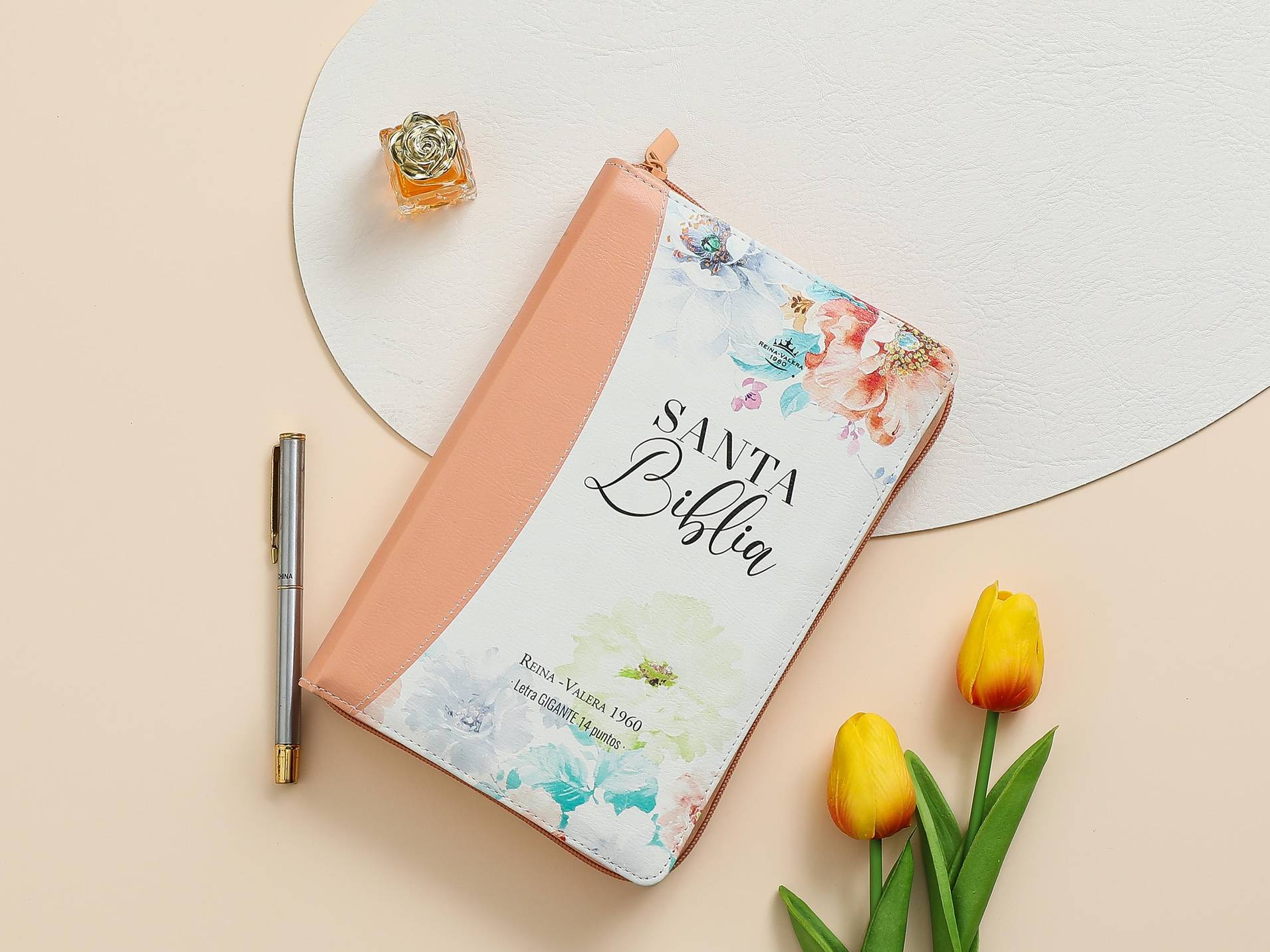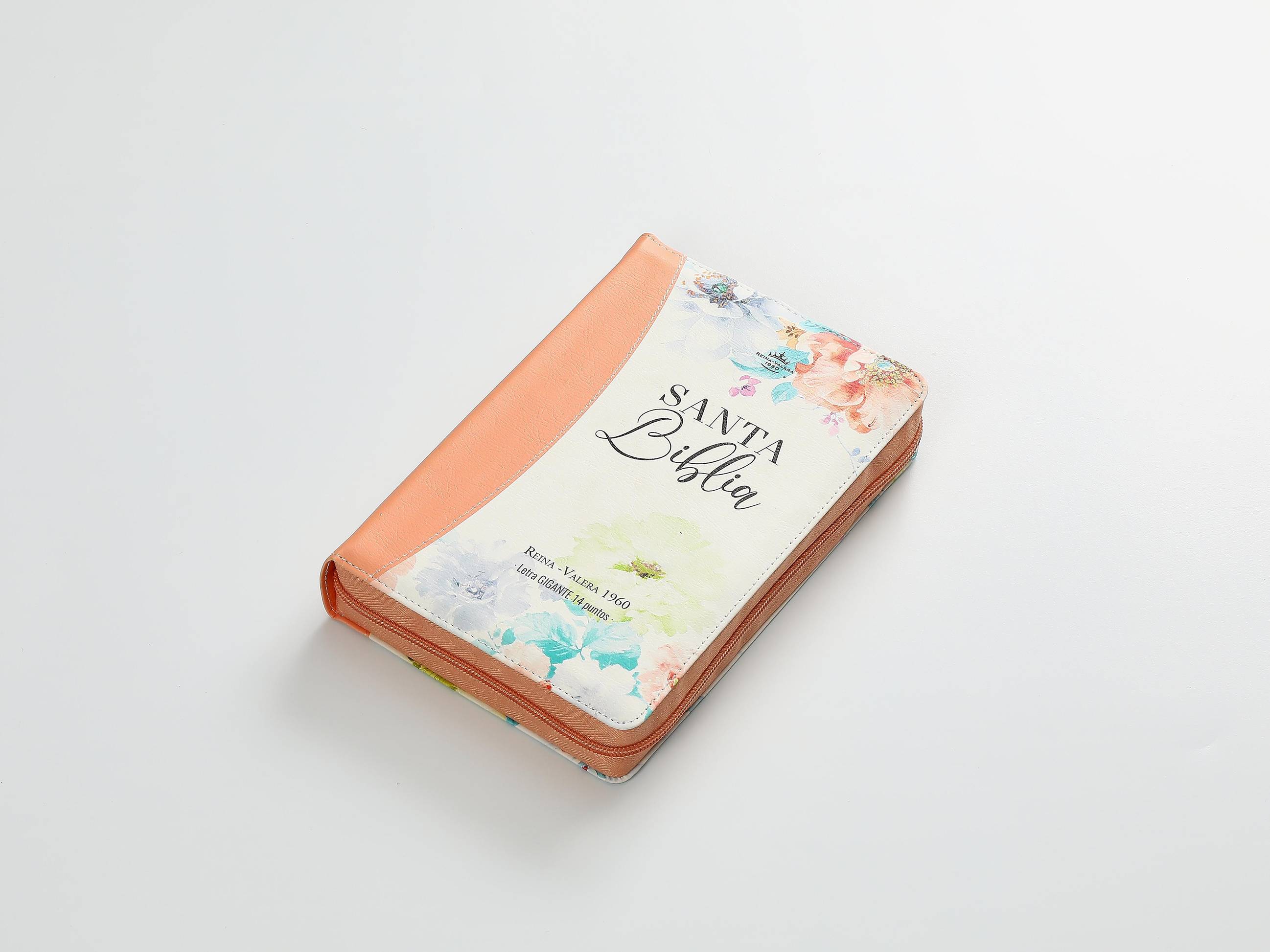 La letra gigante de 14 puntos facilita una lectura fluida y descansada, perfecta para lecturas prolongadas, enseñanza, predicación o para quienes prefieren una tipografía clara y cómoda. Su portada en imitación piel, junto con el cierre, protege el interior y aporta durabilidad, mientras que el canto pintado floral añade un detalle artístico y delicado que hace de esta Biblia una pieza verdaderamente especial.