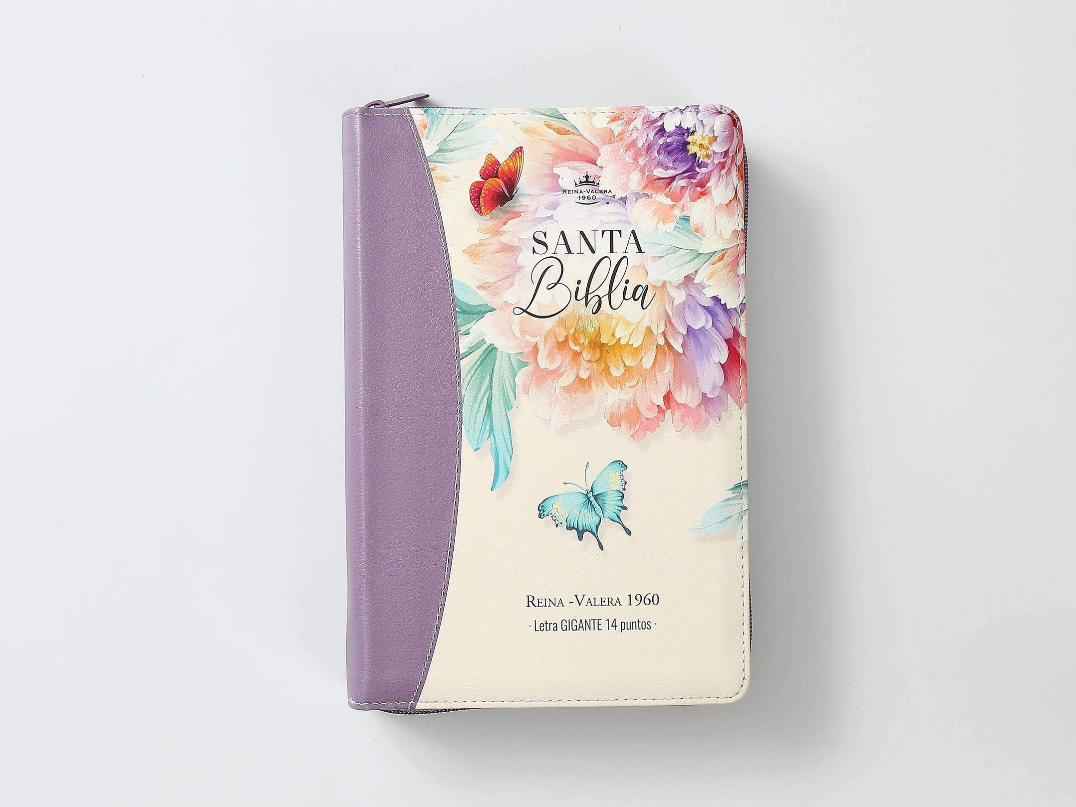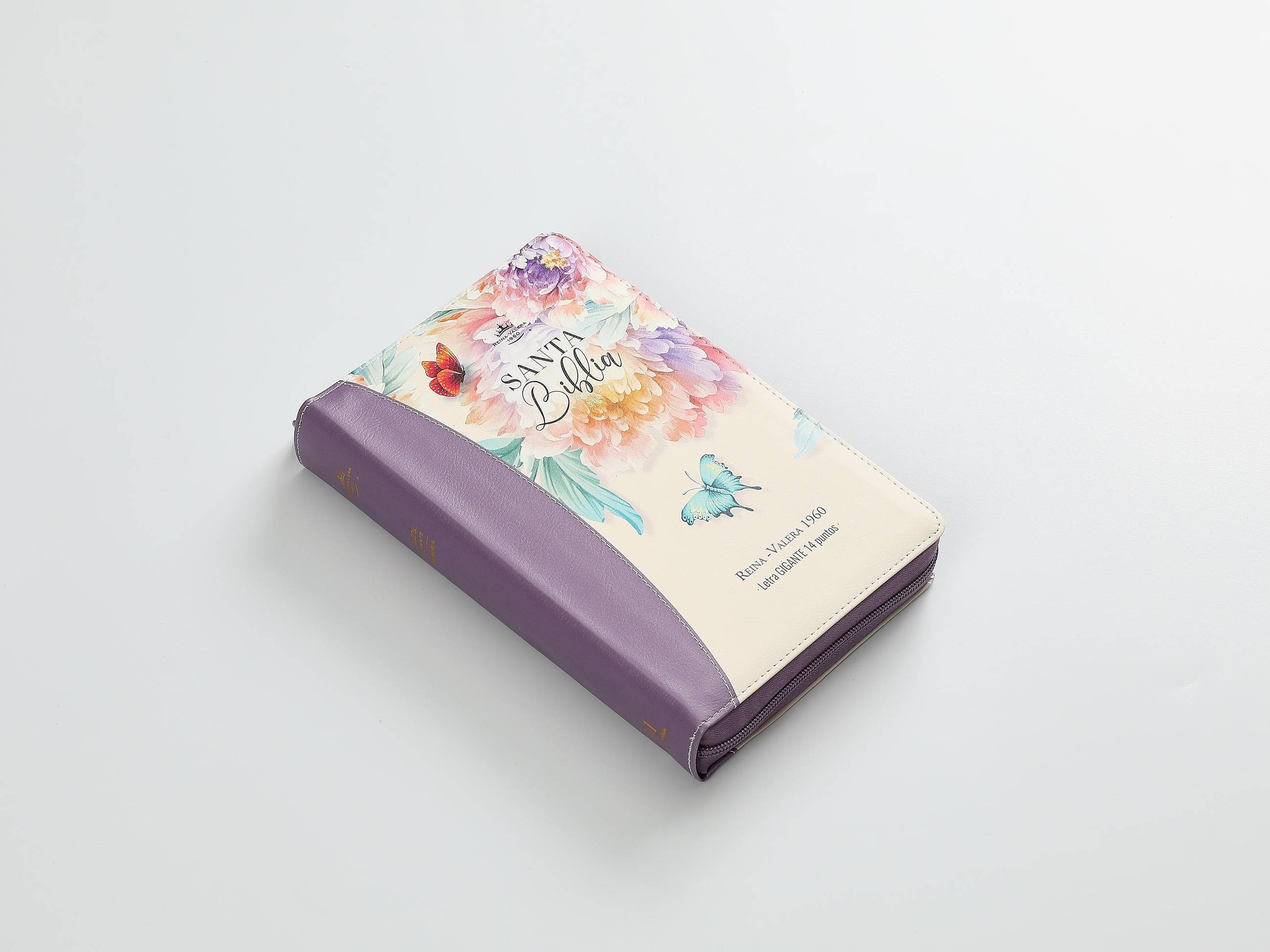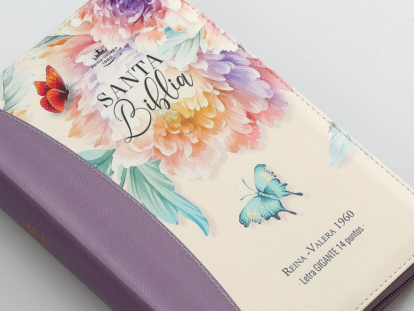 La letra gigante de 14 puntos facilita una lectura fluida y descansada, perfecta para lecturas prolongadas, enseñanza, predicación o para quienes prefieren una tipografía clara y cómoda. Su portada en imitación piel, junto con el cierre, protege el interior y aporta durabilidad, mientras que el canto pintado floral añade un detalle artístico y delicado que hace de esta Biblia una pieza verdaderamente especial.