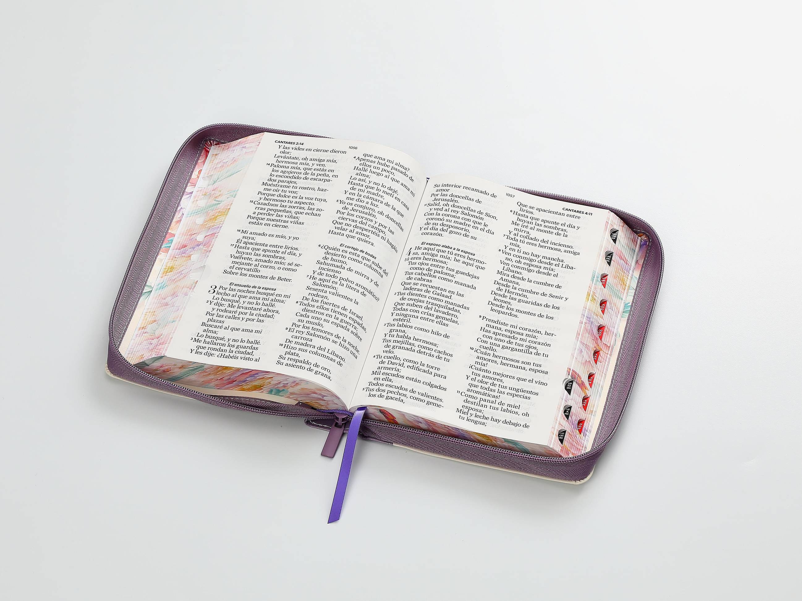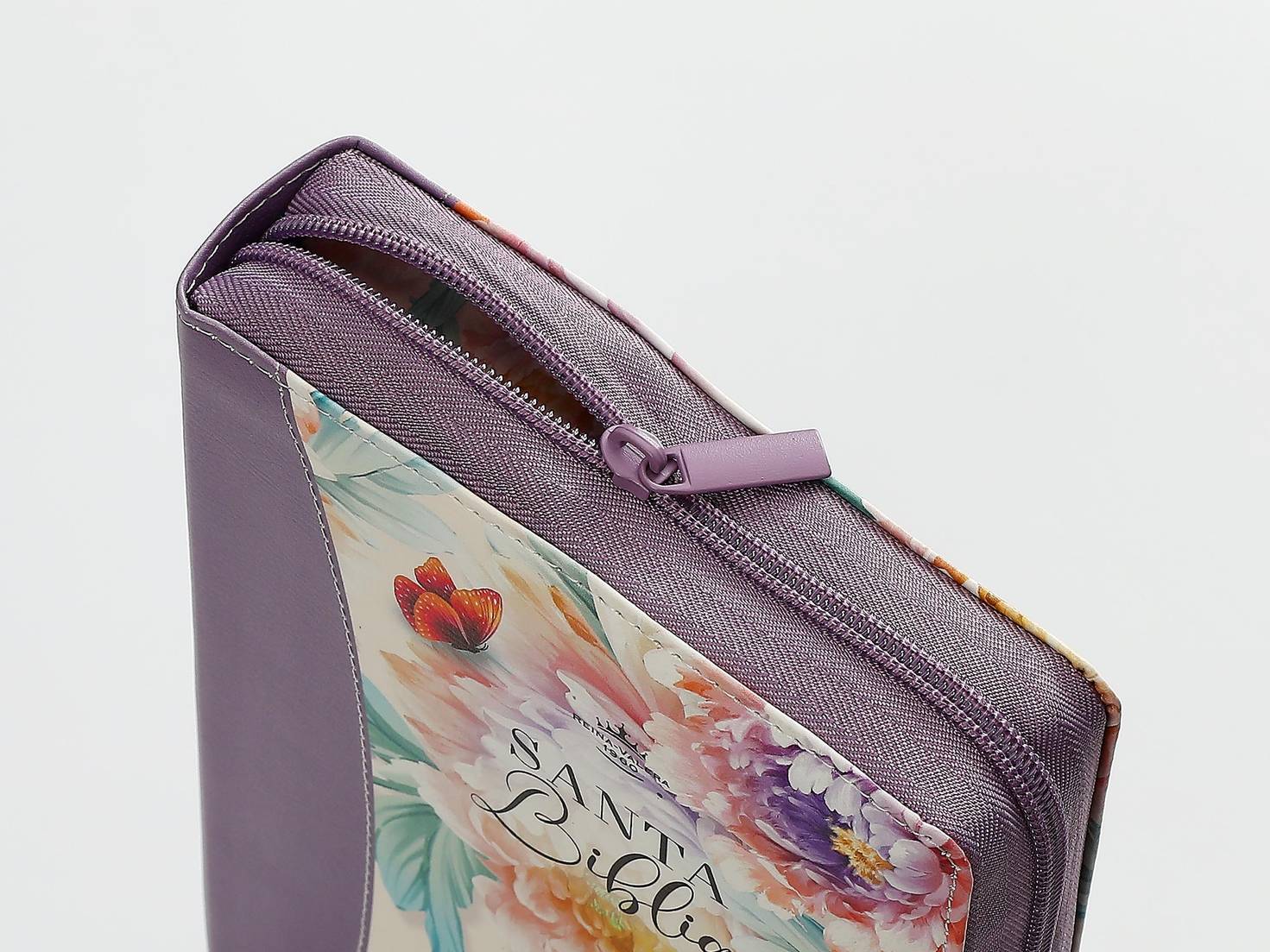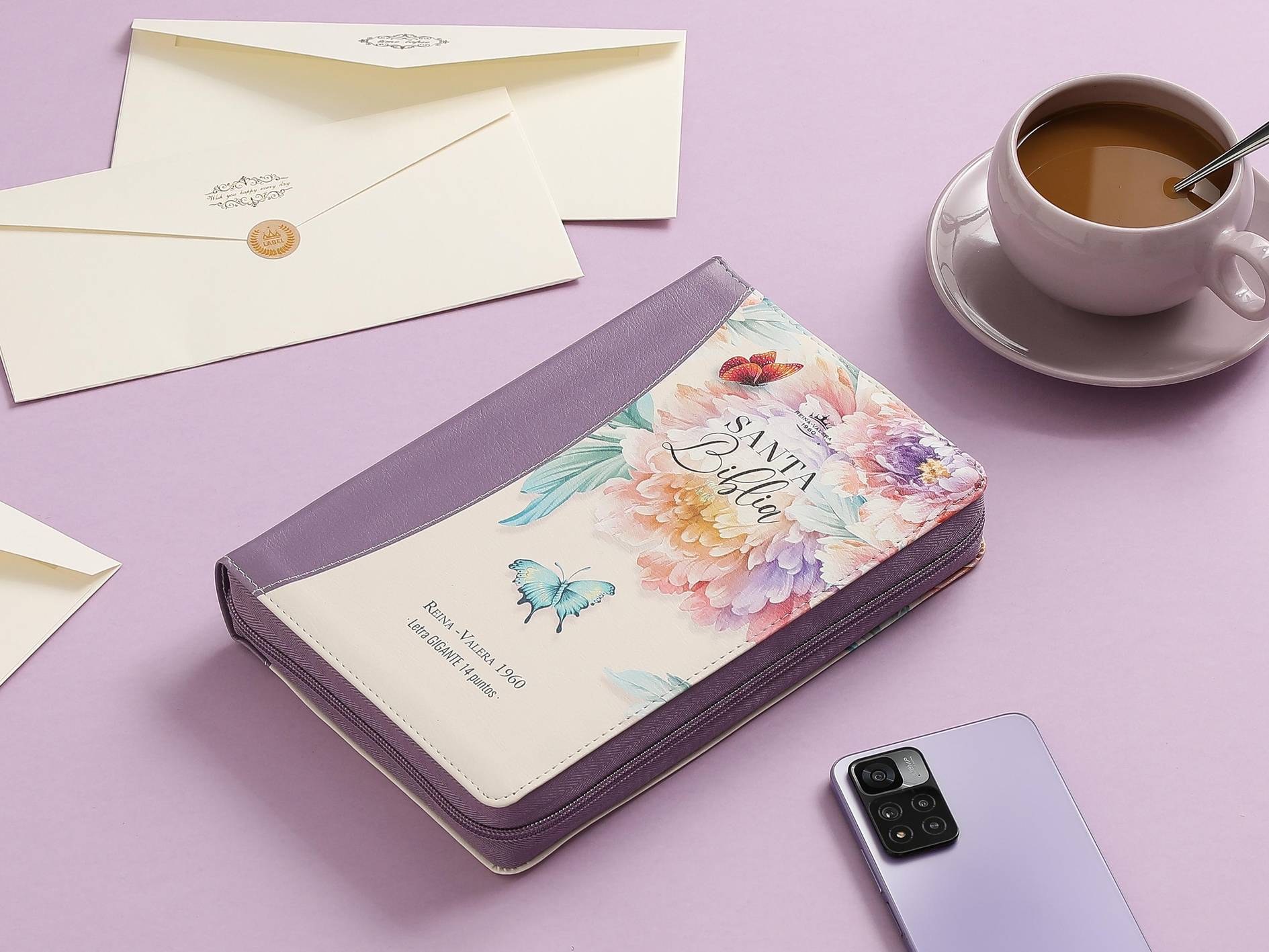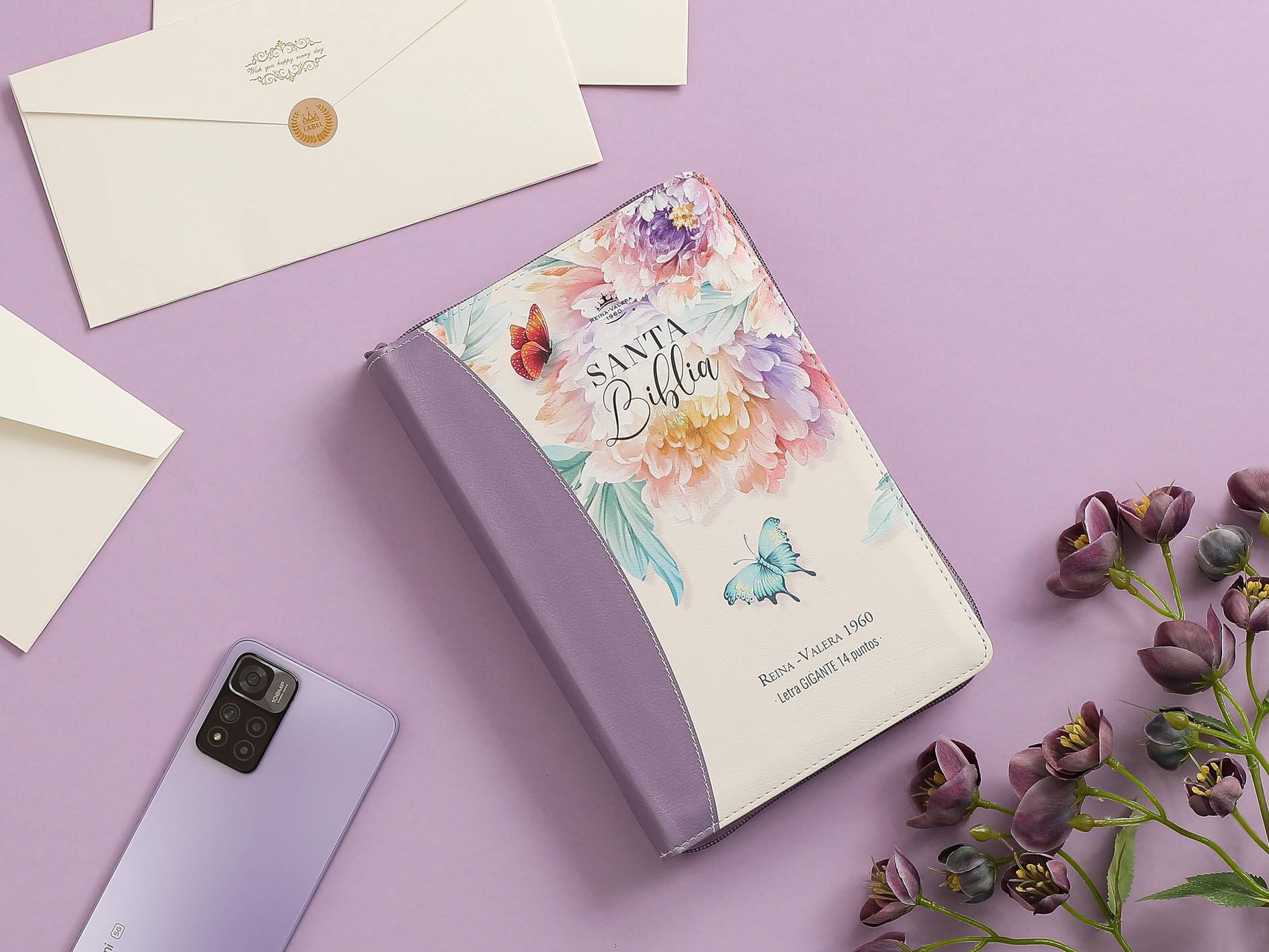 La letra gigante de 14 puntos facilita una lectura fluida y descansada, perfecta para lecturas prolongadas, enseñanza, predicación o para quienes prefieren una tipografía clara y cómoda. Su portada en imitación piel, junto con el cierre, protege el interior y aporta durabilidad, mientras que el canto pintado floral añade un detalle artístico y delicado que hace de esta Biblia una pieza verdaderamente especial.