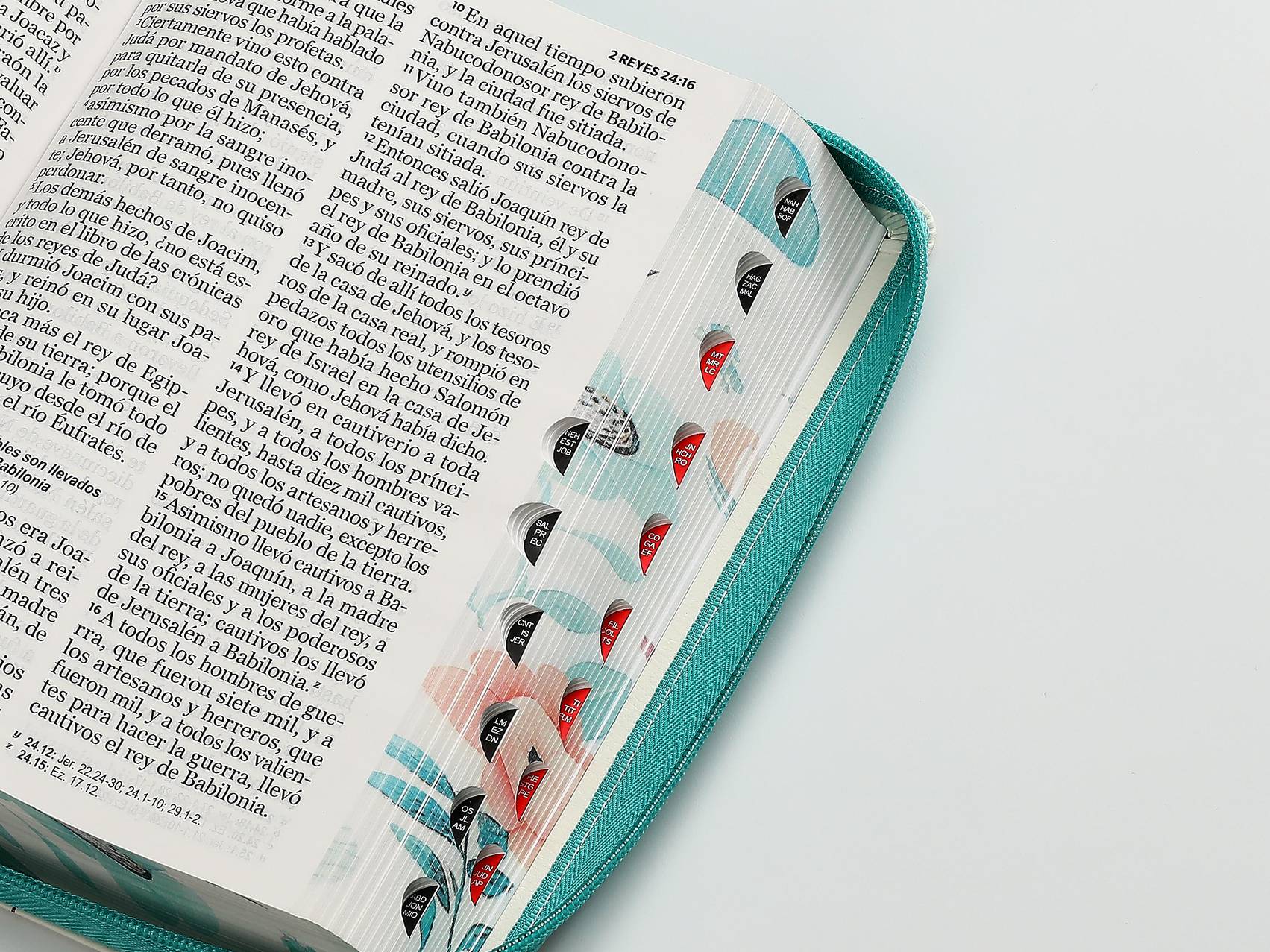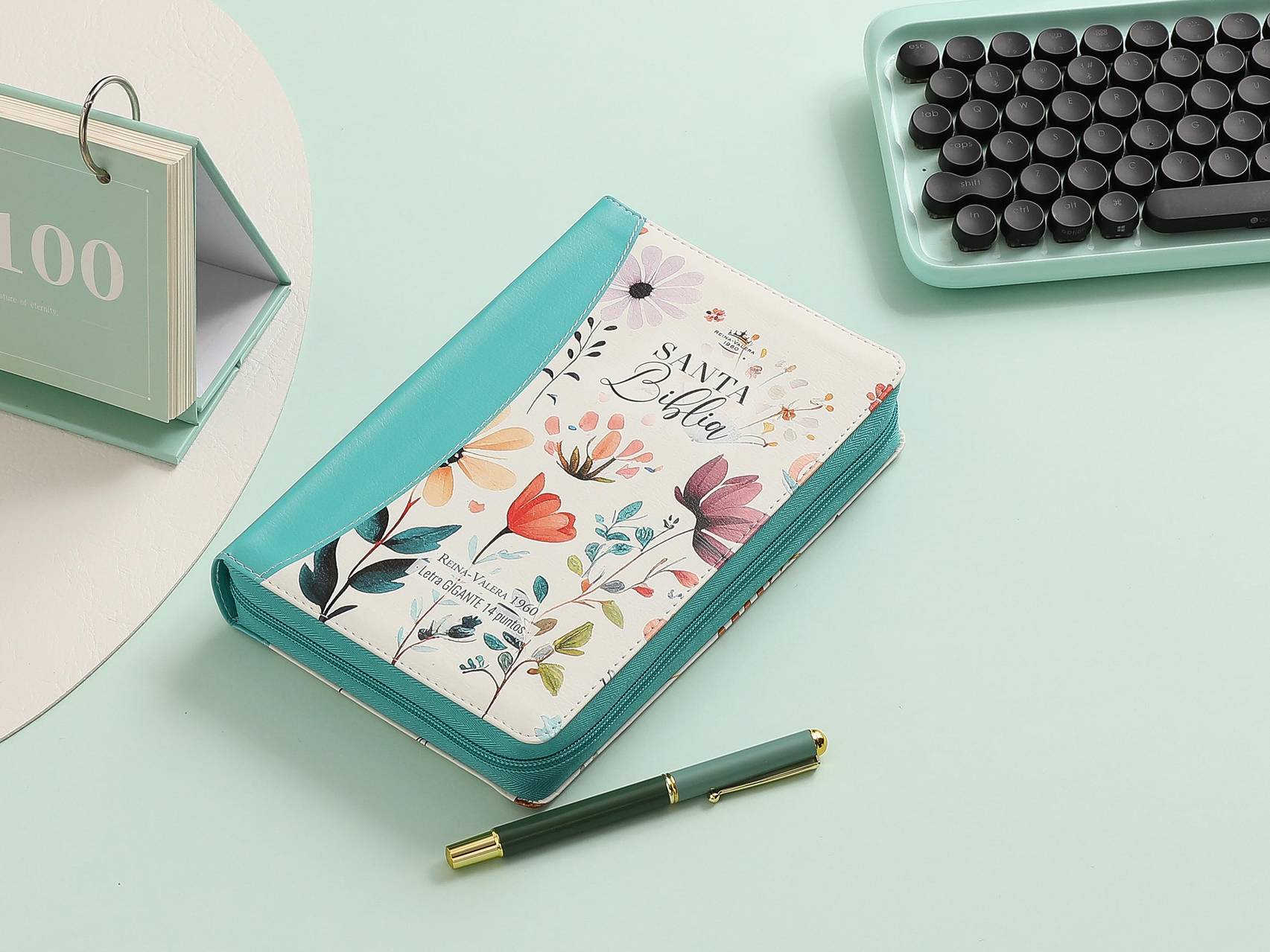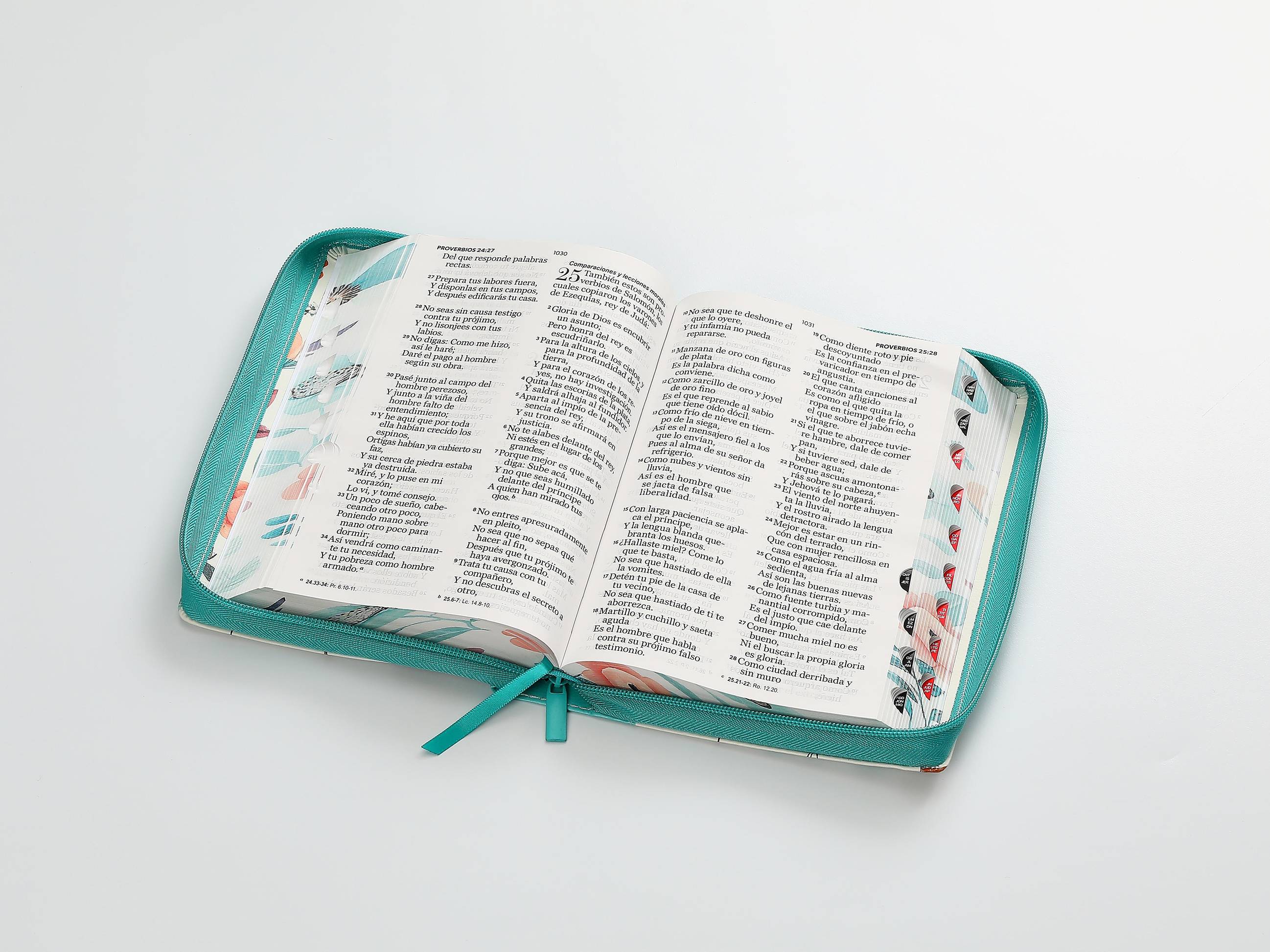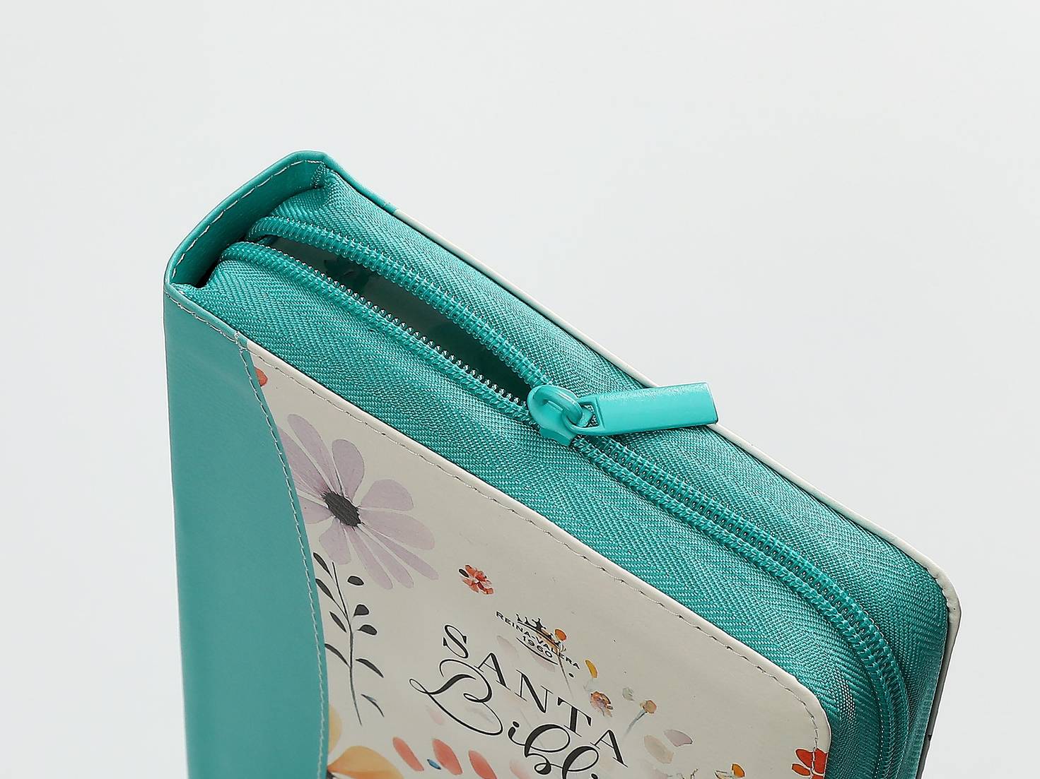 Biblia RVR60 tamaño manual letra Gigante jardín turquesa. Con cierre/índice y canto pintado