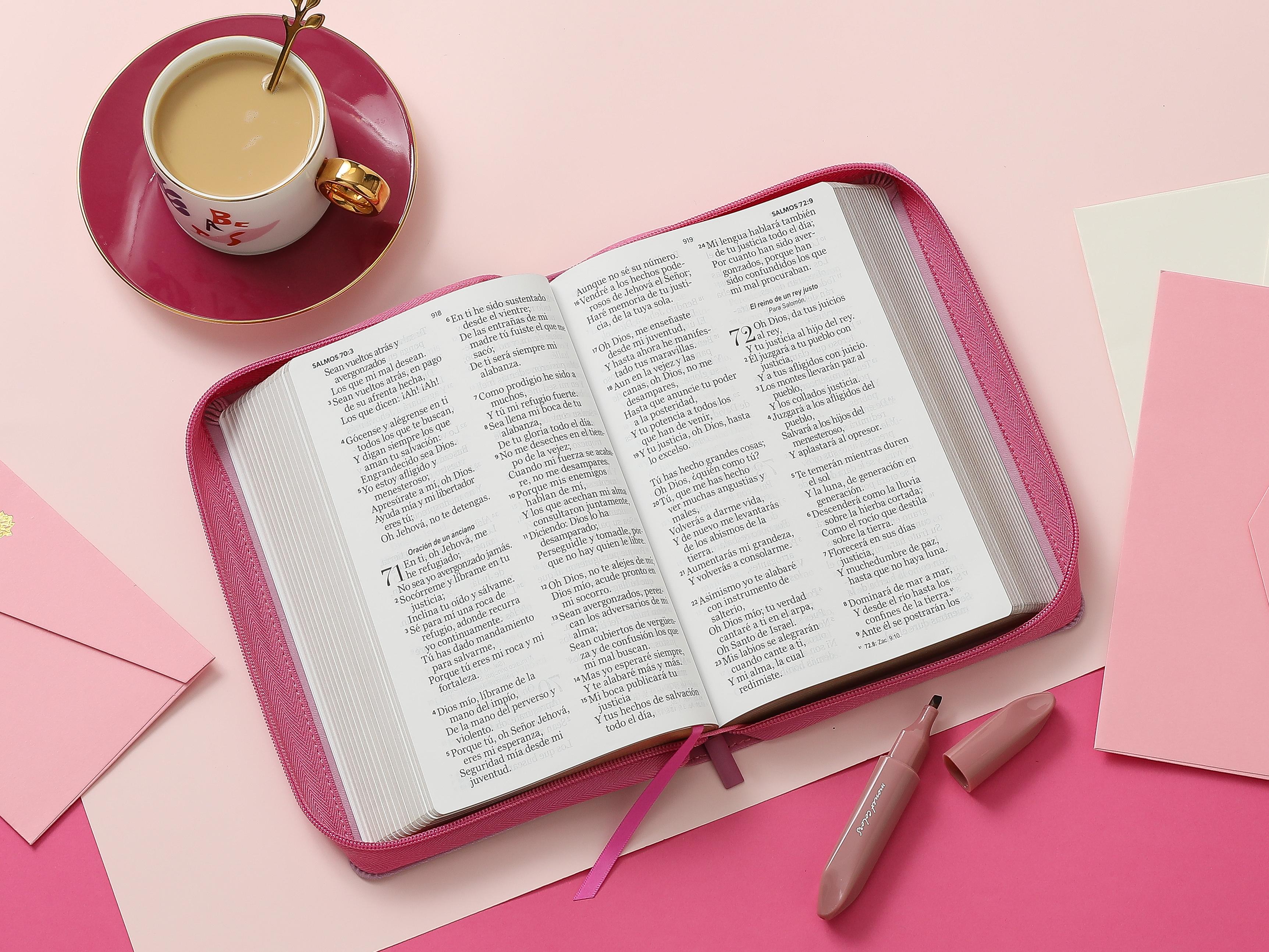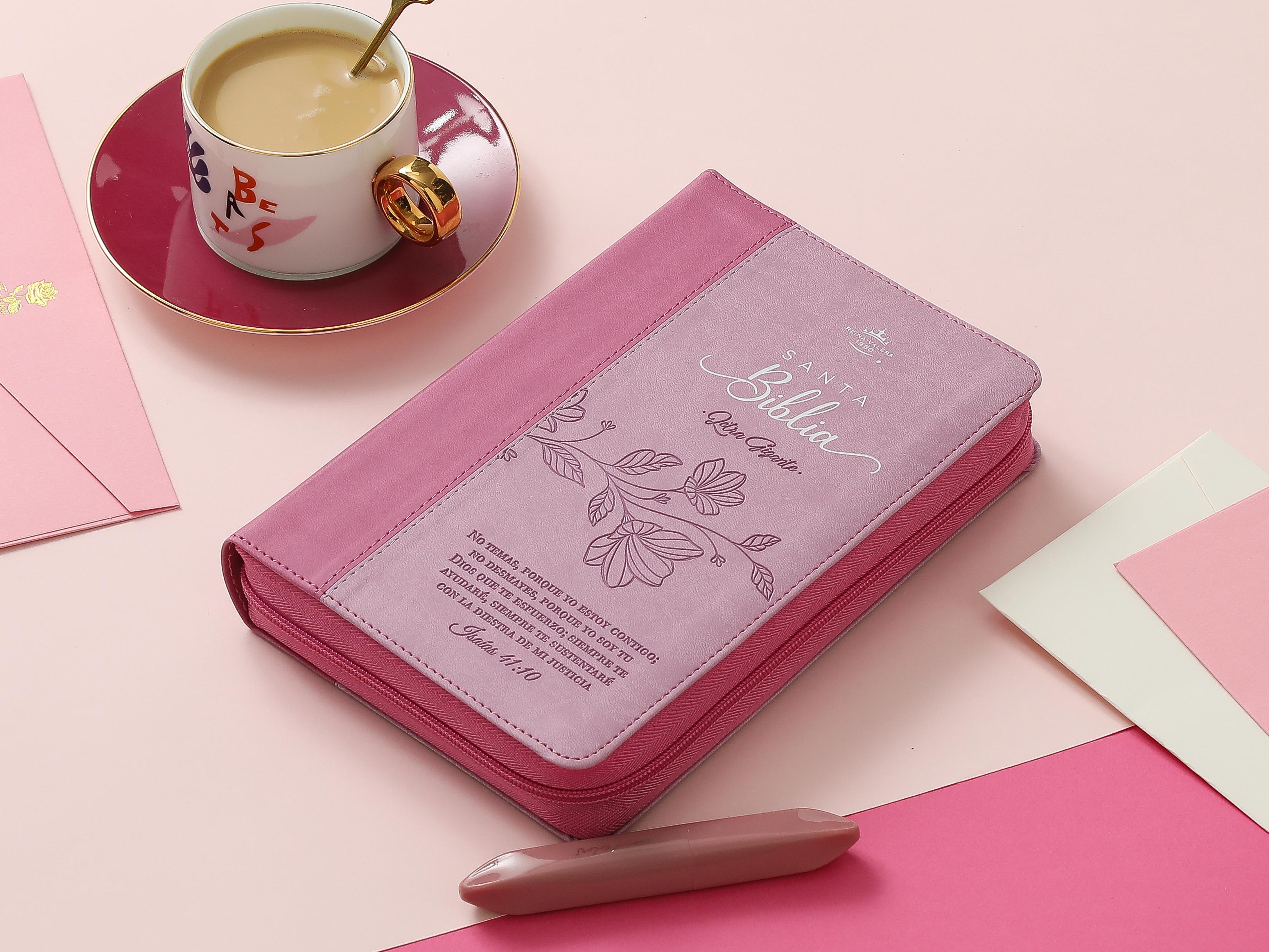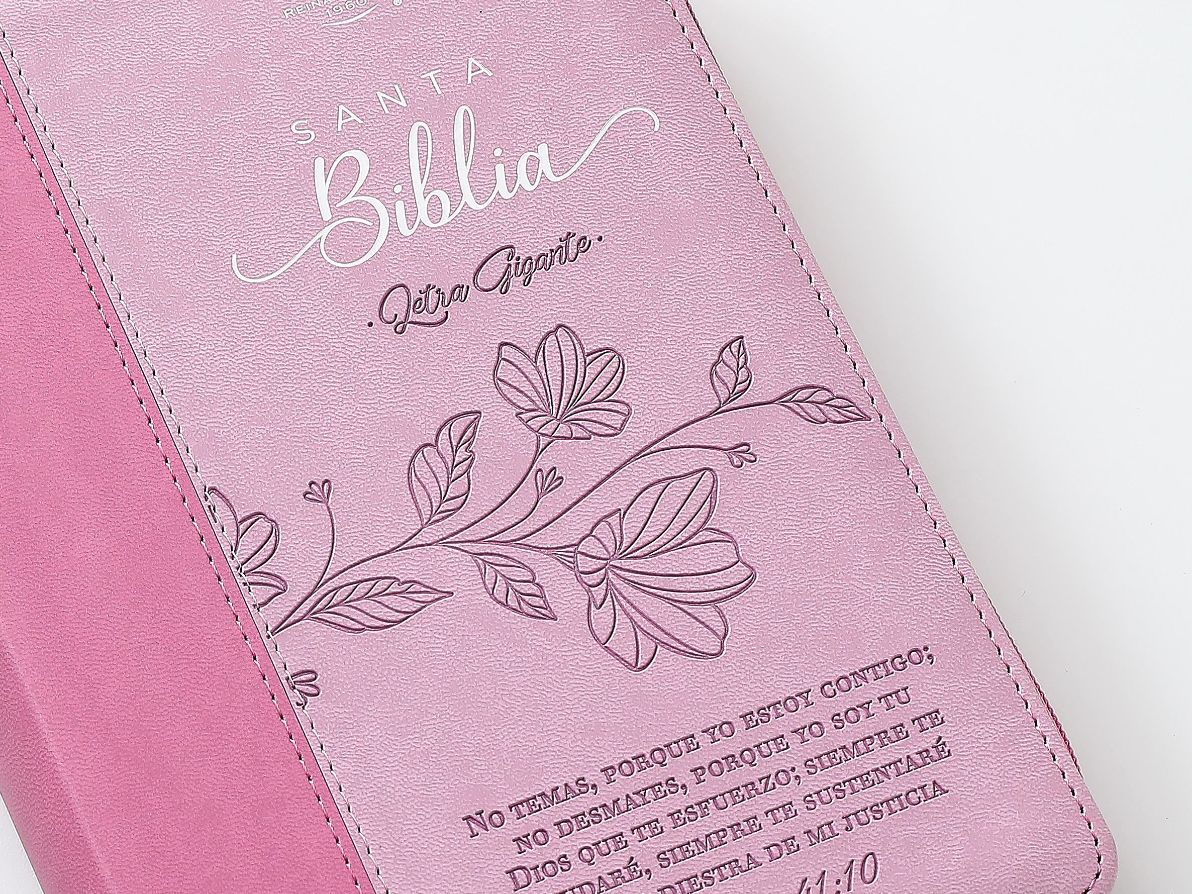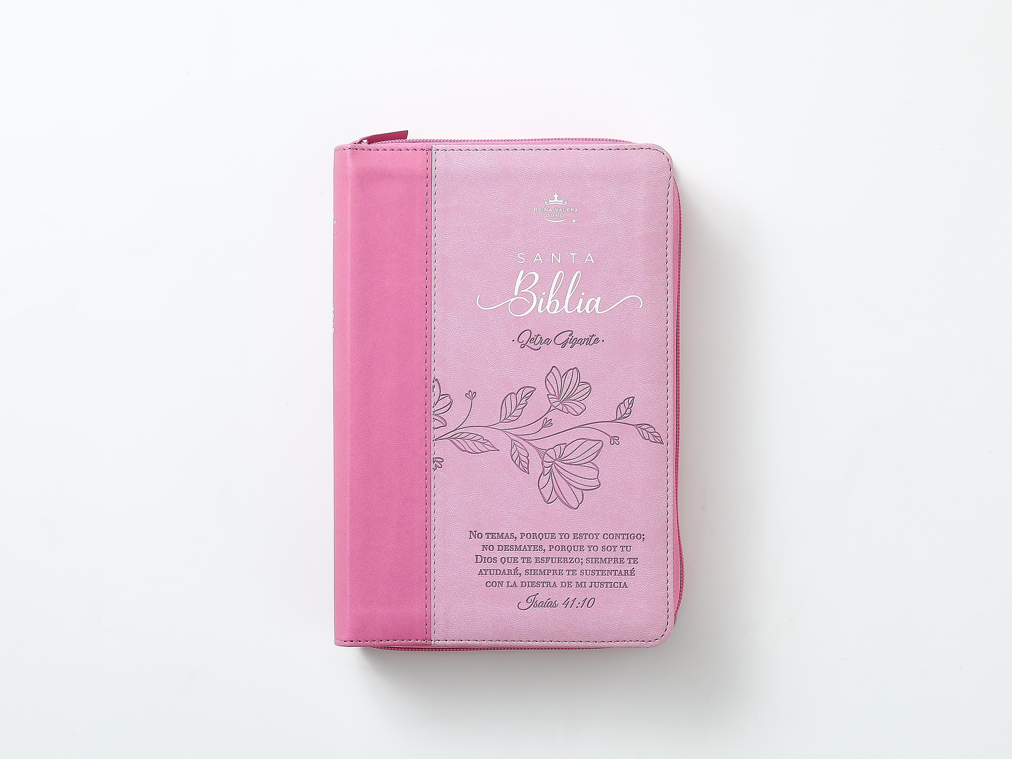 Biblia RVR60 tamaño manual letra Gigante Rosa/rosa con cierre: No temas