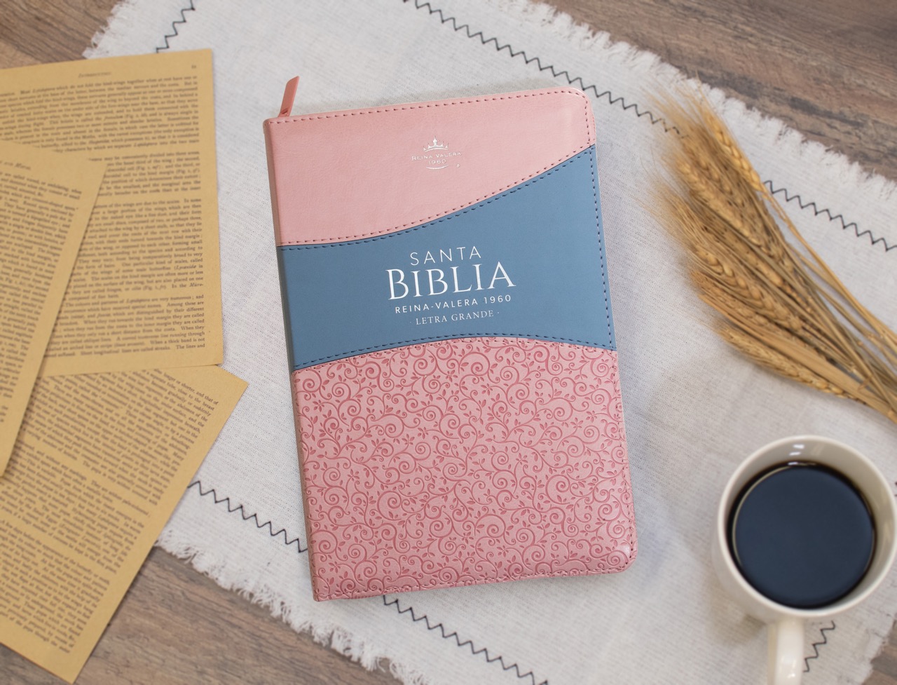 Biblia RVR60 Tamaño Manual Letra Grande i/piel ROSA/AZUL con cierre/índice (Colección Banda)