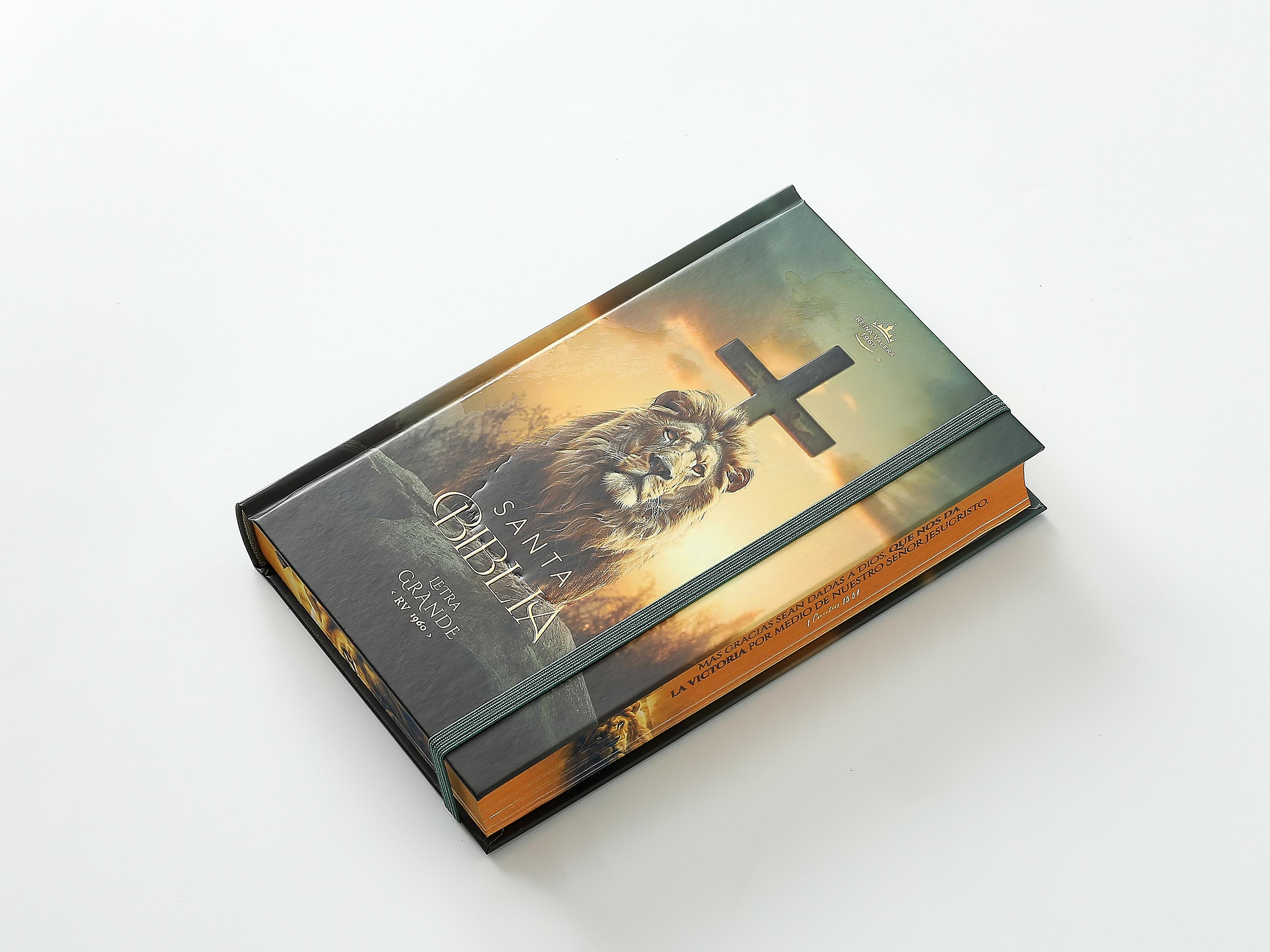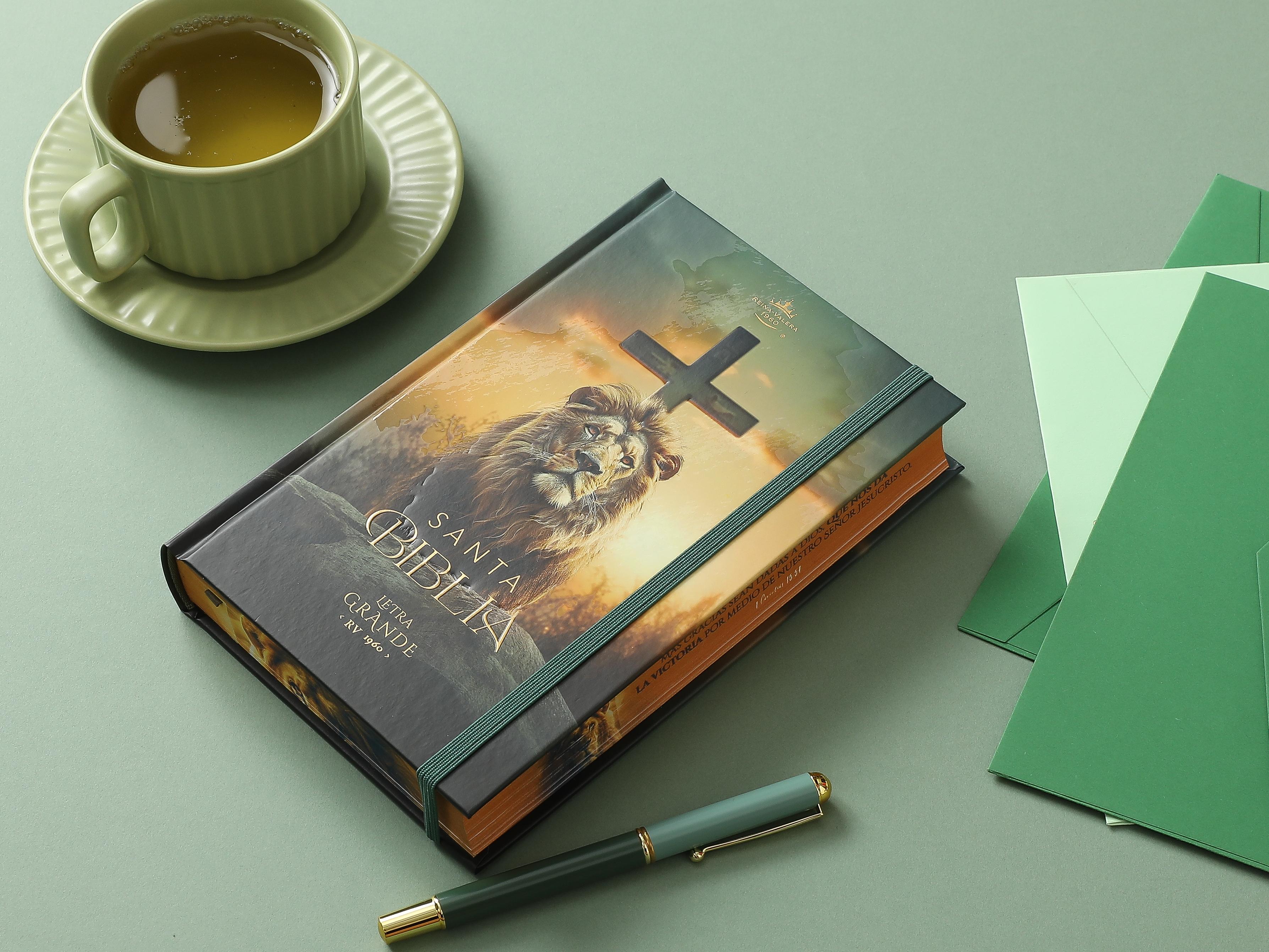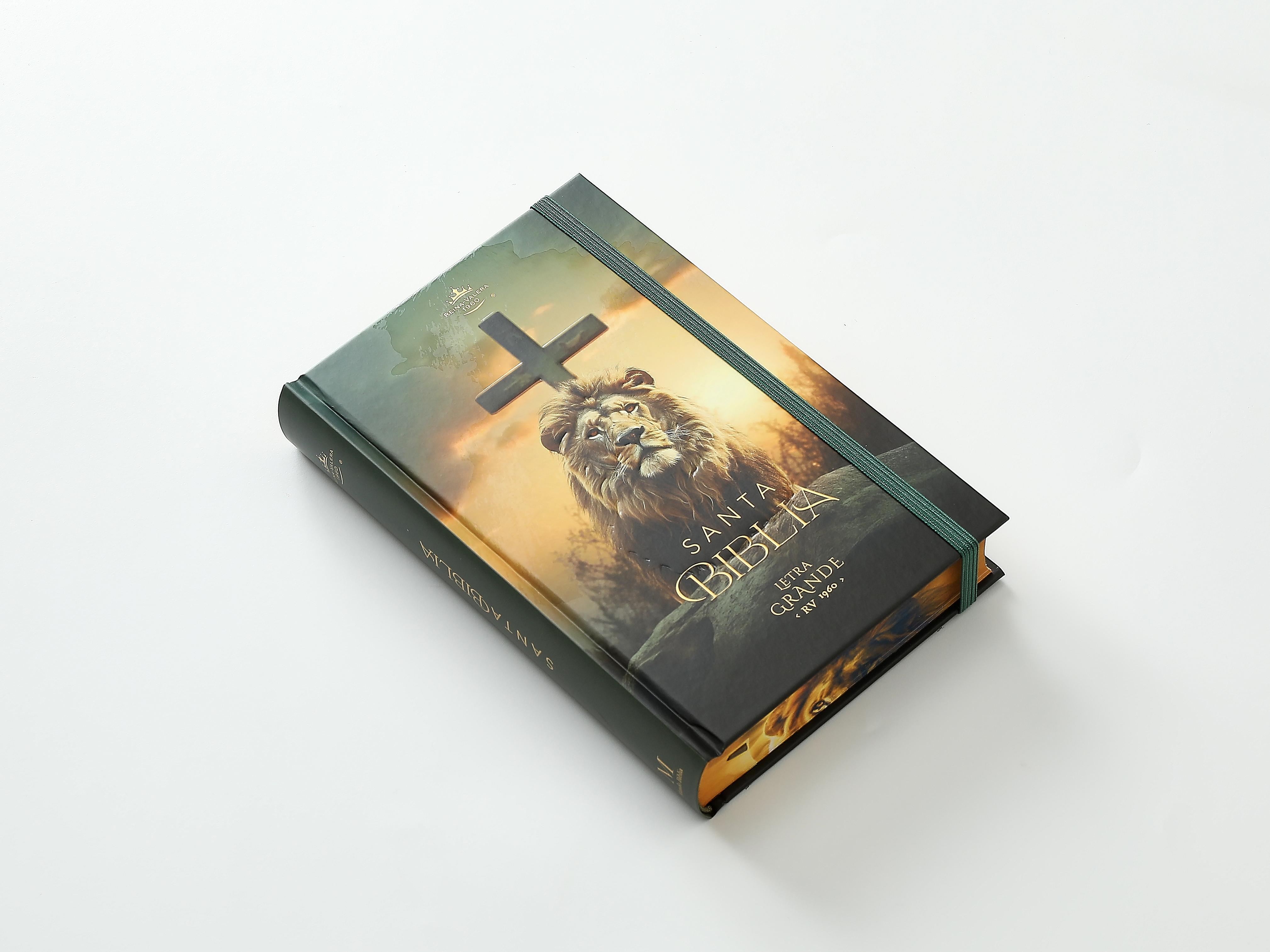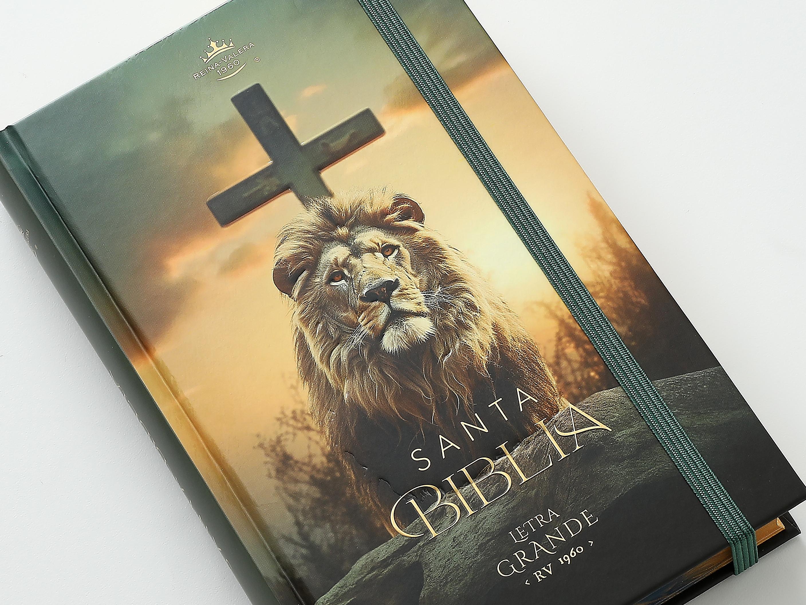 Biblia RVR60 Tamaño manual LEtra GRande TApa dura con elástico: León y cruz