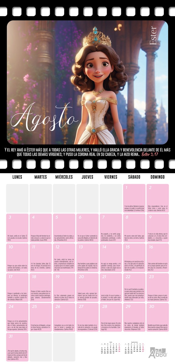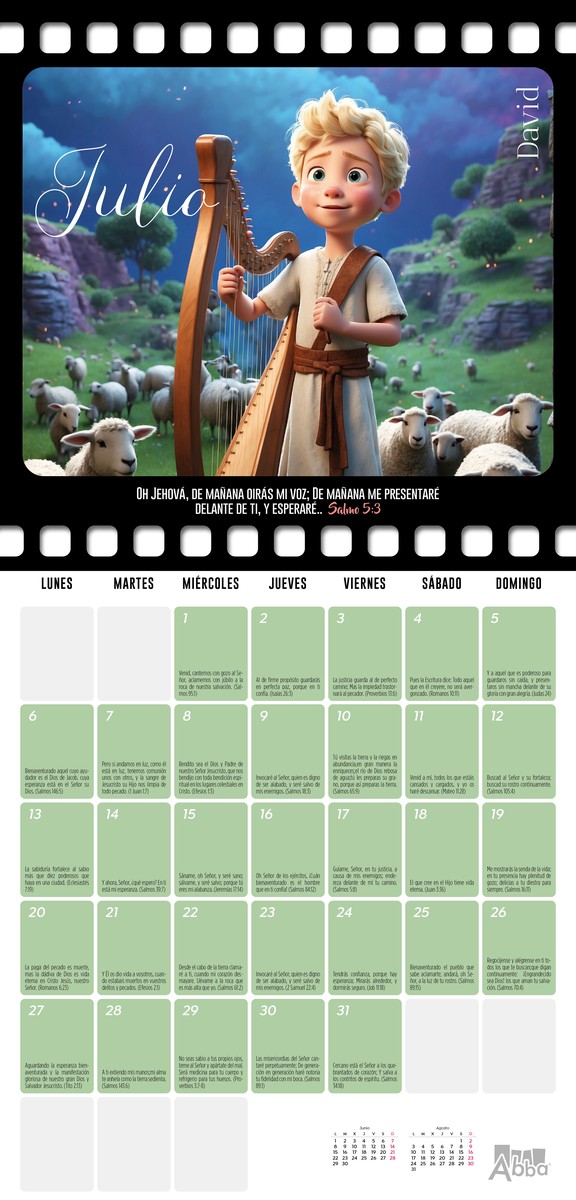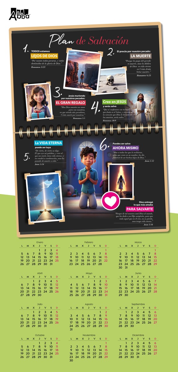 Cada día incluye un versículo bíblico para reflexionar, lo que permite que los niños crezcan rodeados de mensajes positivos y principios sólidos. No es solo un calendario, es una herramienta diaria para formar el carácter.