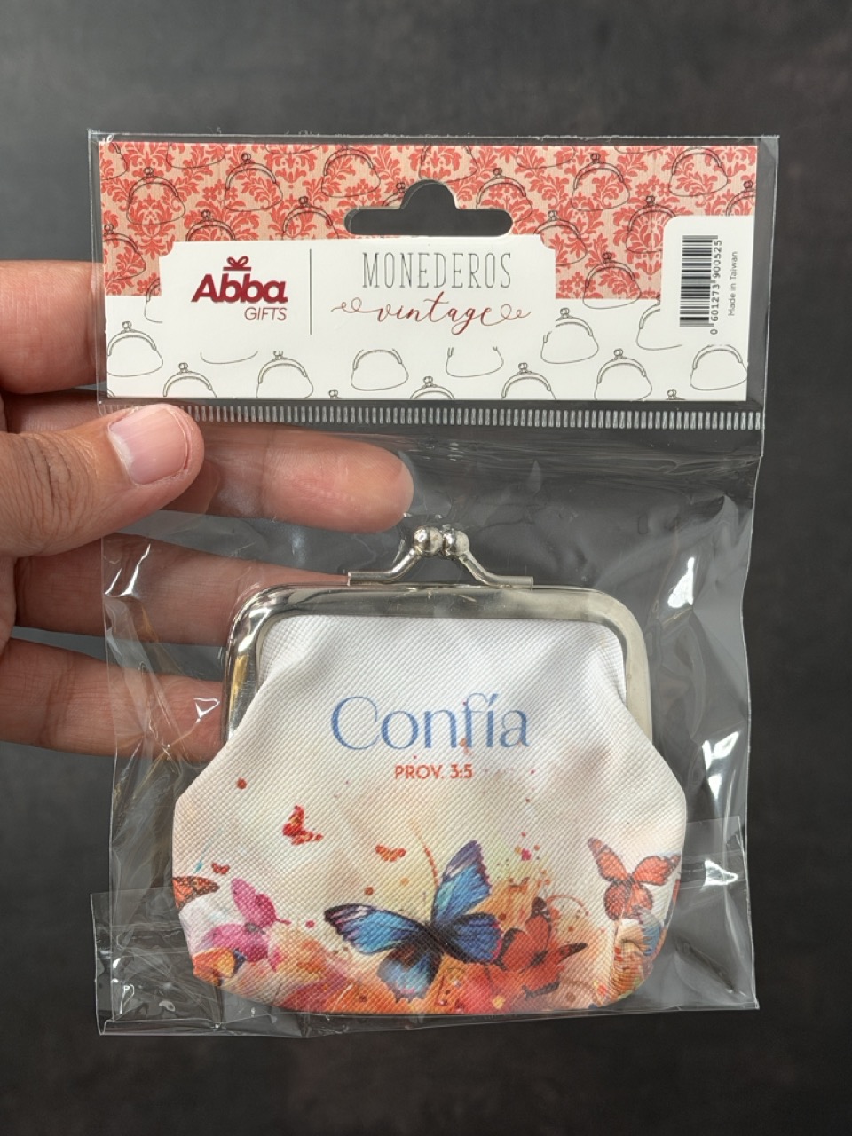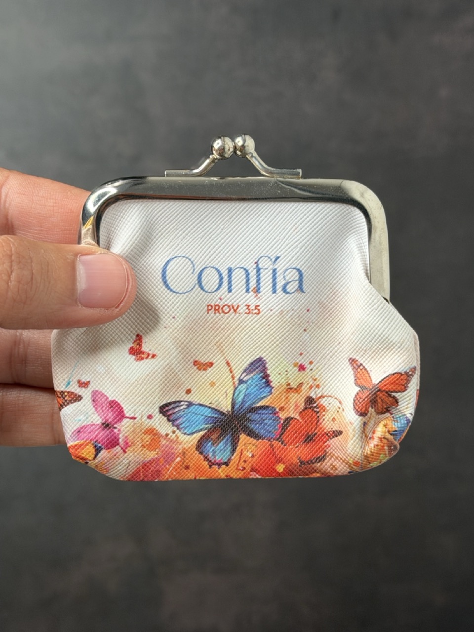Cada monedero lleva impreso un versículo bíblico cuidadosamente seleccionado, una palabra que inspira, fortalece y recuerda que Dios provee y acompaña en cada aspecto de nuestra vida, incluso en los más cotidianos. Al abrirlo, no solo encuentras espacio para tus monedas y pequeños objetos, sino también un mensaje que habla al corazón.