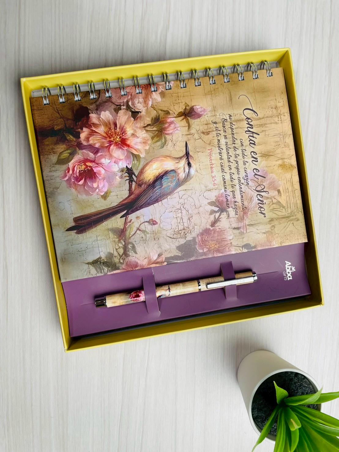 Su tapa dura aporta resistencia y elegancia, convirtiéndola en una libreta duradera, hecha para conservar lo que Dios va sembrando con el paso del tiempo. El bolígrafo a conjunto, cuidadosamente integrado, completa la experiencia, uniendo funcionalidad y armonía en cada detalle.