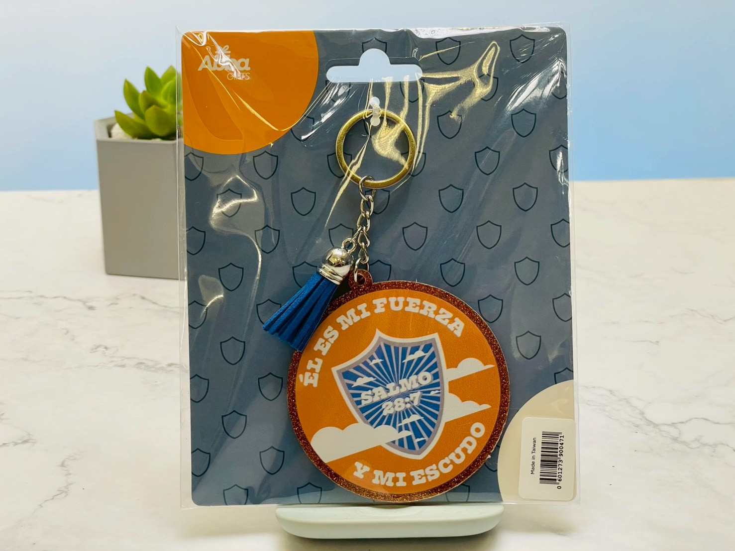 Él es mi fuerza y mi escudo - Llavero de caucho con brillantina