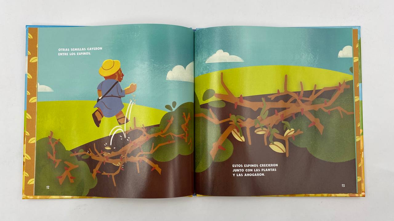 ¿qué es una parábola? es una hisotira que enseña una lección importante sobre la vida. Cuando leas este libro lleno de bonitos diseños, descubrirás cuál es esta lección especial. Piensa en cómo sería si fueras alguno de los tipos de suelo: ¿Crecería la semilla en ti?