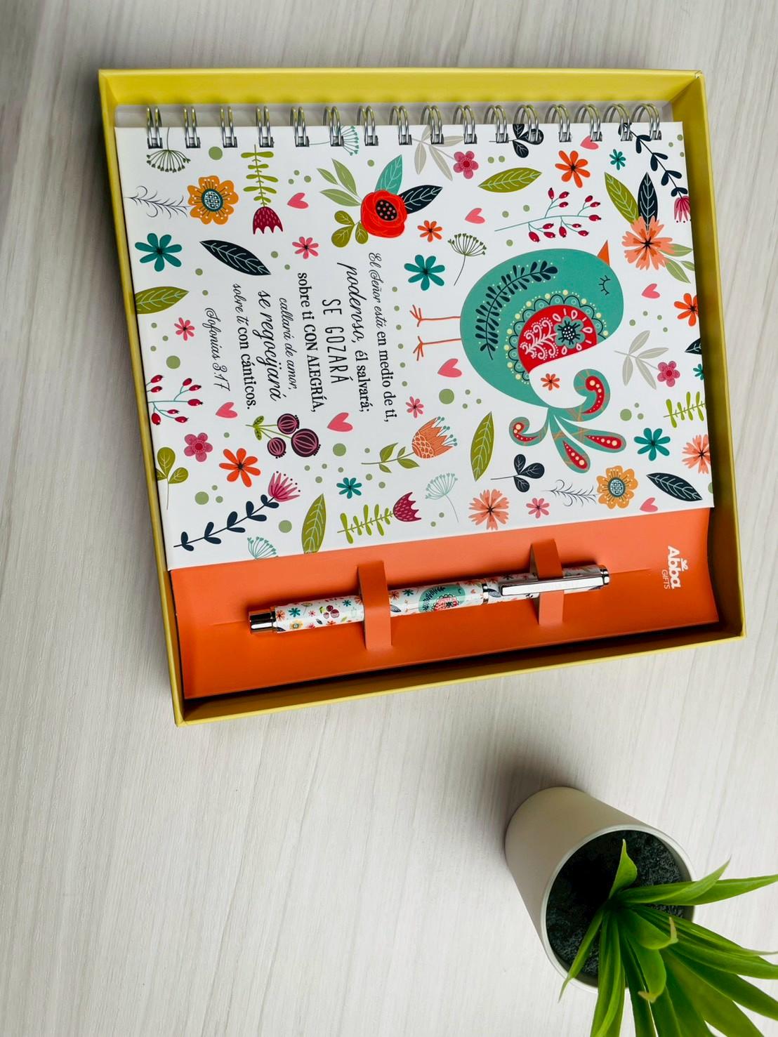 Su tapa dura aporta resistencia y elegancia, convirtiéndola en una libreta duradera, hecha para conservar lo que Dios va sembrando con el paso del tiempo. El bolígrafo a conjunto, cuidadosamente integrado, completa la experiencia, uniendo funcionalidad y armonía en cada detalle.