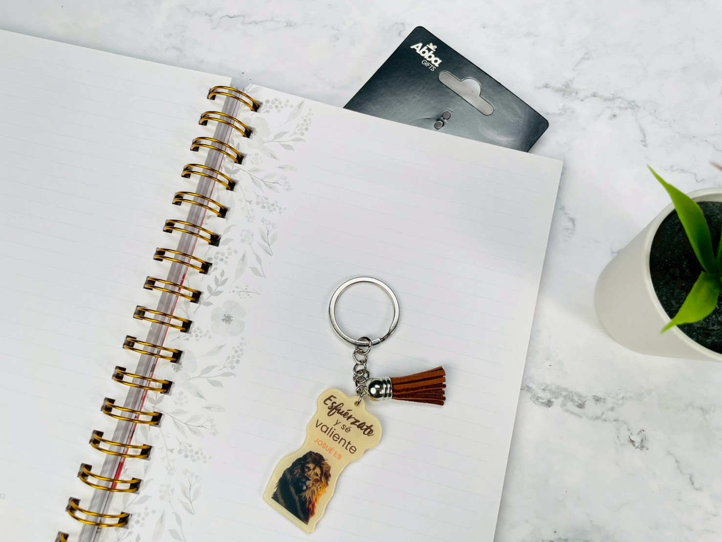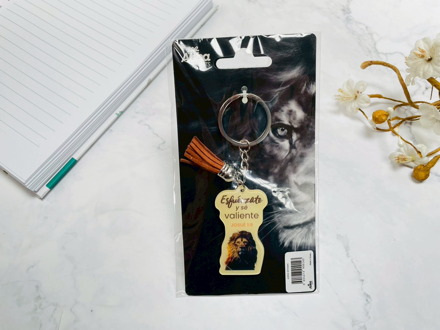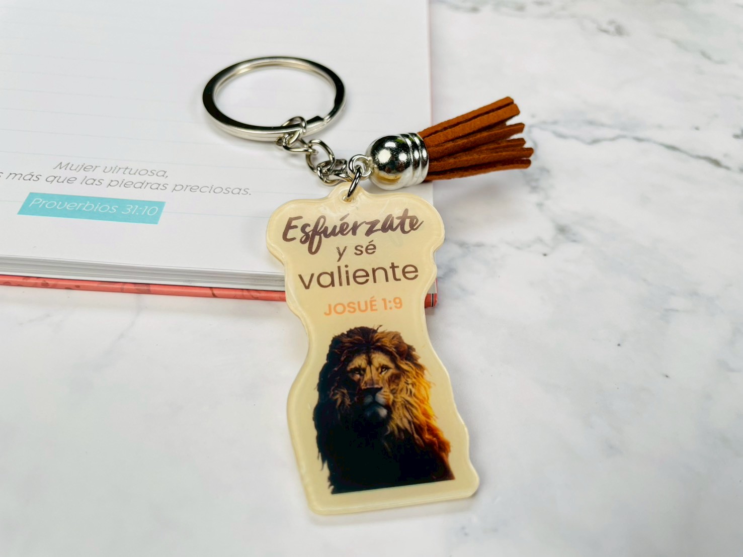 Esfuérzate y sé valiente - Llavero acrílico con pon pon decorativo