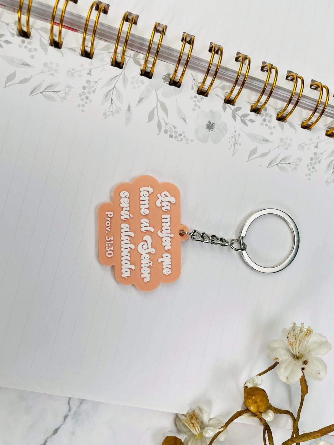 Estos llaveros de caucho de gran calidad han sido creados para acompañarte cada día, recordándote que la Palabra de Dios camina contigo dondequiera que vayas.