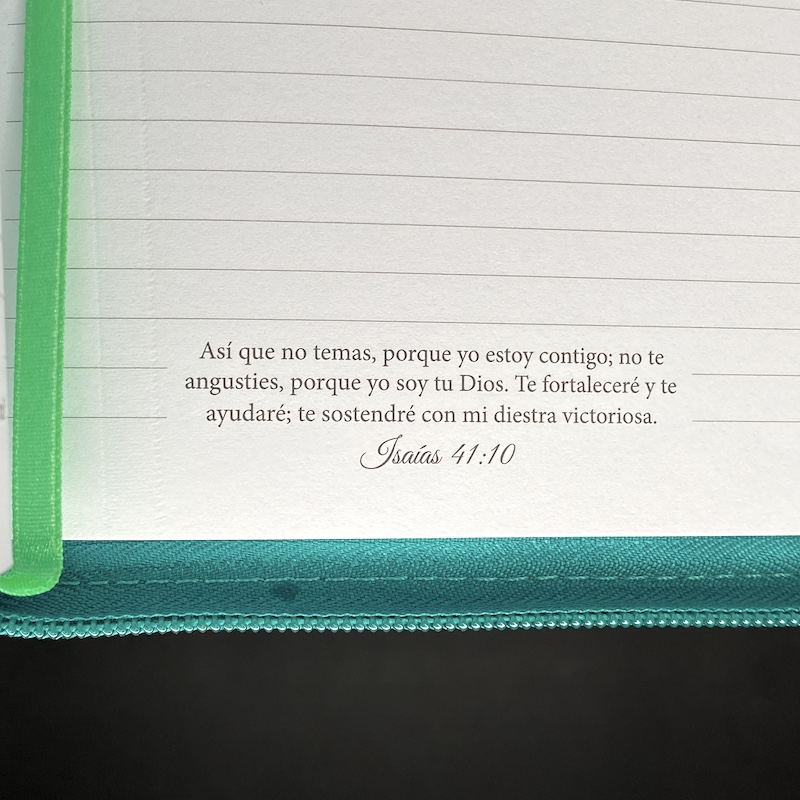 Libreta de lujo. En Dios solamente. i/piel con cierre turquesa
