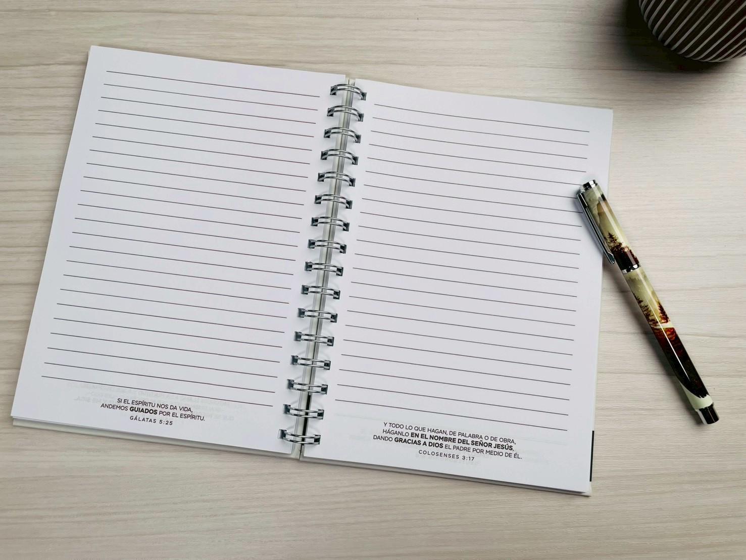 Su tapa dura aporta resistencia y elegancia, convirtiéndola en una libreta duradera, hecha para conservar lo que Dios va sembrando con el paso del tiempo. El bolígrafo a conjunto, cuidadosamente integrado, completa la experiencia, uniendo funcionalidad y armonía en cada detalle.