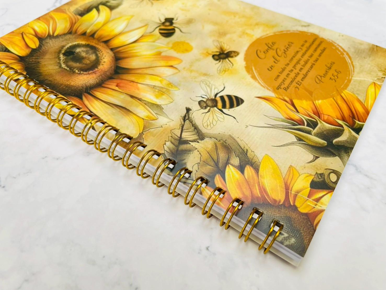En la parte inferior de cada página, un versículo bíblico cuidadosamente seleccionado te recordará, mientras escribes, que Dios está presente en cada detalle de tu día. Su Palabra inspira, consuela y guía, convirtiendo cada anotación en un acto de comunión y gratitud.