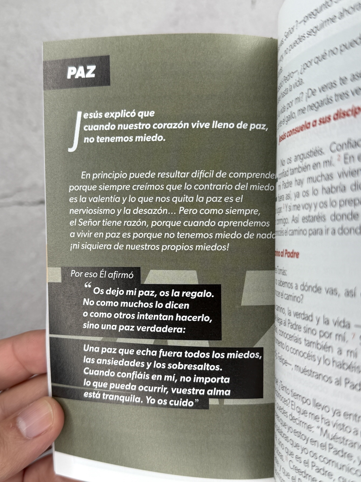 Comentario resaltado en una sola página de palabras clave del evangelio: Aventura, alegría, pasión, creer, pan de vida, disfrutar, verdad, luz, perdón, esperanza, amor, paz, camino, vida, muerte.