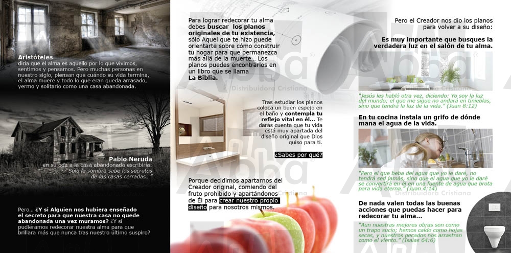 "Usando la estética de una conocida marca de muebles, este folleto hace un símil entre el alma y una casa. Y explica cómo se pude redecorar el alma para que alcance la salvación."