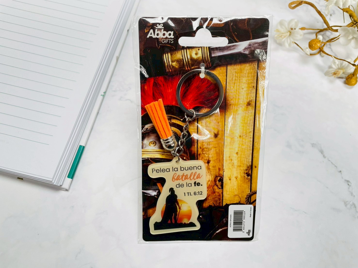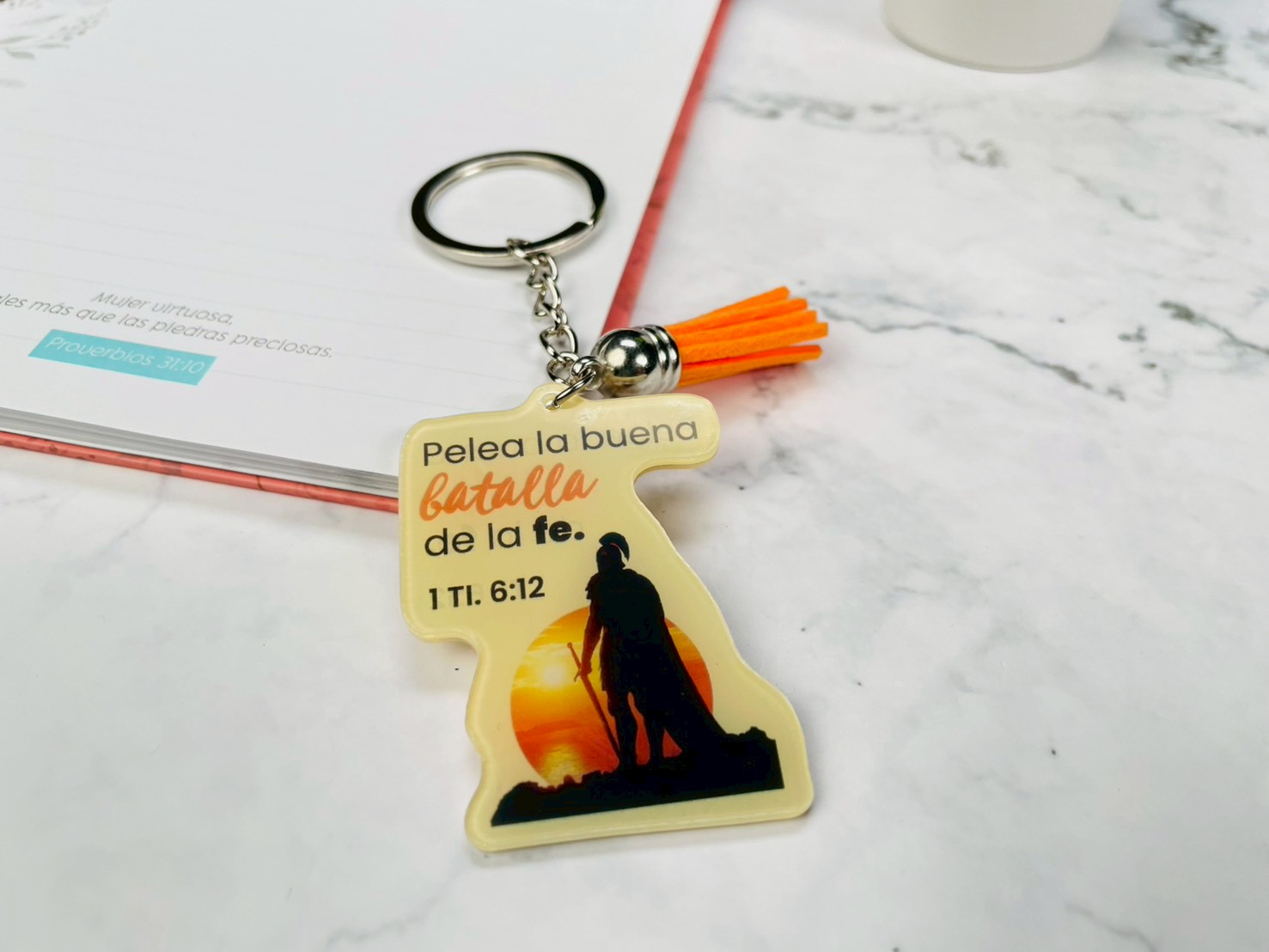 Pelea la buena batalla - Llavero acrílico con pon pon decorativo