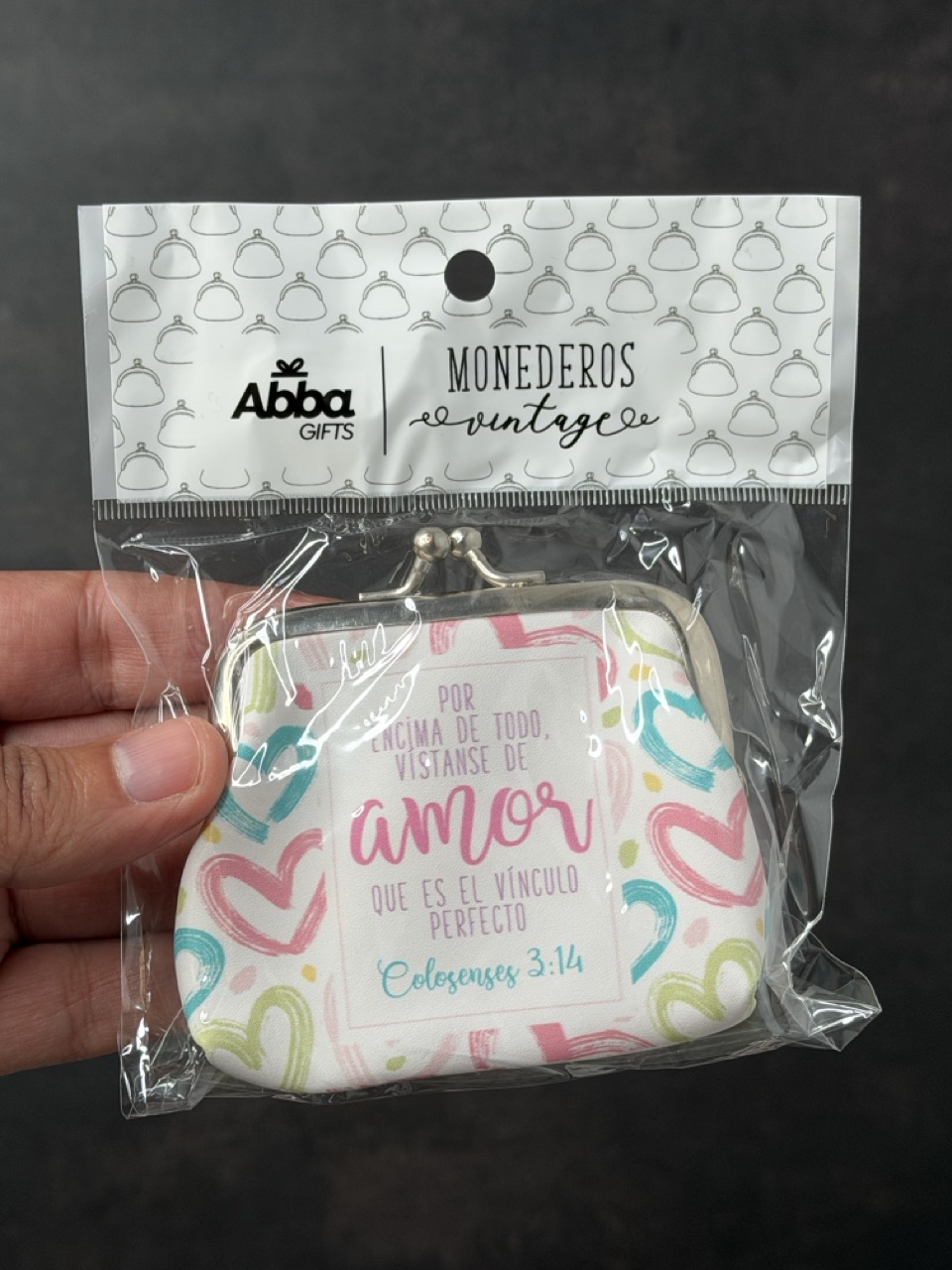 Por encima de todo vístanse de amor. Monedero imitación piel