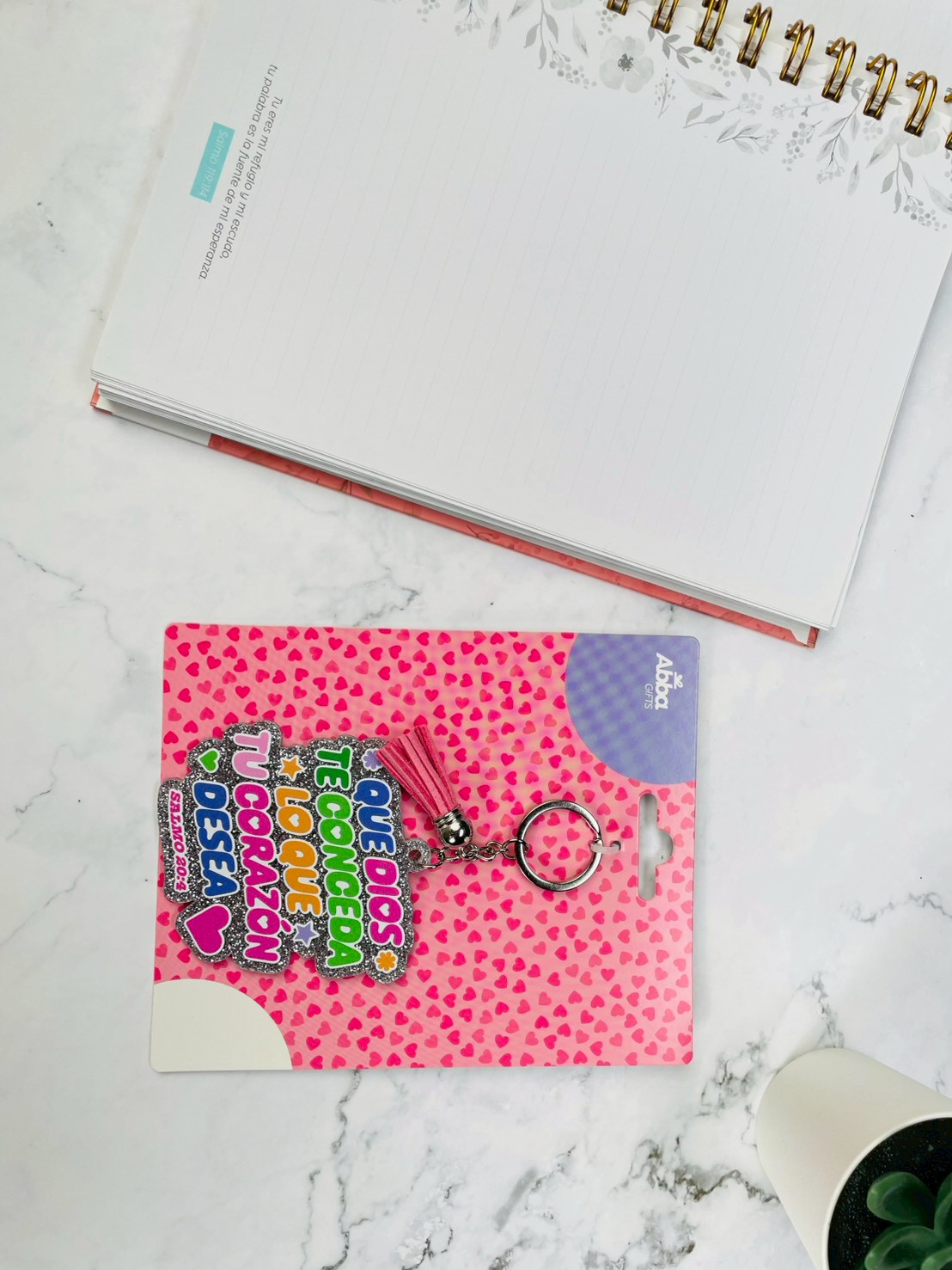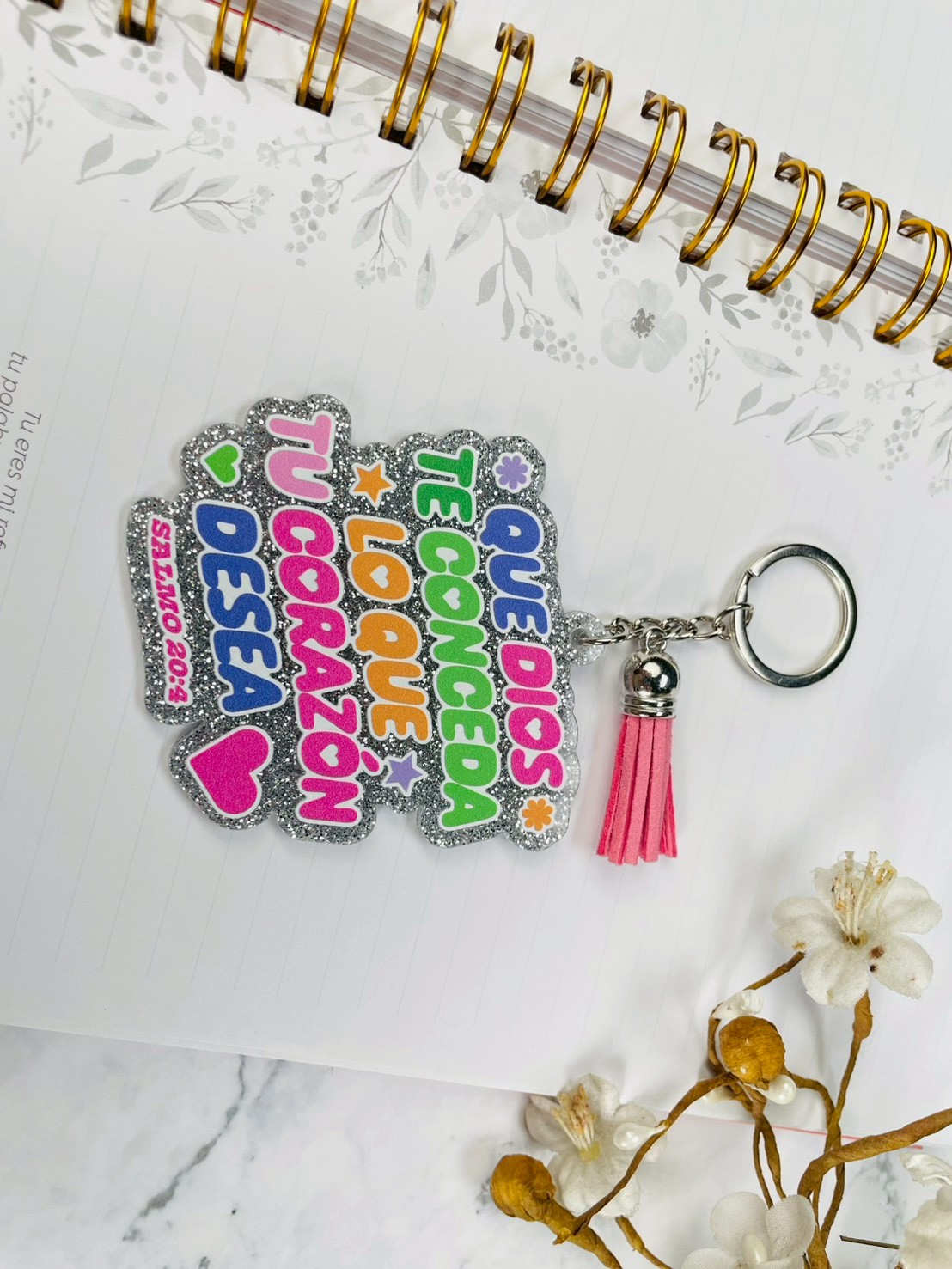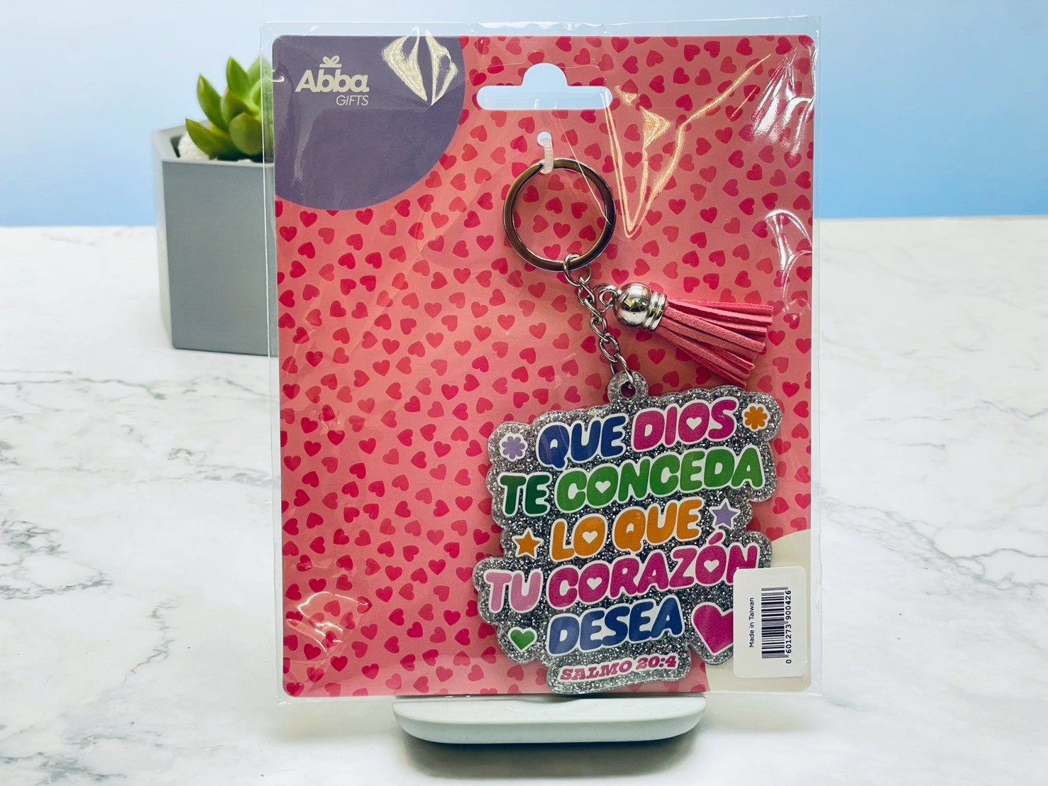 Más que un llavero, es un pequeño recordatorio de fe: una palabra que brilla, una promesa que acompaña y un mensaje de esperanza que viaja contigo a donde vayas.