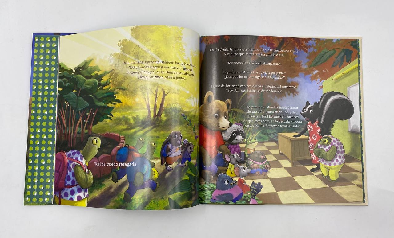 La tortuga Tori se siente sola. Acaba de mudarse a un nuevo estanque y a un nuevo colegio con su familia y parece que todo el mundo tiene un amigo menos ella. Su profesora se da cuenta de que se siente sola y la ayuda a recordar que Jesús siempre es su amigo, y en el camino hace nuevos amigos.