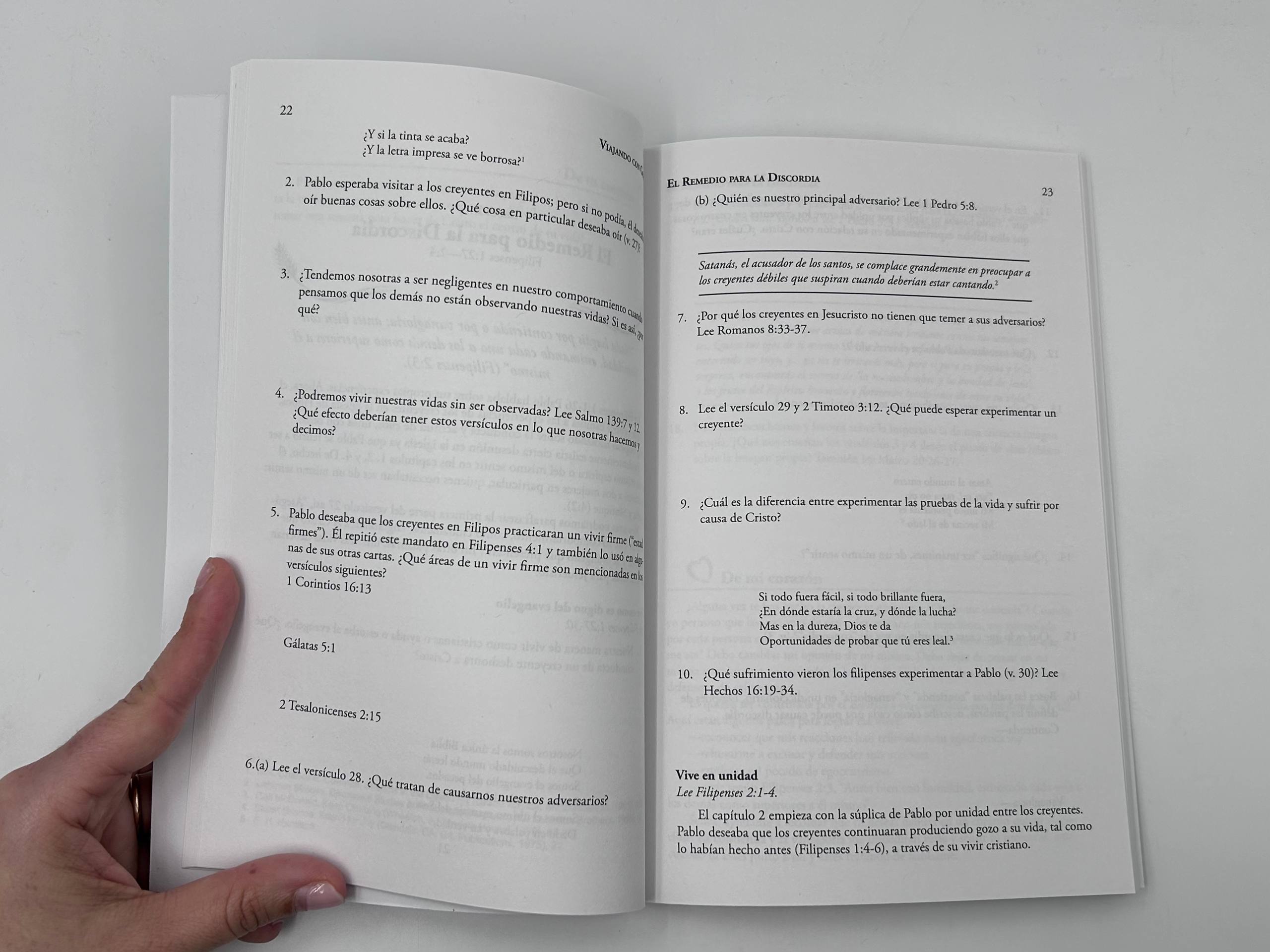 Juanita Purcell. El apóstol Pablo escribió el libro de Filipenses mientras se encontraba en una prisión romana, encadenado a guardias. Sin embargo, el tema recurrente del libro es gozo. Pablo había aprendido a estar gozosamente contento en cada circunstancia.