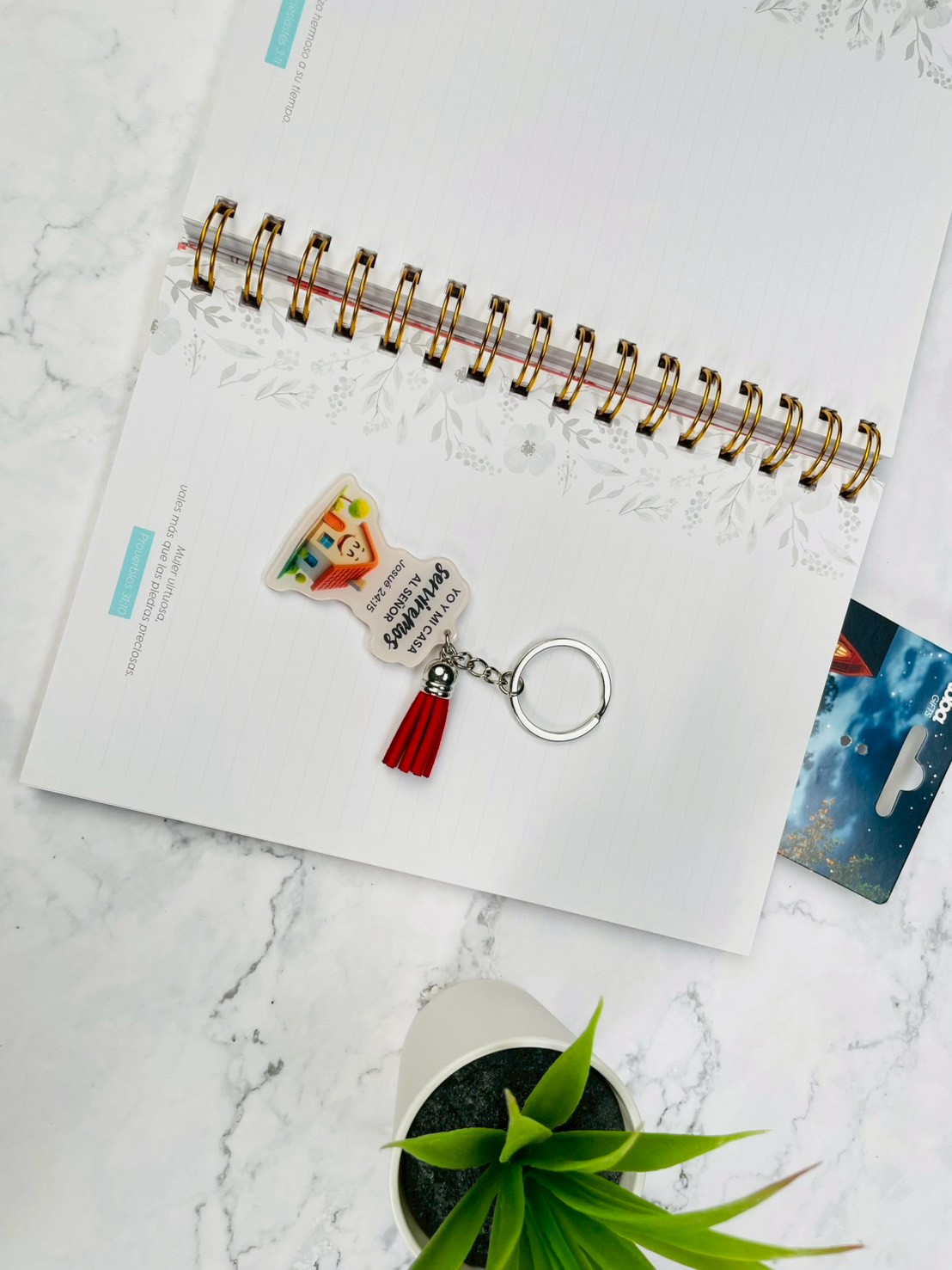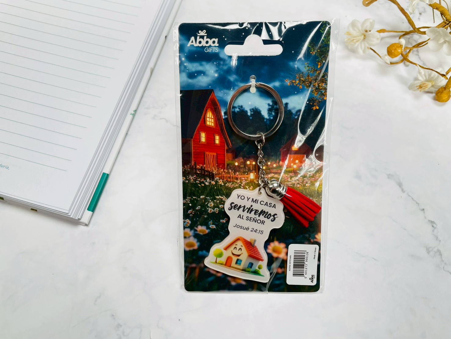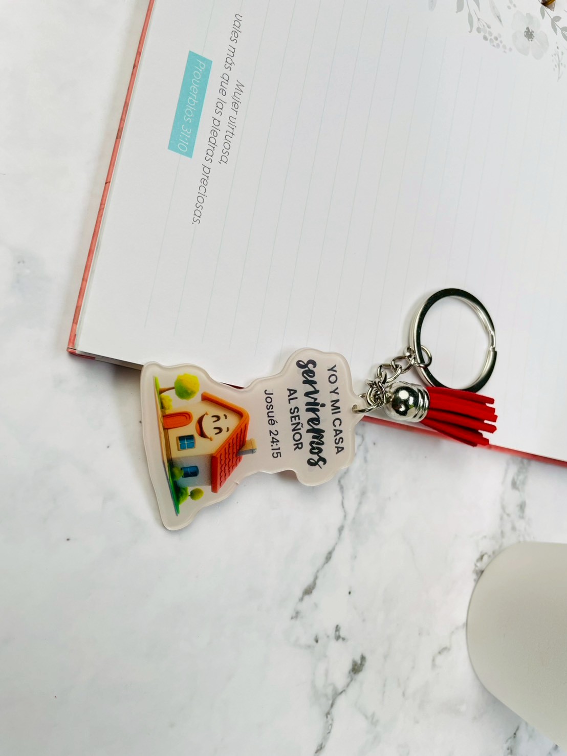Yo y mi casa serviremos al Señor- Llavero acrílico con pon pon decorativo