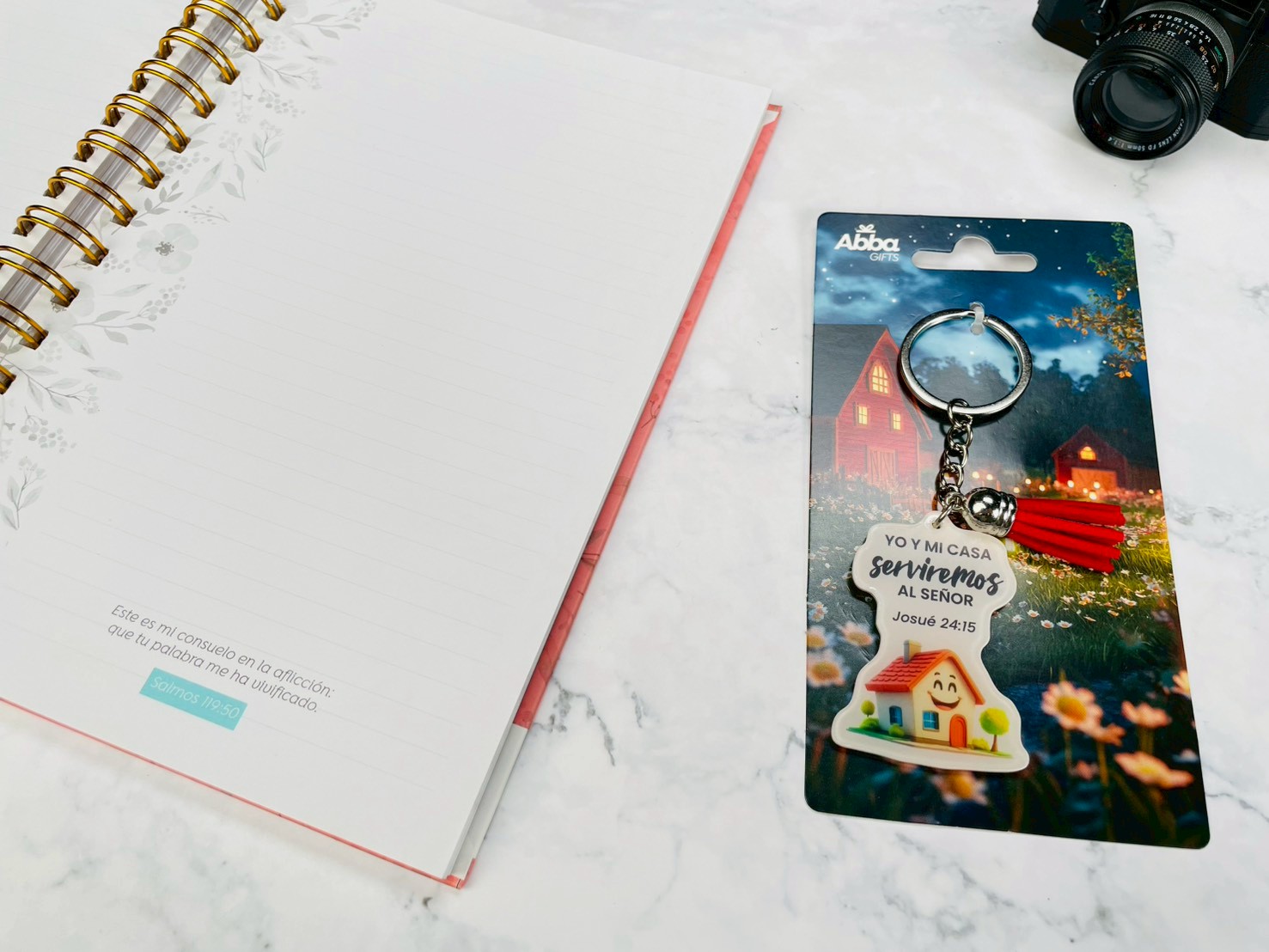 Con un tamaño de 5 x 3,5 cm, son ligeros y prácticos, ideales para llevar en las llaves, el bolso o la mochila. Cada llavero incluye un versículo bíblico cuidadosamente seleccionado, un mensaje de ánimo, esperanza y confianza que recuerda, incluso en lo cotidiano, la presencia fiel de Dios.